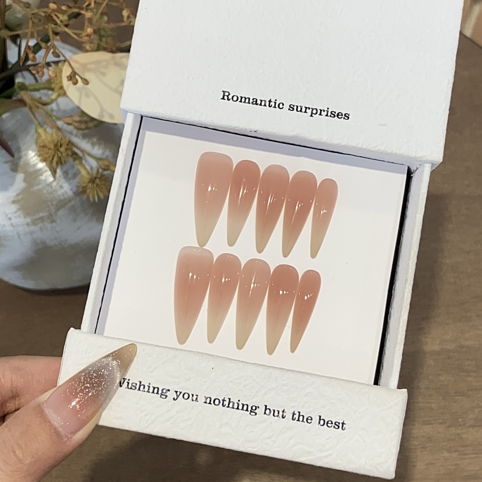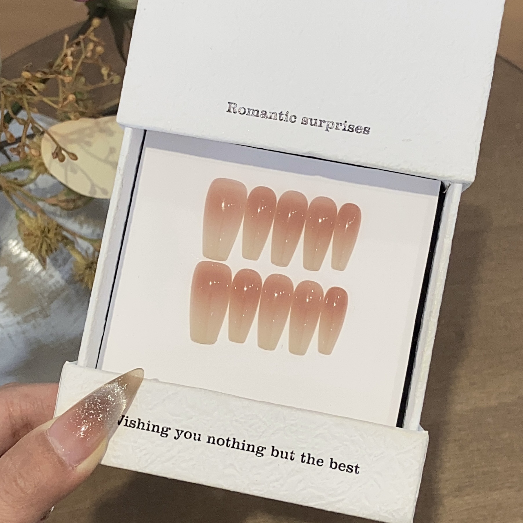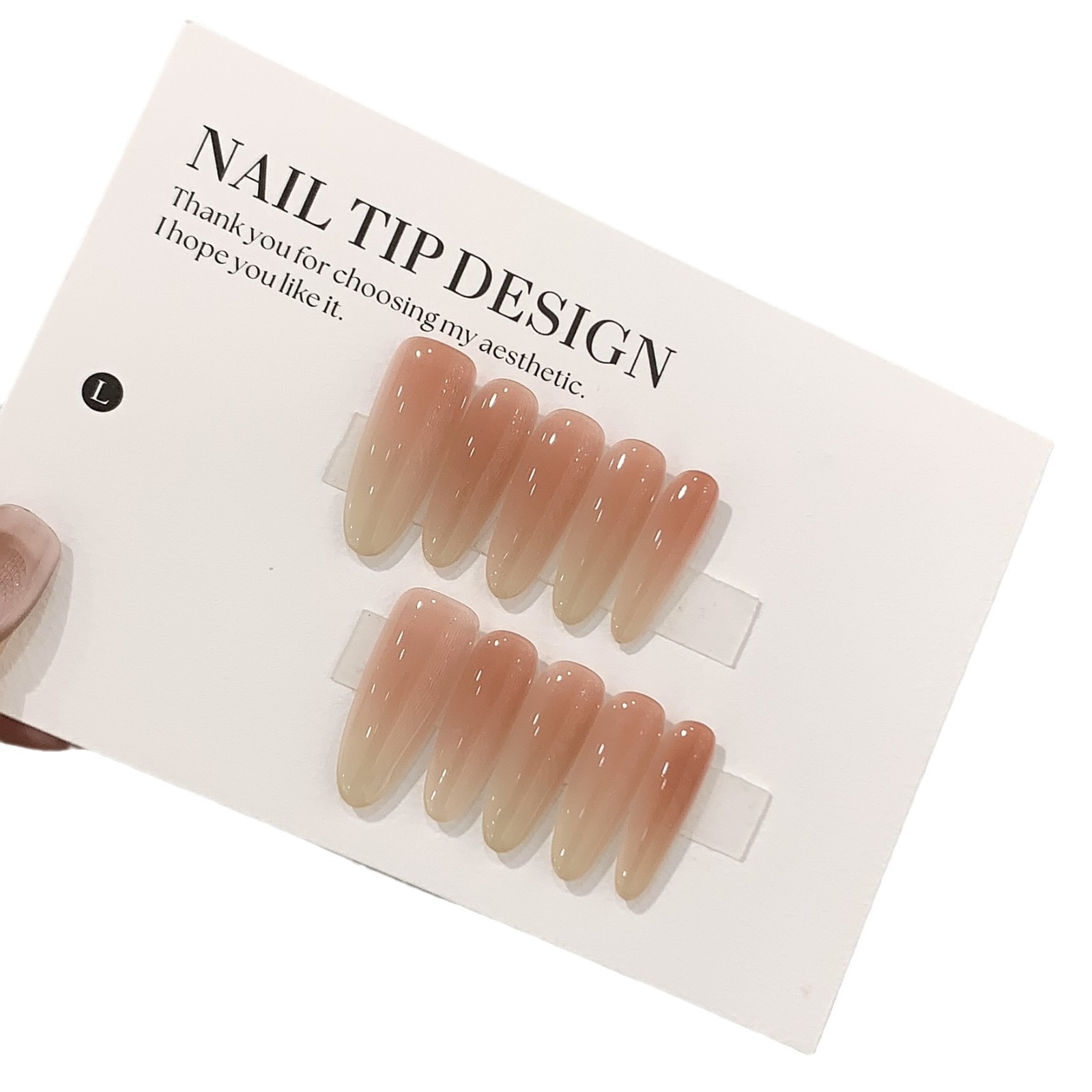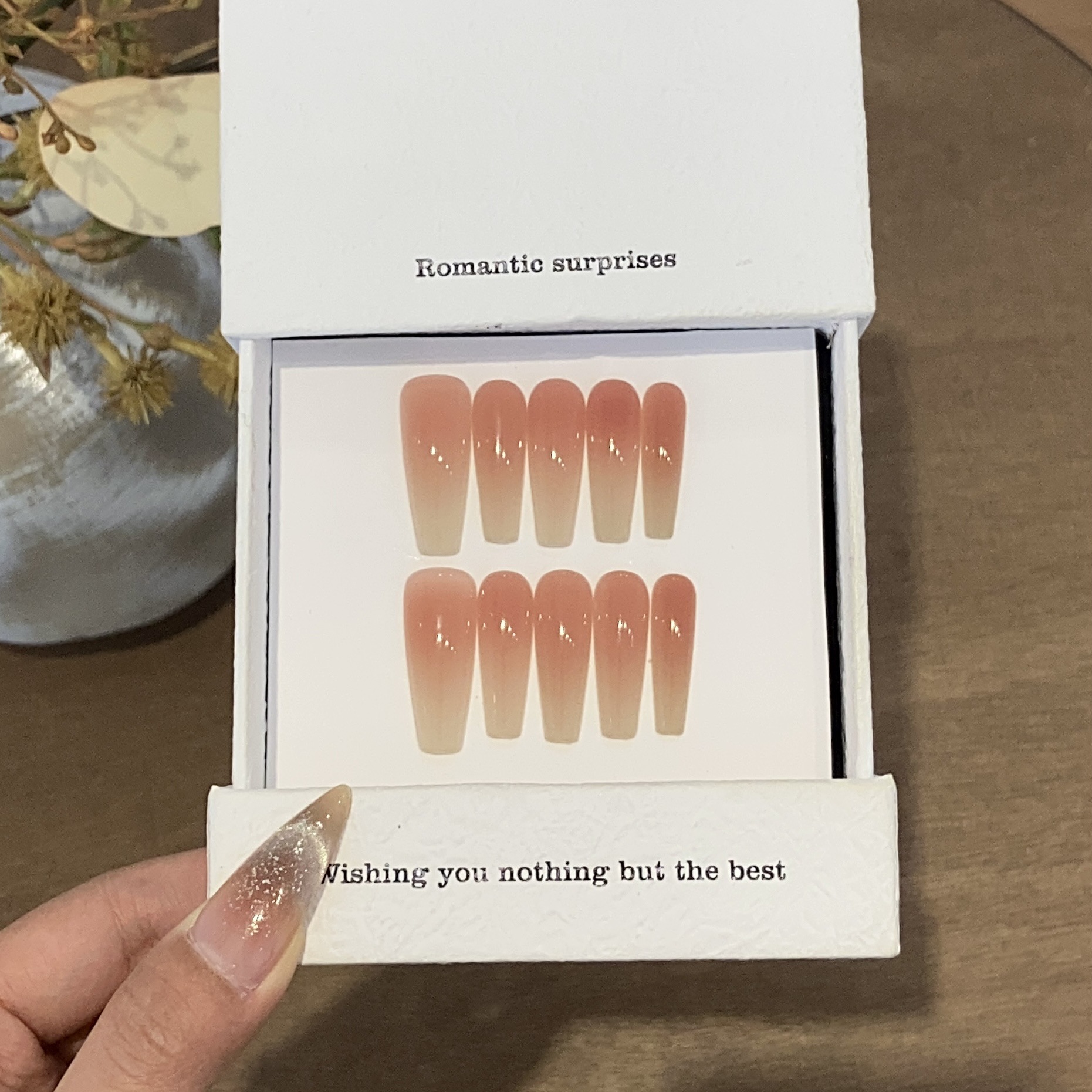 一只顾美甲 简约纯色高级冰透渐变水蜜桃百搭嬛嬛甲贴片穿戴甲