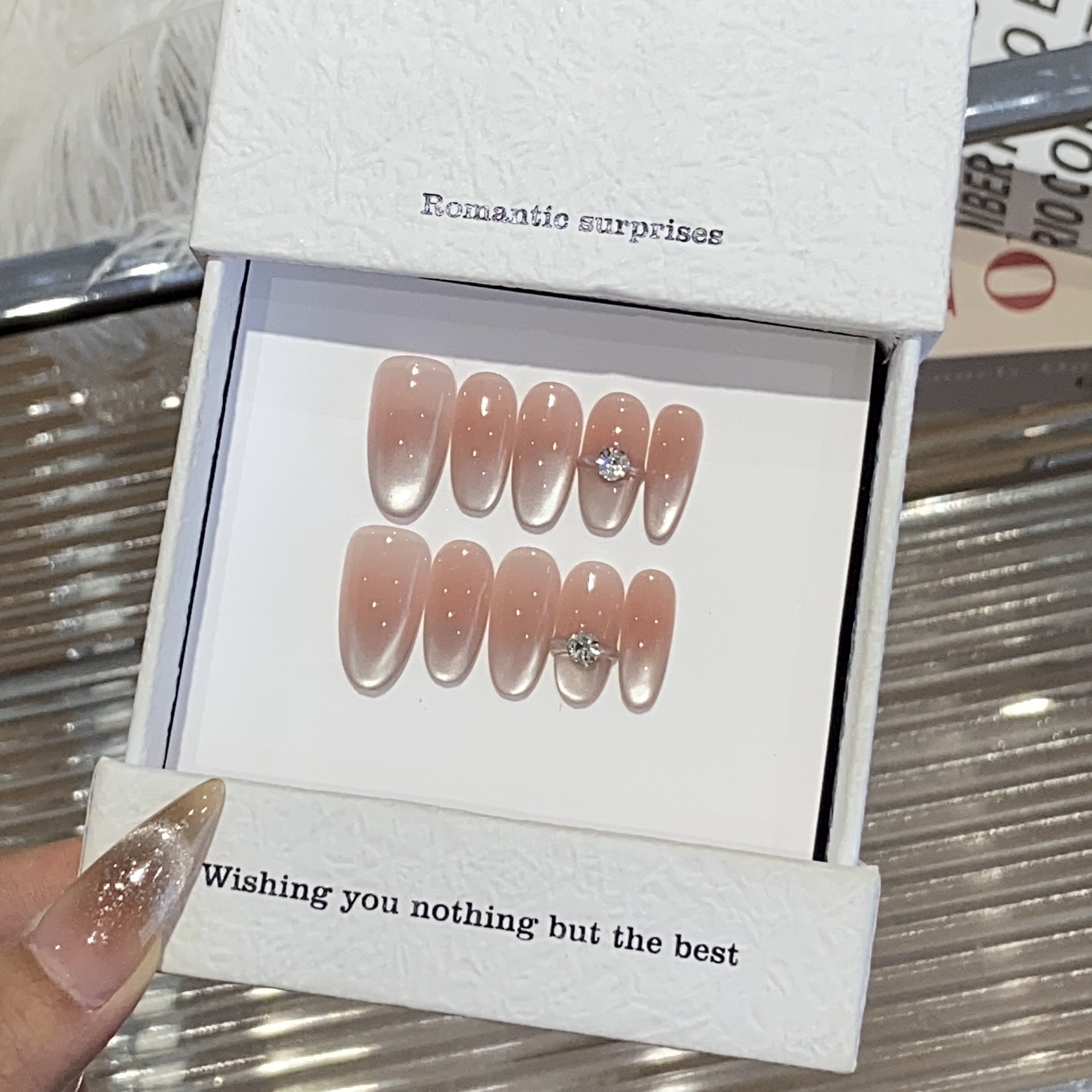 一只顾美甲 高级冰透纯欲腮红侧光猫眼猫眼镶钻可拆卸穿戴甲贴片