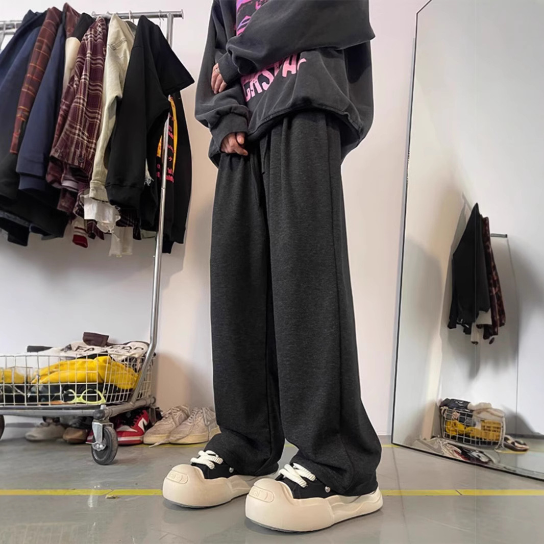显瘦糯米卫裤男秋季新款垂感直筒百搭慵懒运动休闲长裤子简约高级