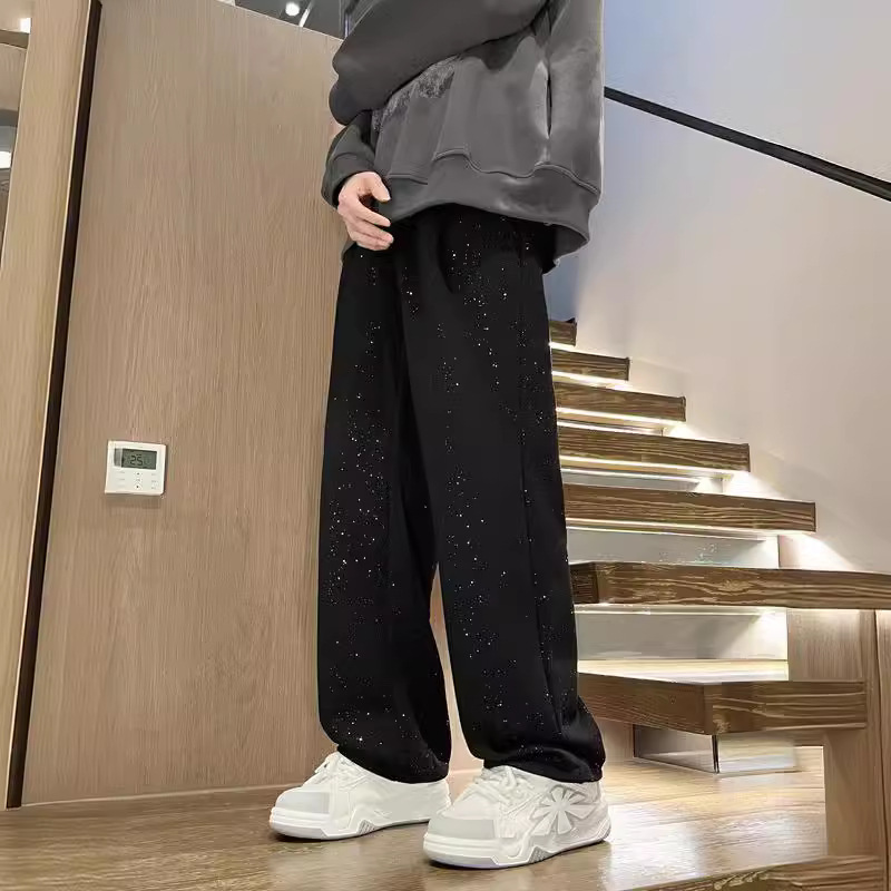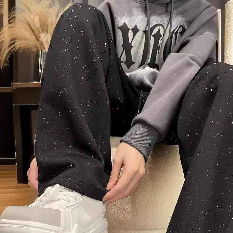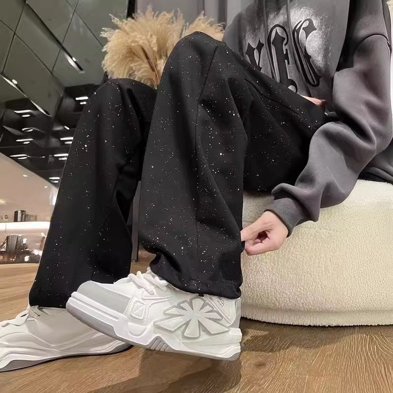 美式复古满天星运动长裤男士高街oversize直筒宽松阔腿休闲小西裤