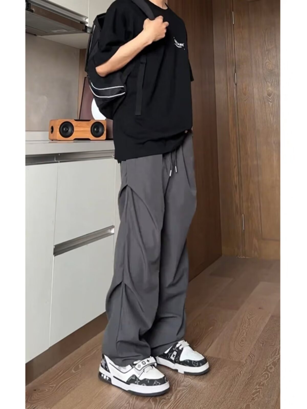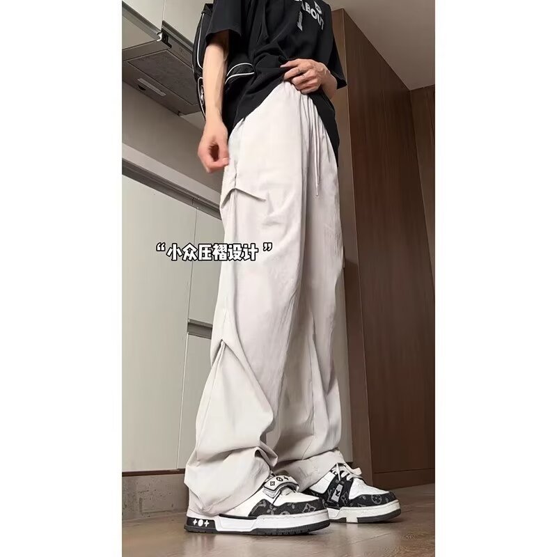 美式机能工装裤男伞兵炸街帅气高街oversize宽松阔腿直筒速干长裤