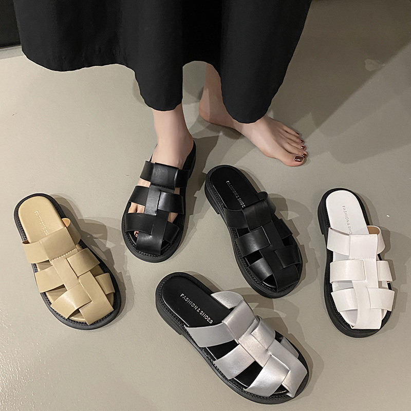 编织拖鞋女夏外穿一脚蹬新款包头罗马半拖平底百搭休闲穆勒鞋