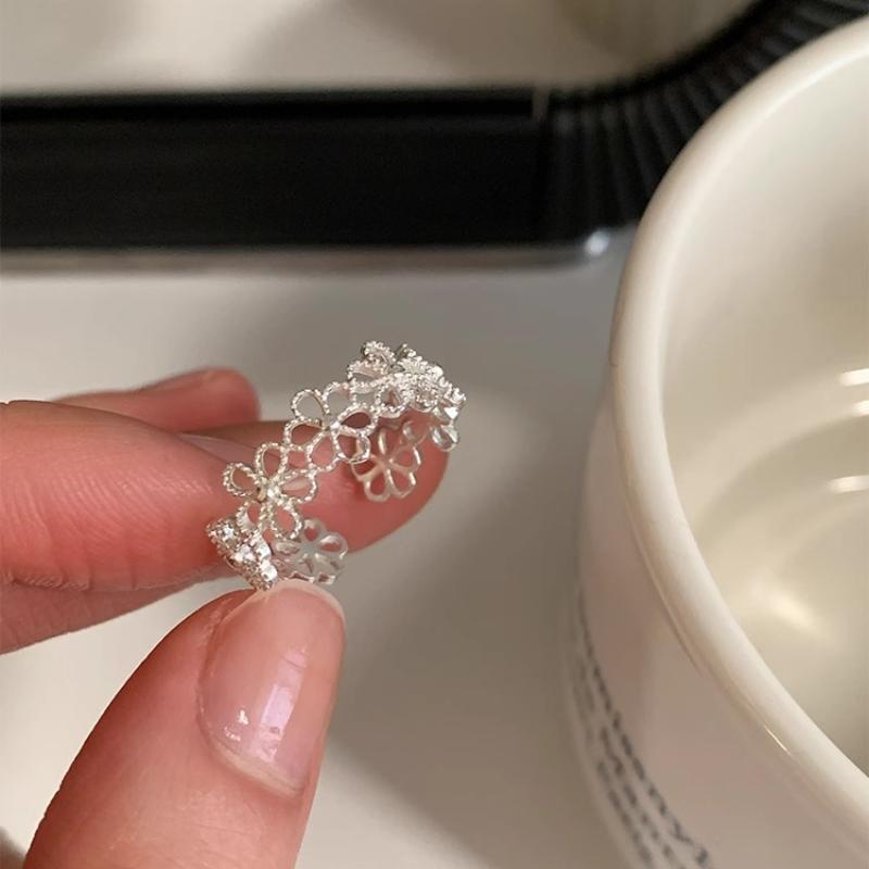 新款镂空花朵戒指镀银女式百搭时尚温柔气质小众感食指戒