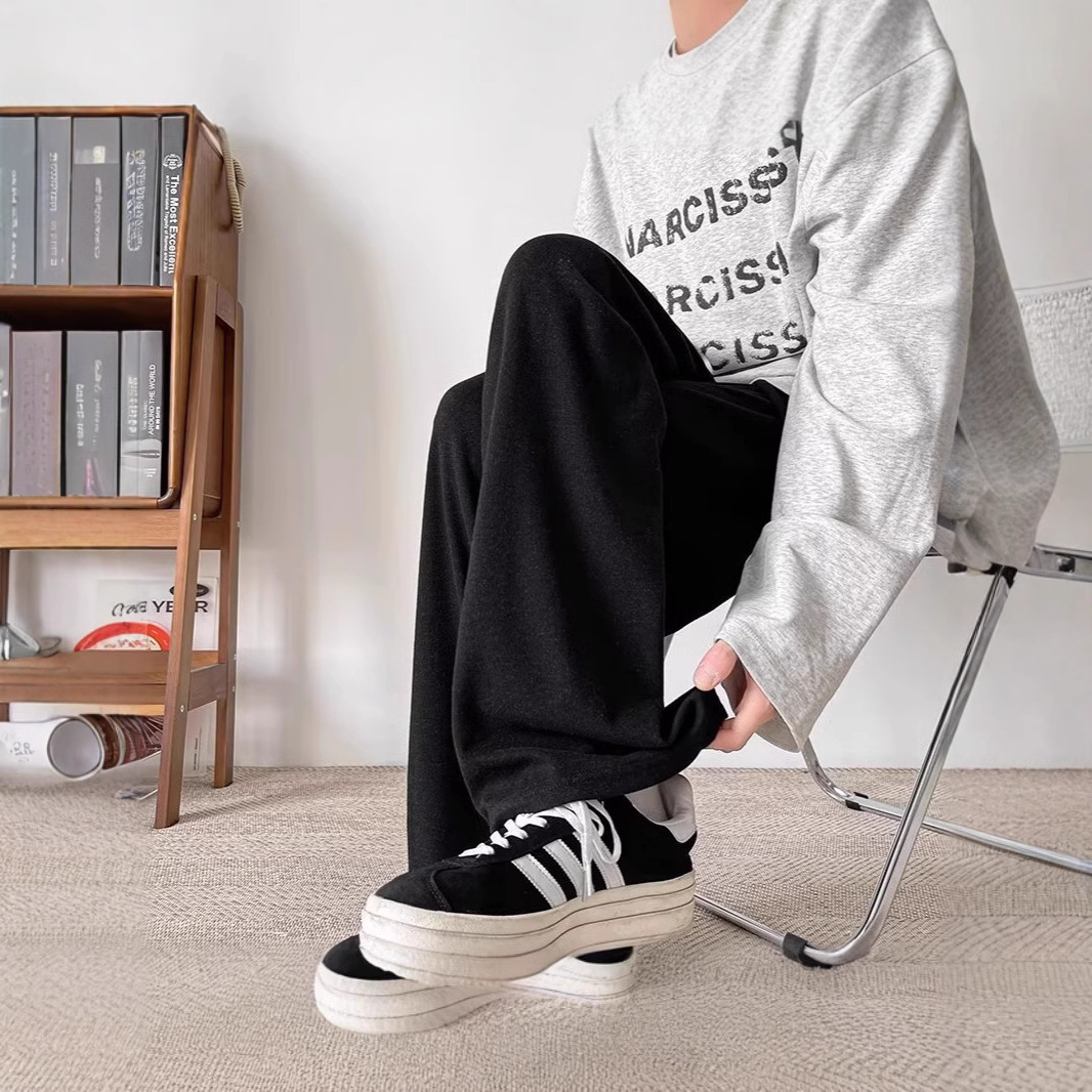 美式复古垂感糯米裤男士春秋潮牌vintage宽松直筒阔腿长裤百搭潮