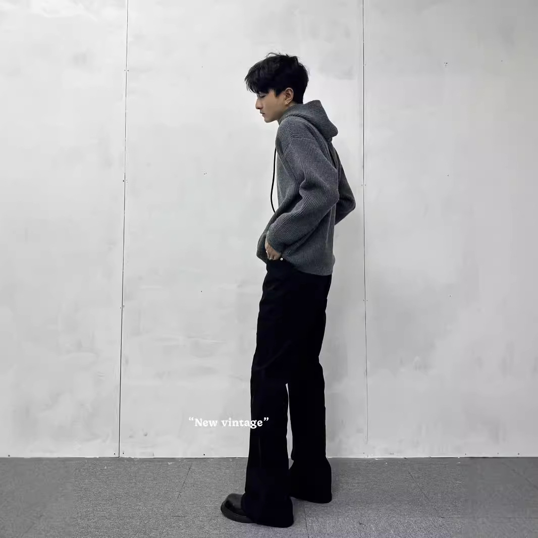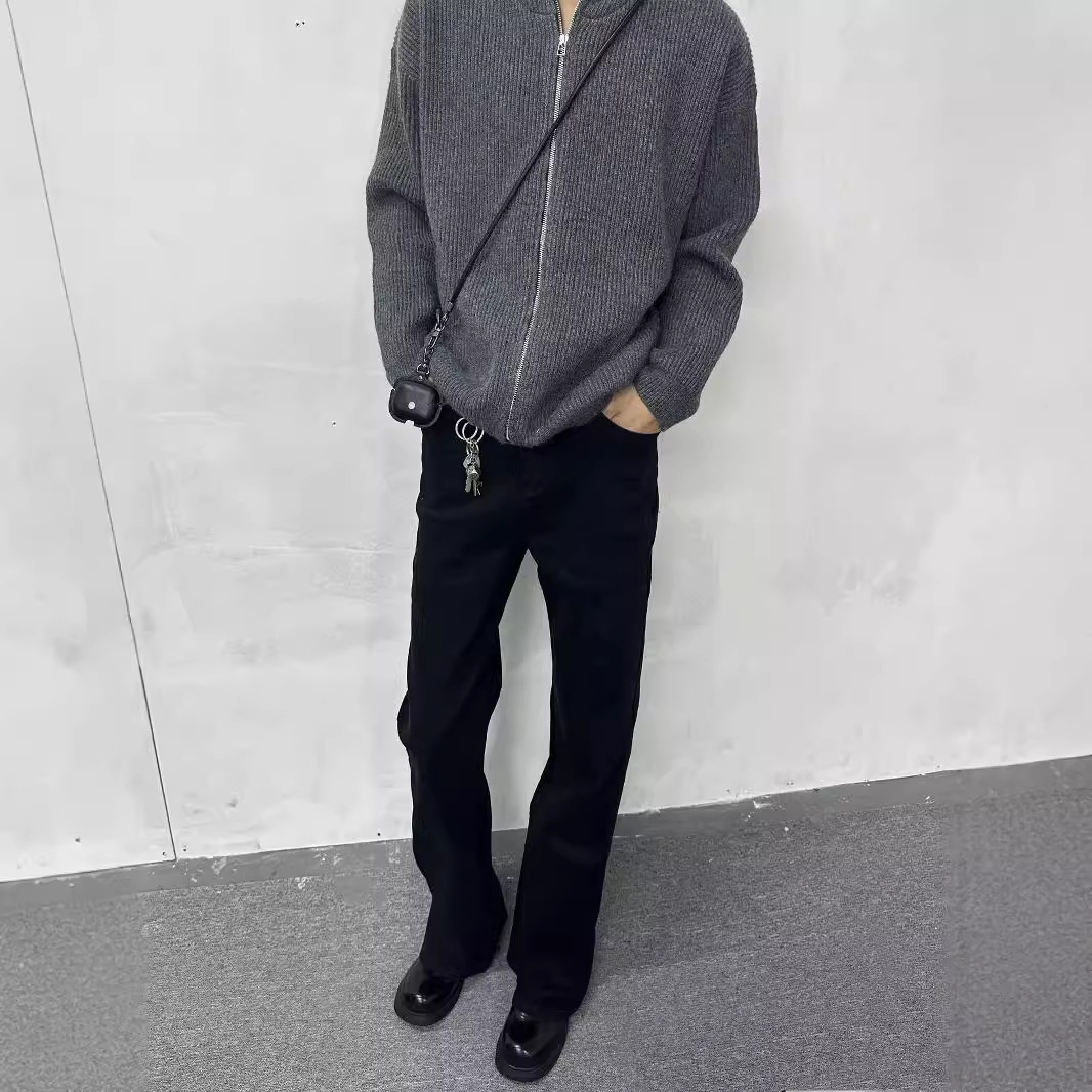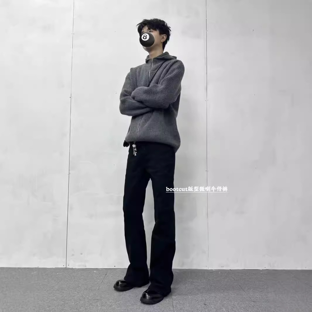 美式vibe裤子男款高街复古微喇黑色牛仔裤修身直筒时尚休闲长裤子