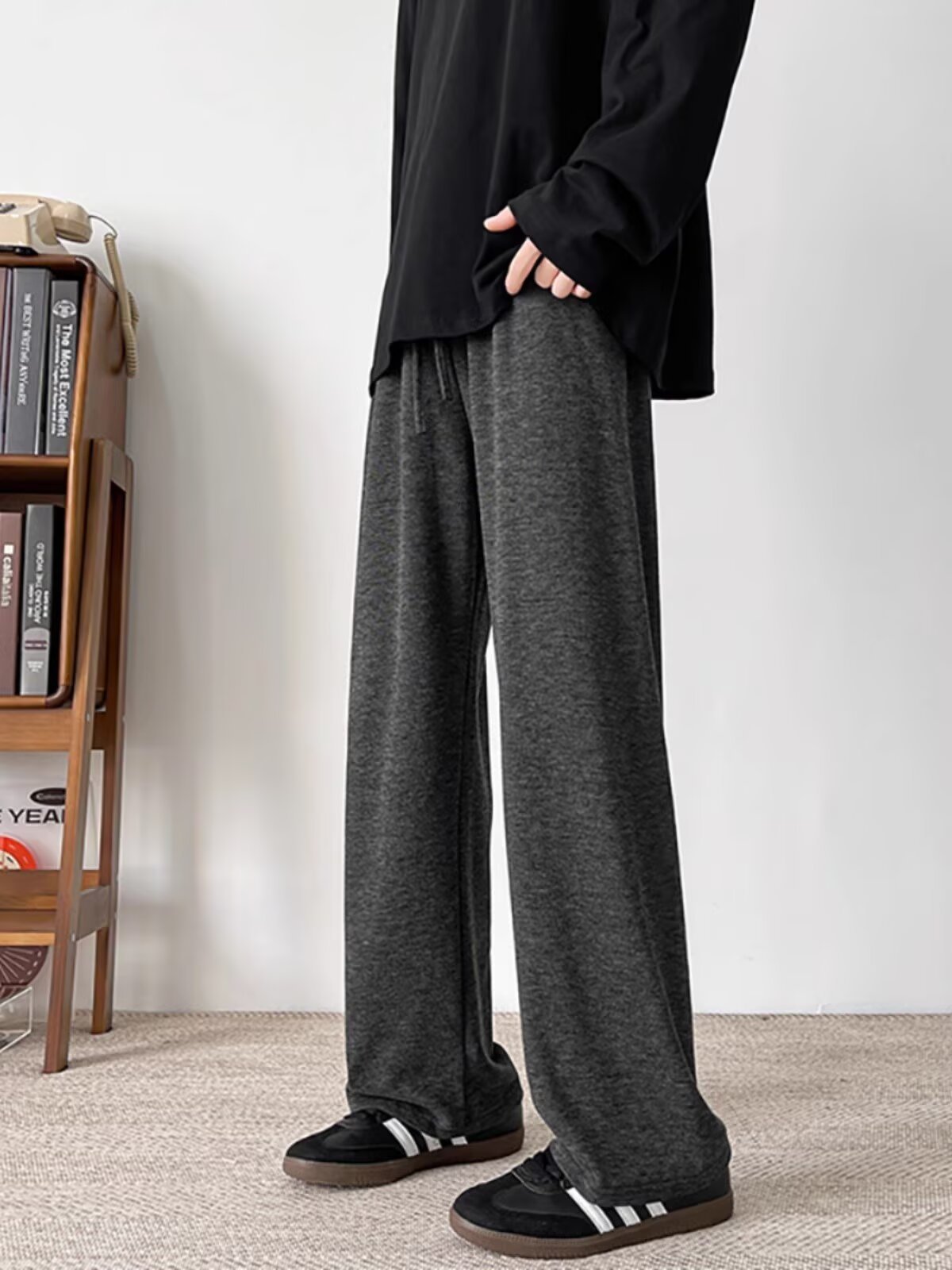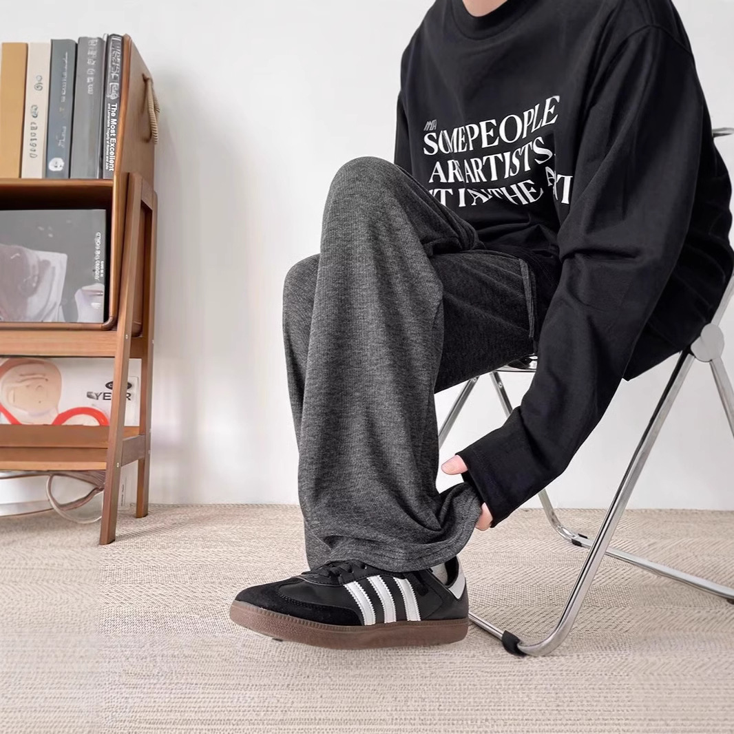 高级感纯色糯米裤男生春秋季薄款时尚青春慵懒风简约百搭直筒长裤