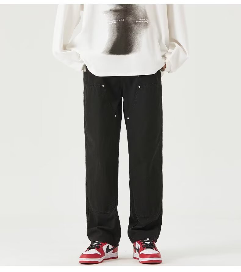 美式工装休闲裤爆款男士春秋新品ins潮流时尚百搭直筒阔腿小西裤