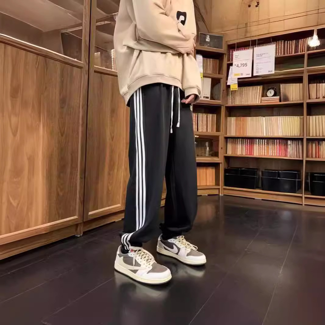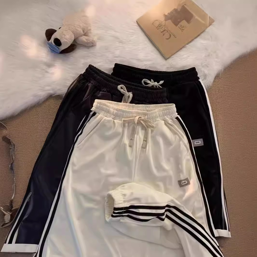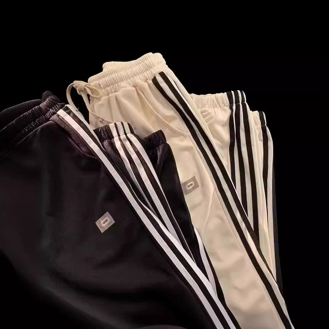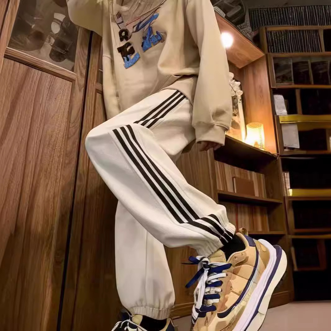 美式运动束脚长裤高街帅气oversize条纹撞色设计时尚直筒阔腿百搭