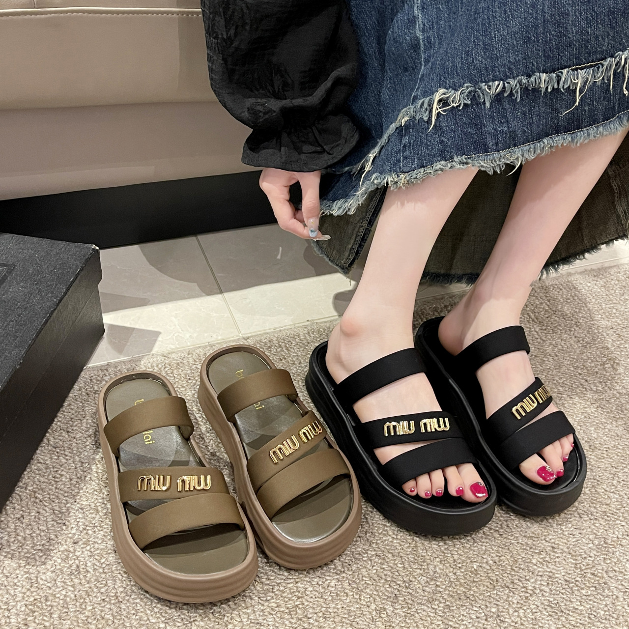 厚底拖鞋女夏季新款外穿休闲一字拖潮小个子外出松糕底凉拖