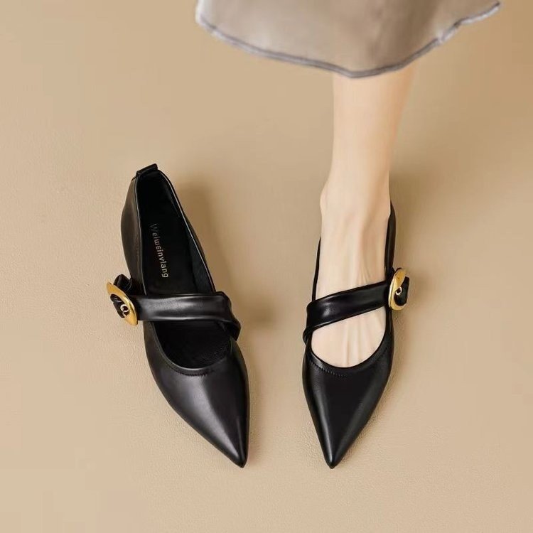 法式复古玛丽珍鞋女平底2025春季新款一字带尖头单鞋软底晚风女鞋