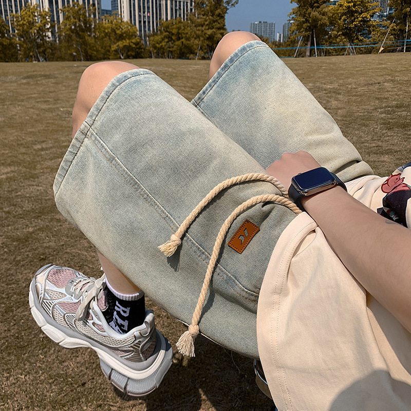 牛仔短裤男士夏季薄款潮牌宽松直筒休闲中裤男生美式五分裤子男款