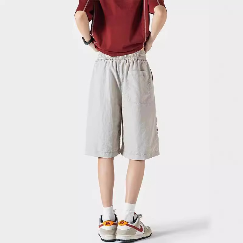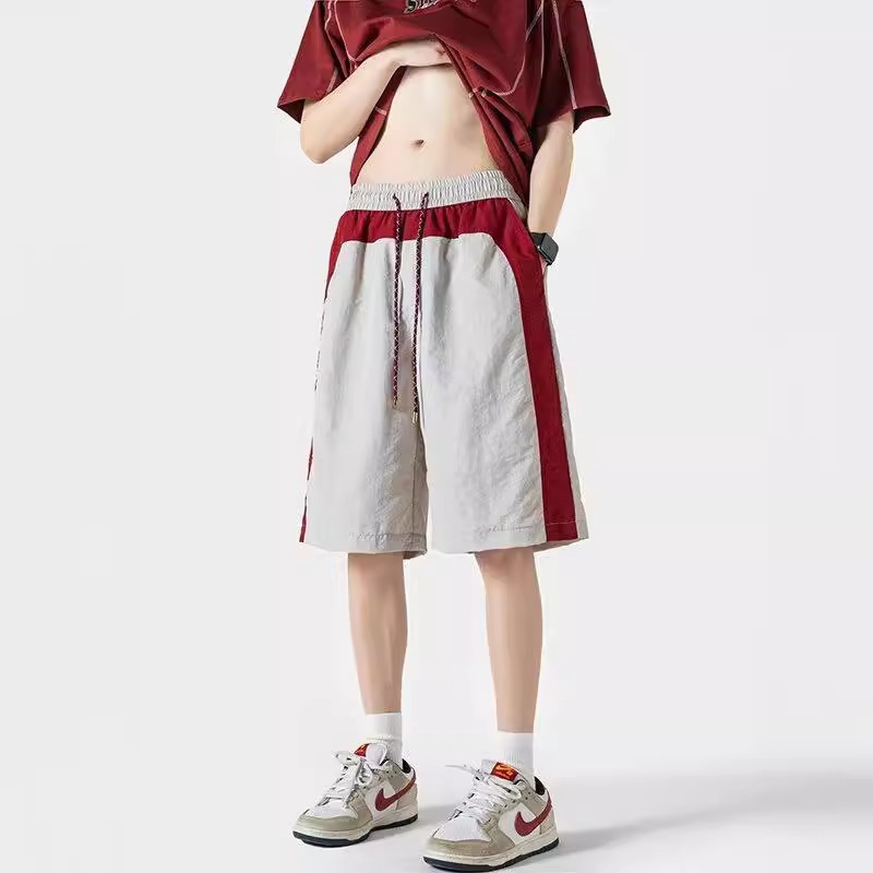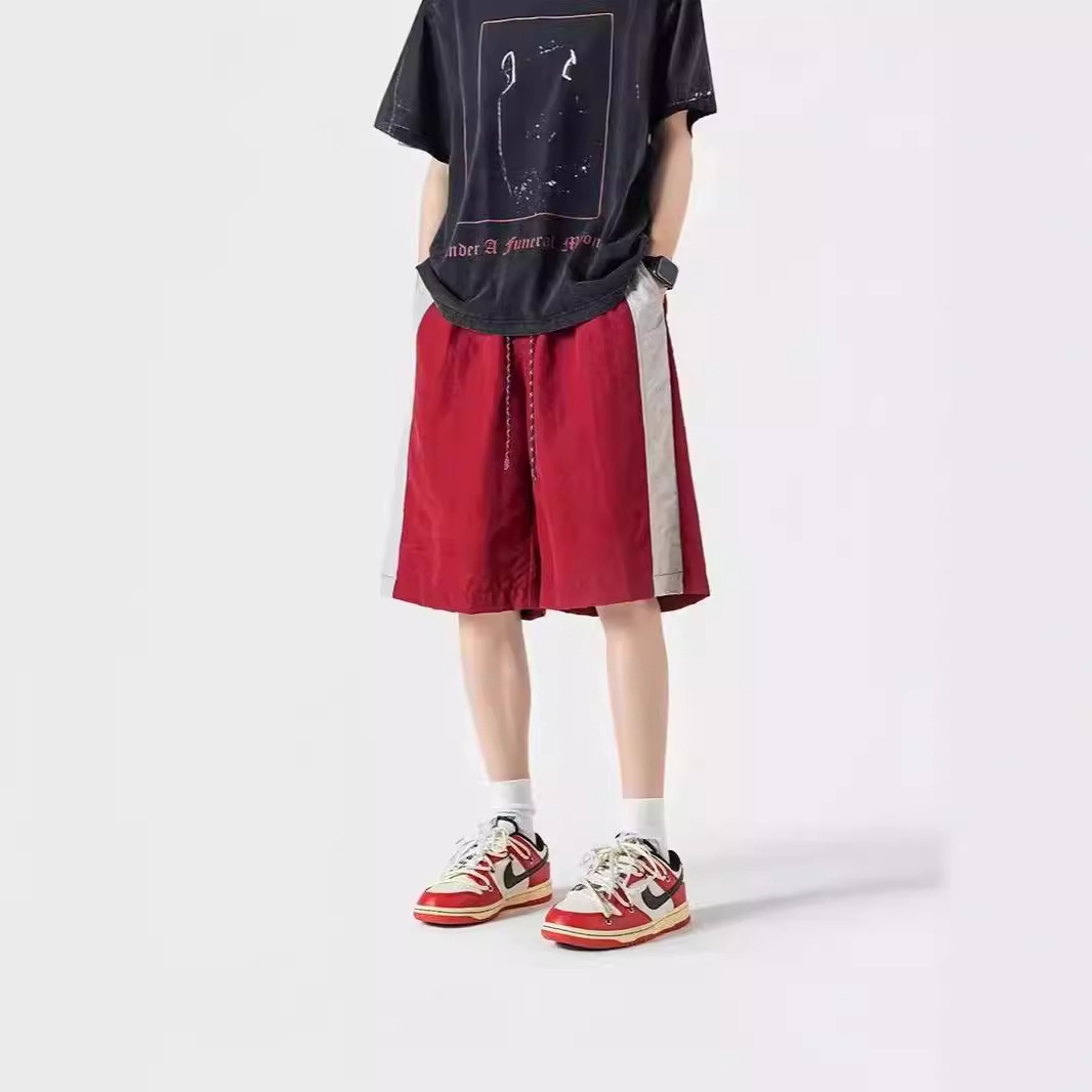 美式复古冰丝速干短裤男生夏季薄款凉快炸街帅气撞色设计感五分裤
