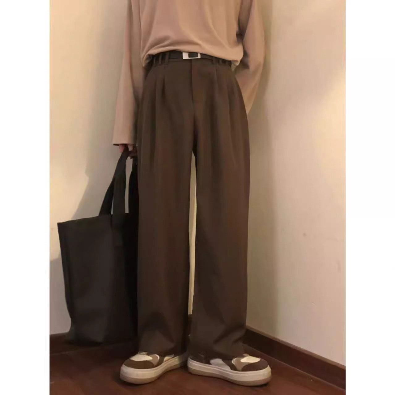 美式复古垂感休闲裤子男春秋季新款宽松青少年西裤直筒百搭长裤子