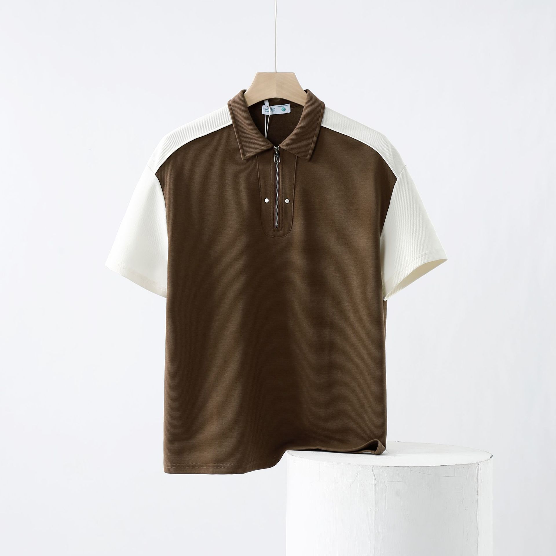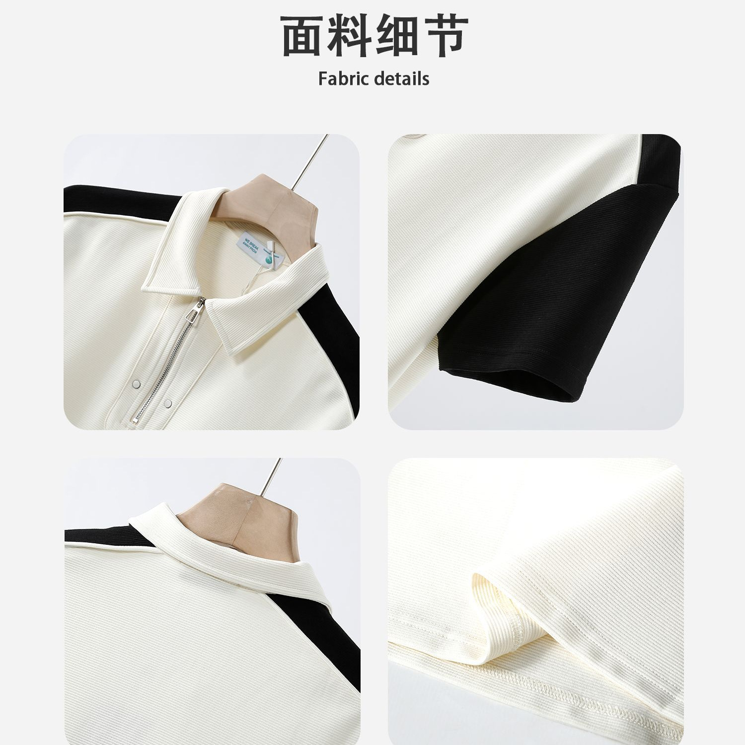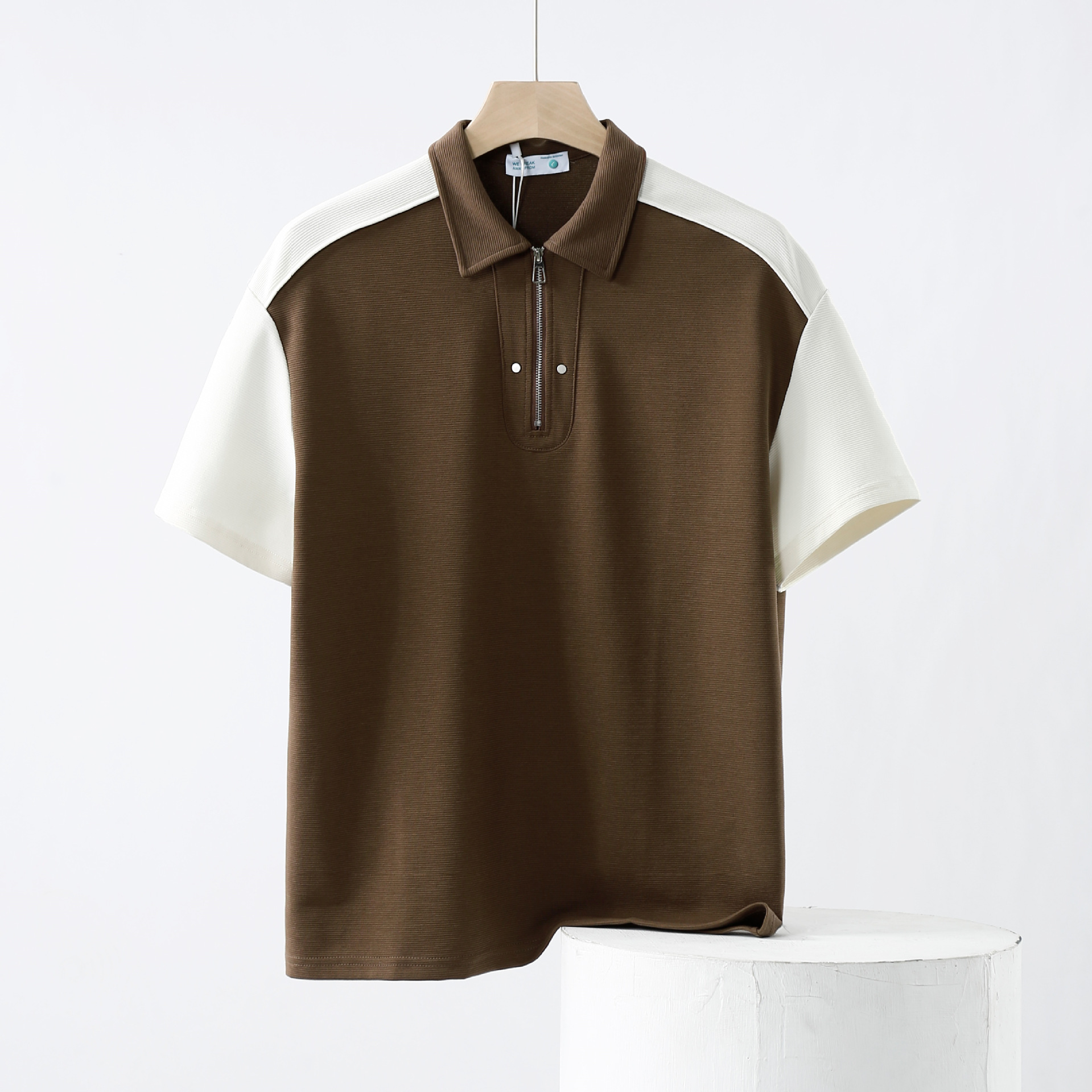 日系简约拼接半拉链polo衫男士夏季宽松翻领短袖T保罗衫百搭上衣
