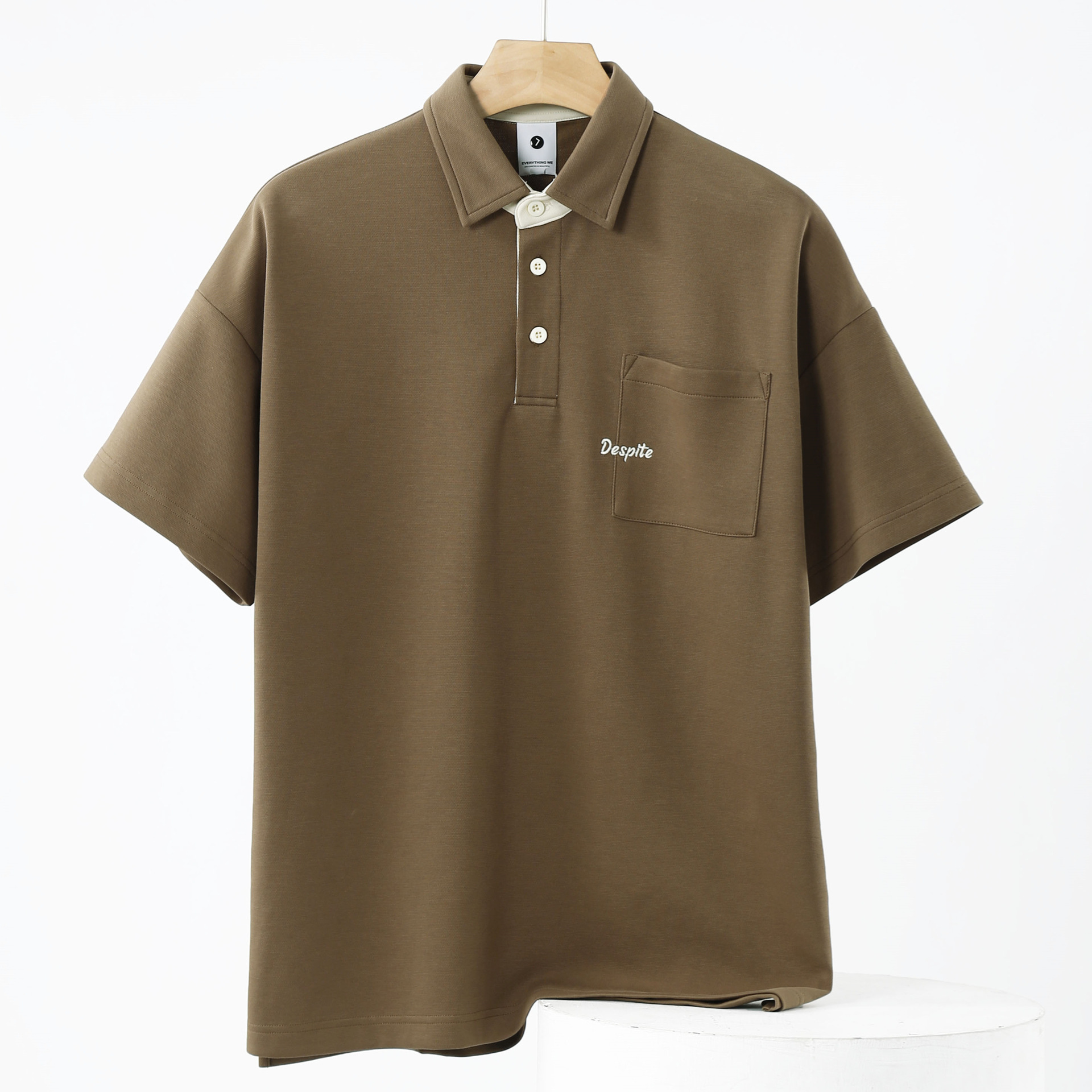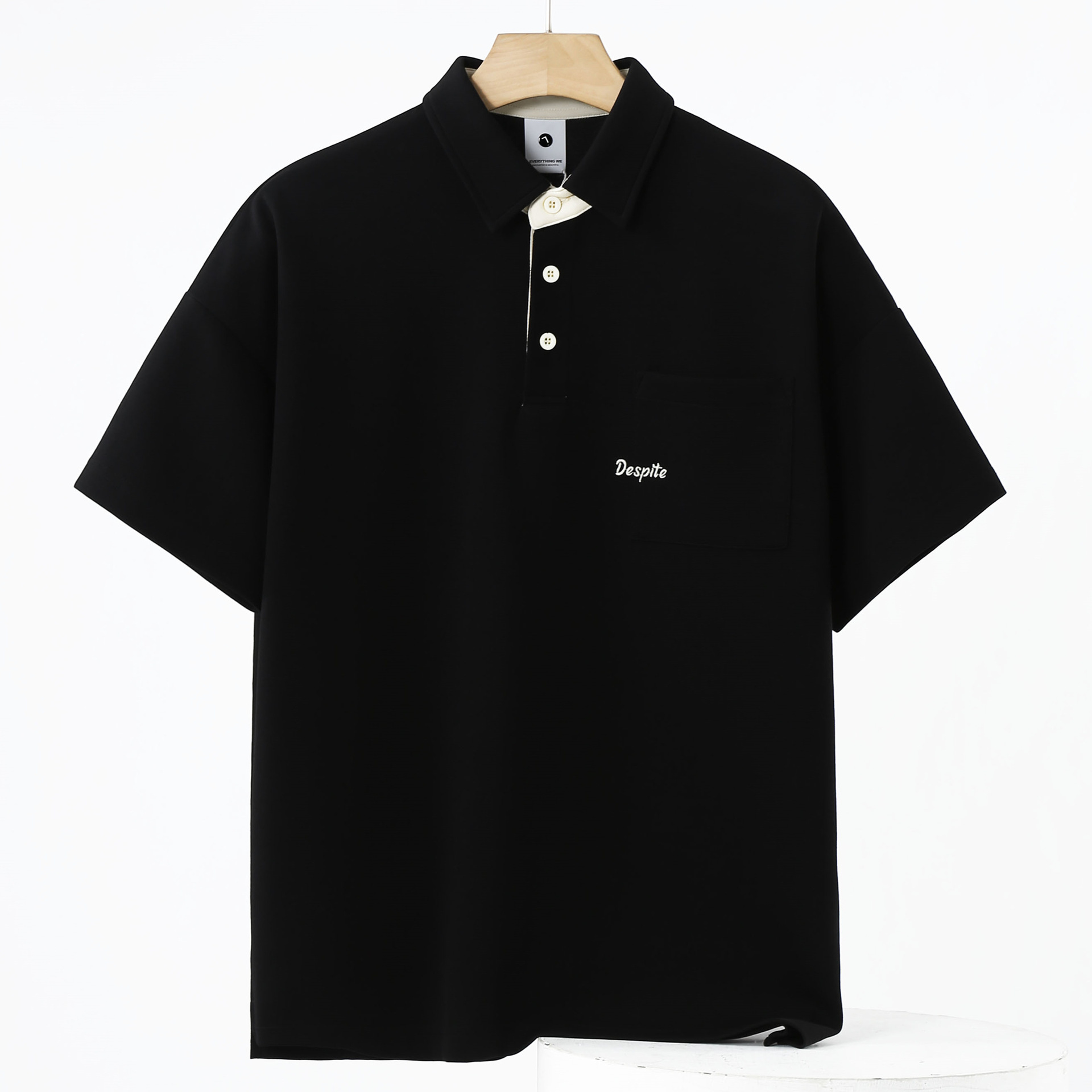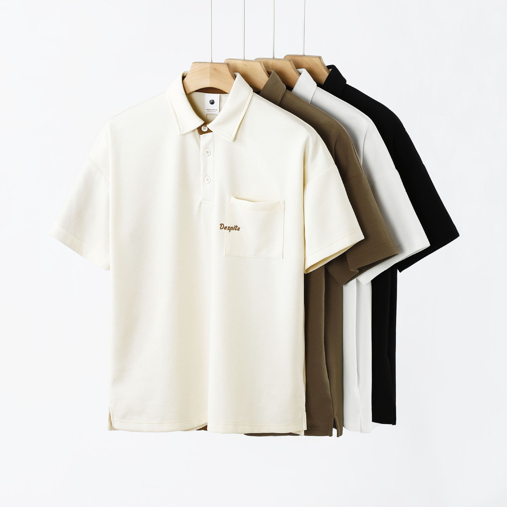 日系重磅字母刺绣polo衫男夏季新款宽松翻领撞色潮流口袋保罗衫