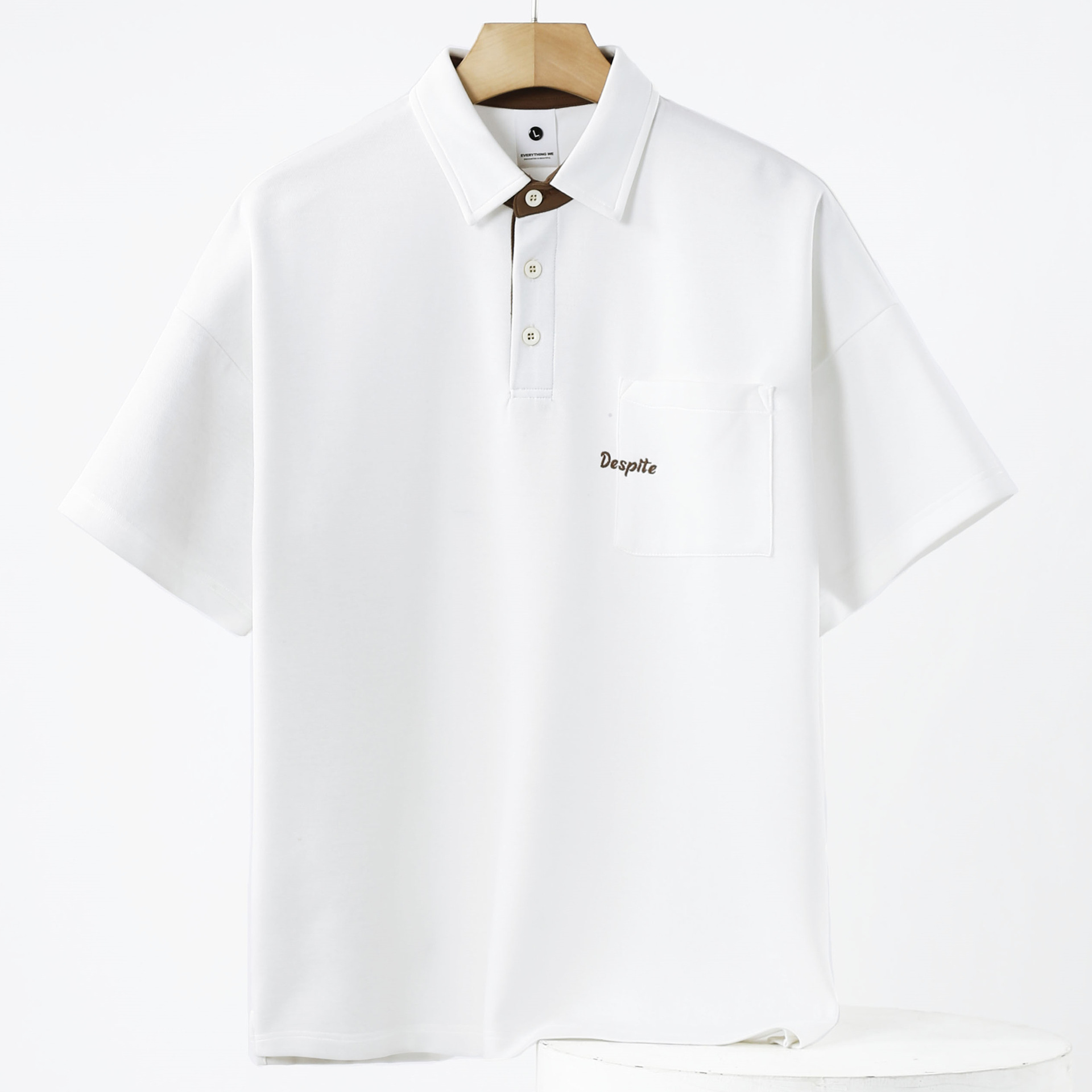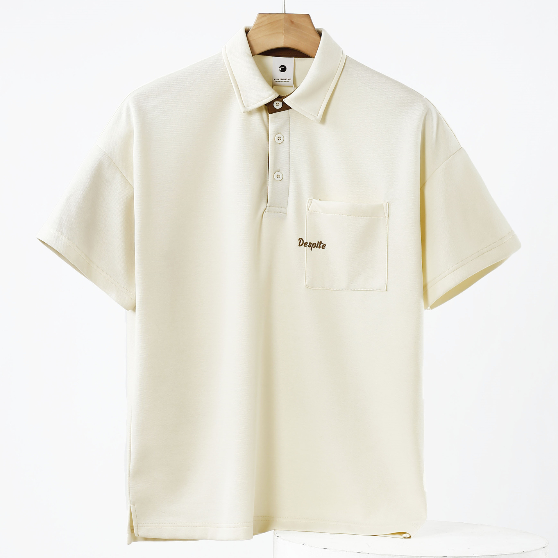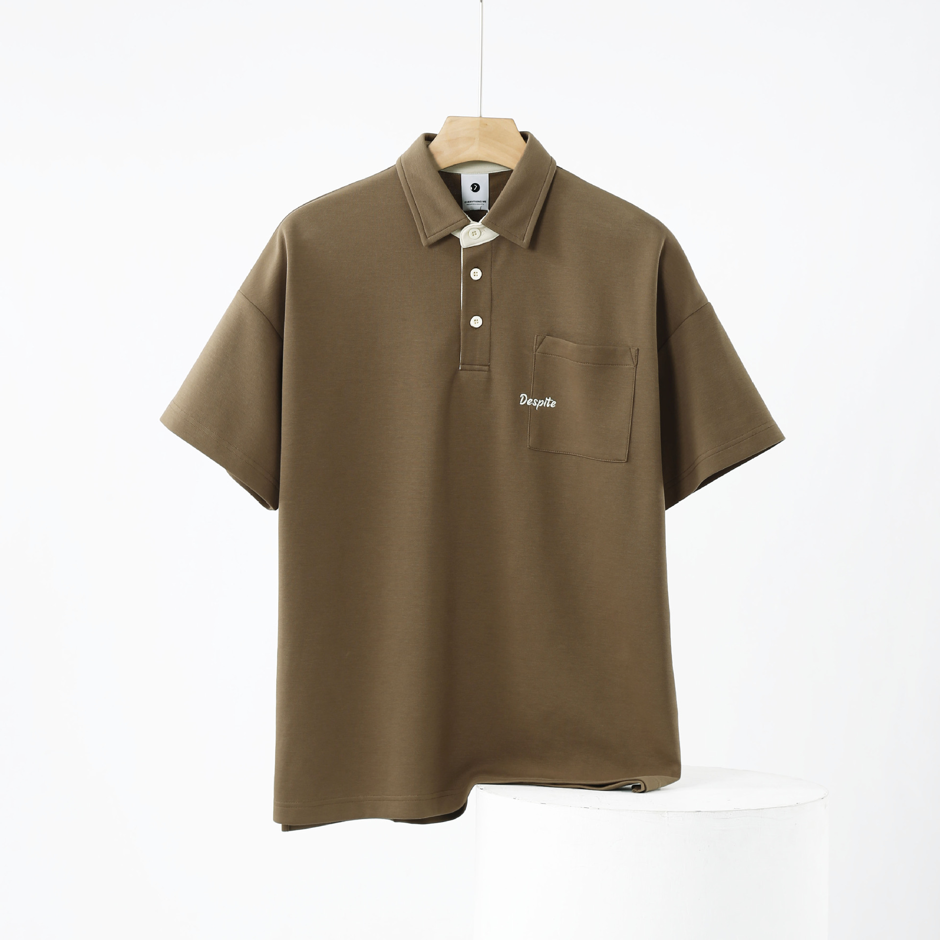日系重磅字母刺绣polo衫男夏季新款宽松翻领撞色潮流口袋保罗衫