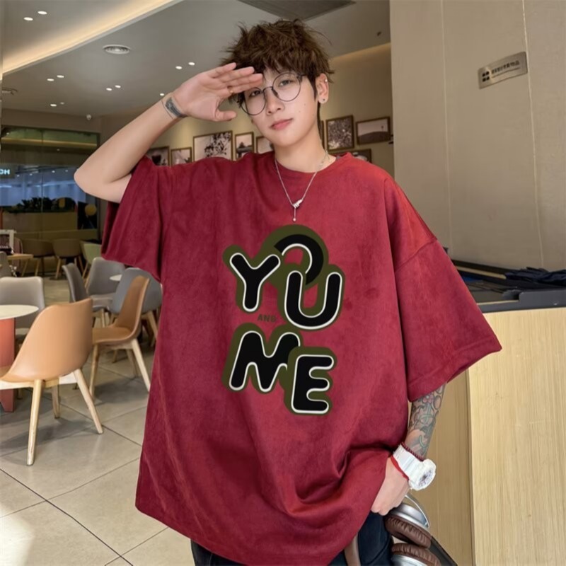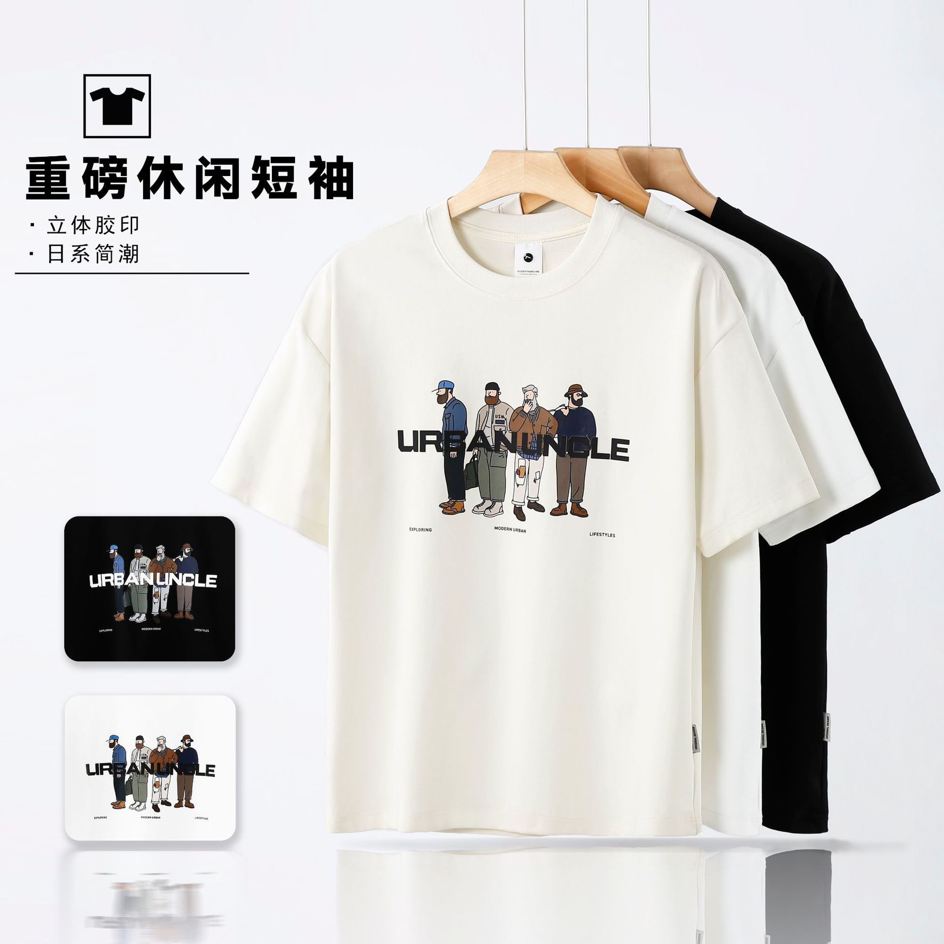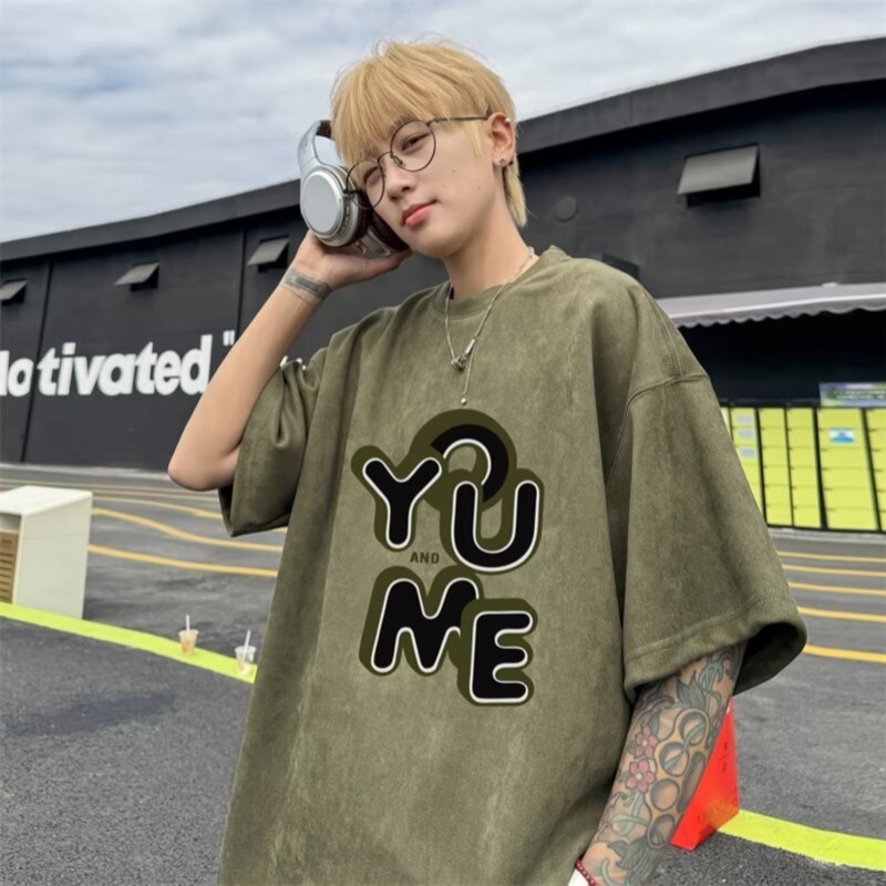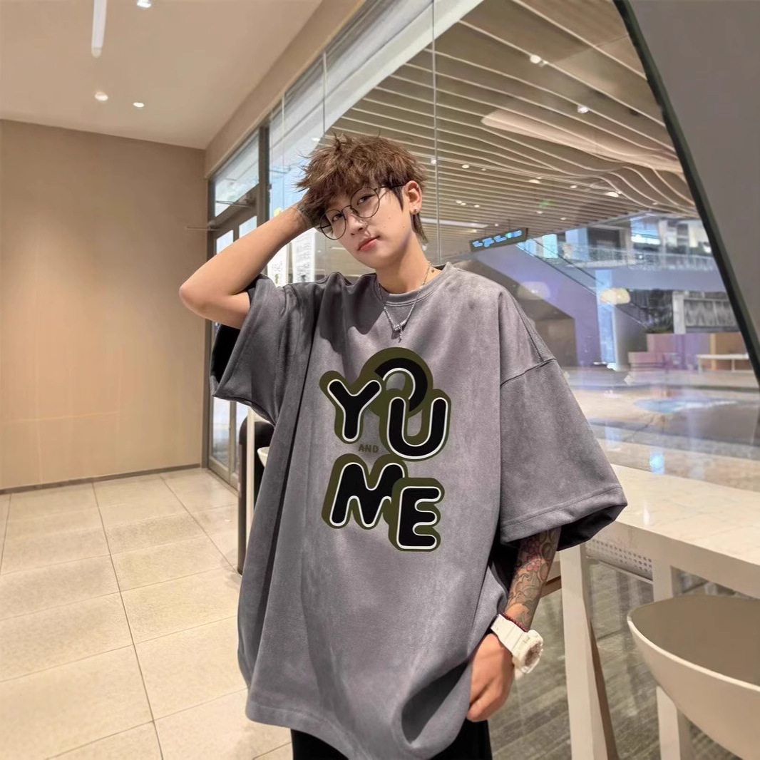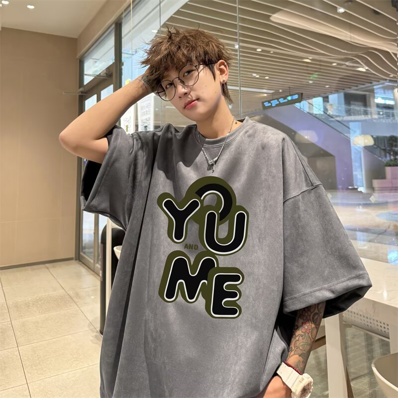 日系宽松字母印花T恤男短袖百搭2025夏季时尚中长款圆领半袖上衣
