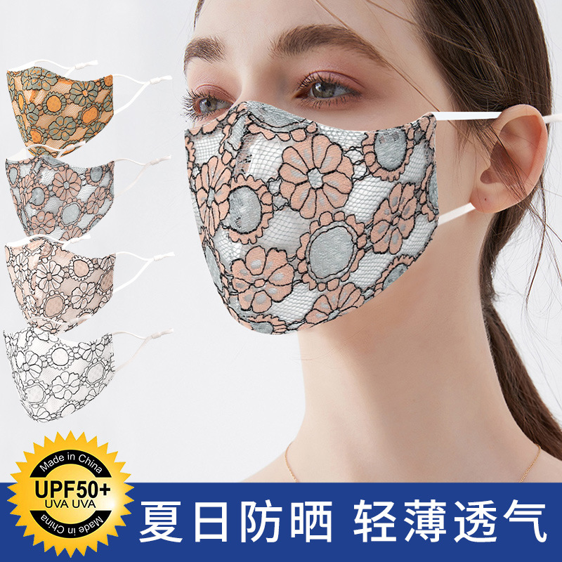 薄款蕾丝口罩女夏天开车骑行遮阳透气防晒面罩亚马逊蕾丝棉布口罩