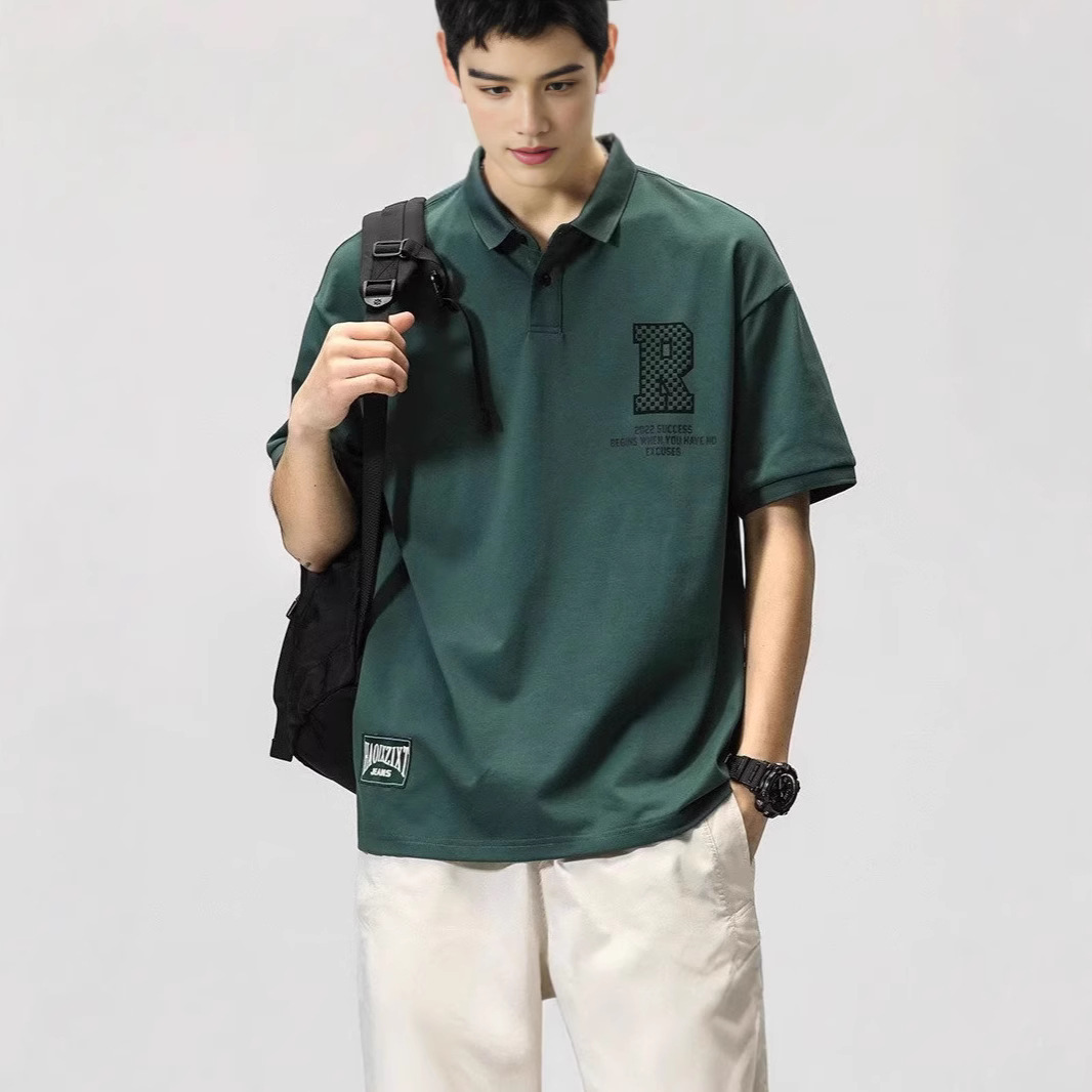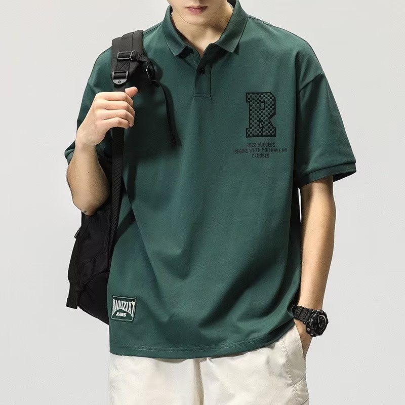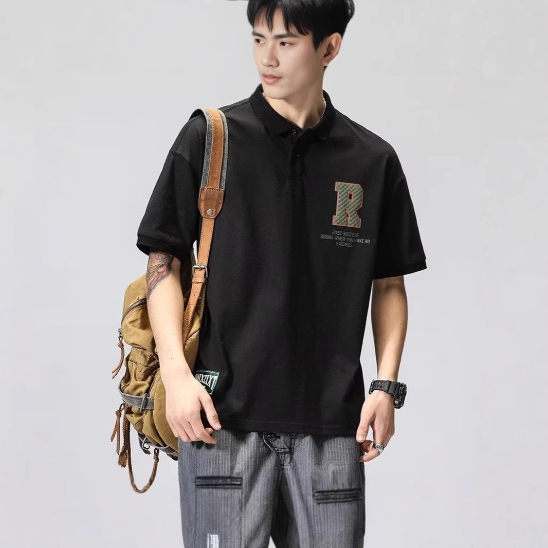 文艺2025五分袖慵懒新款简约标准潮流男潮青春流行气质POLO衫夏季