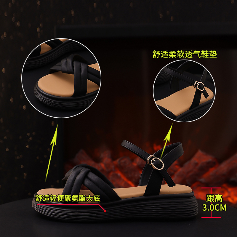 凉鞋女夏季新款百搭罗马凉鞋女平底凉鞋女厚底外穿夏天凉鞋女