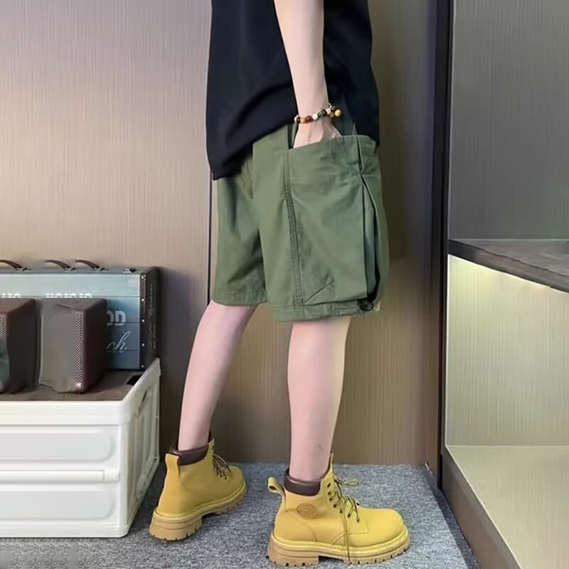 美式机能风工装短裤男夏季休闲宽松胖子大码五分裤直筒复古中裤潮
