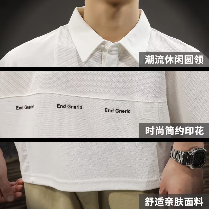 日系简约短袖Polo衫男夏季潮流胖子加肥加大码宽松休闲翻领t恤衫