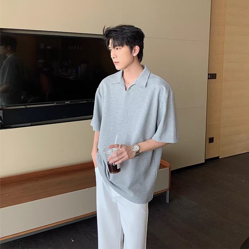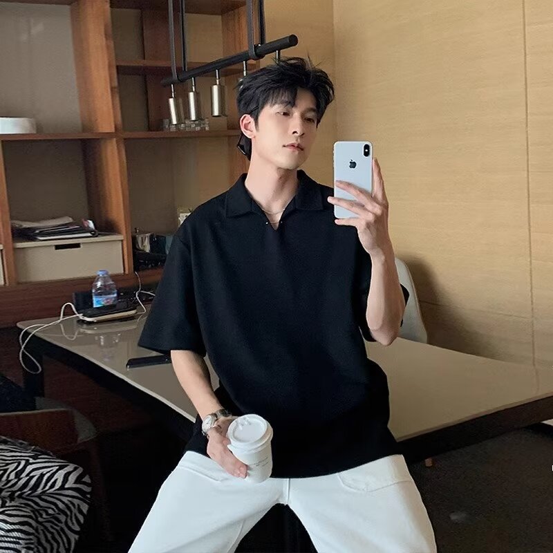 夏季简约短袖polo衫男生痞帅潮流宽松翻领t恤青少年潮牌休闲体恤