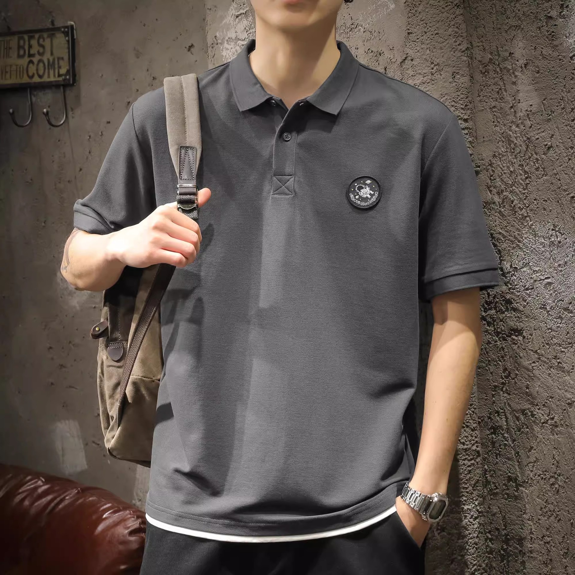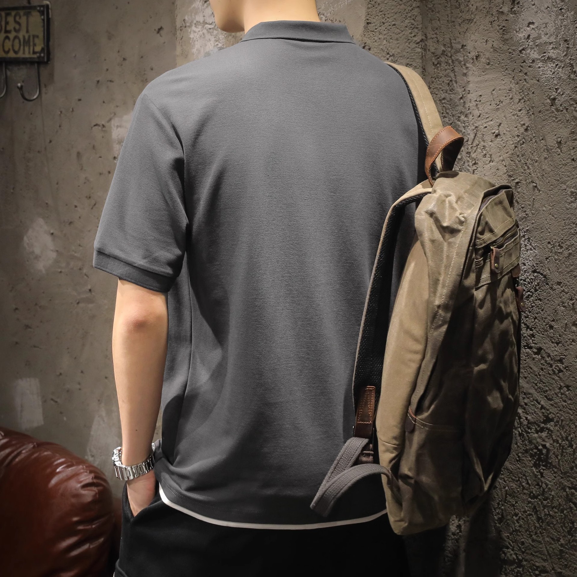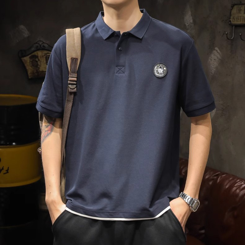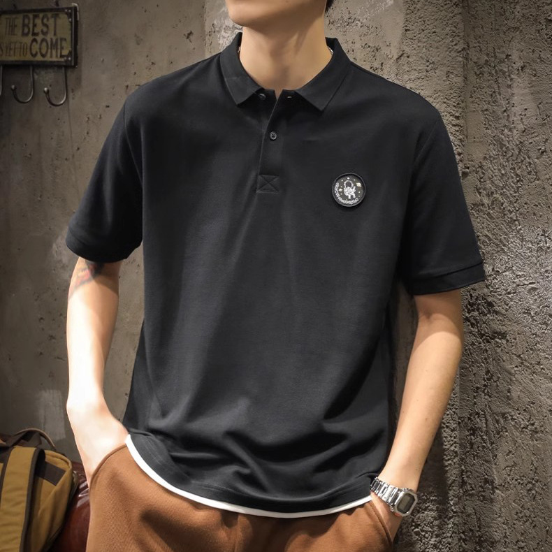 夏季潮牌假两件Polo衫短袖t恤男宽松大码胖子潮流新款半袖体恤衫
