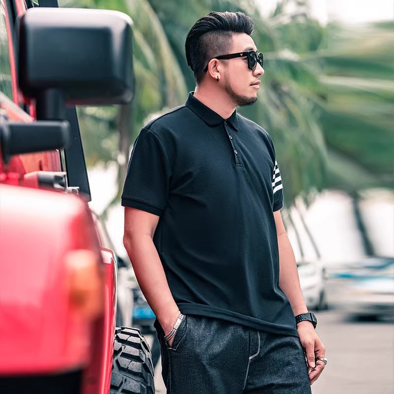 潮牌男装加肥加大码短袖polo衫胖子纯色宽松胖人翻领T恤休闲上衣
