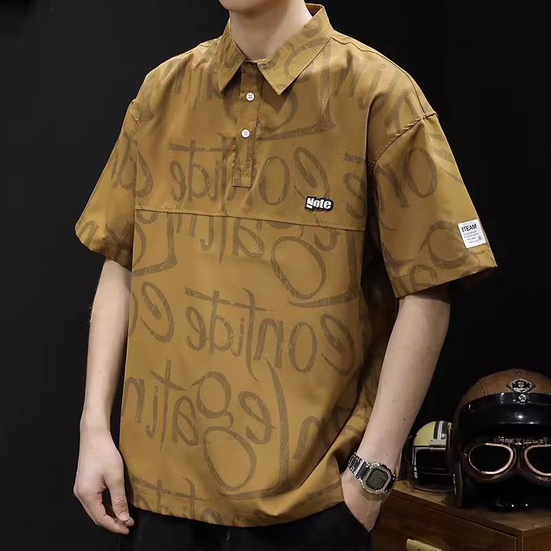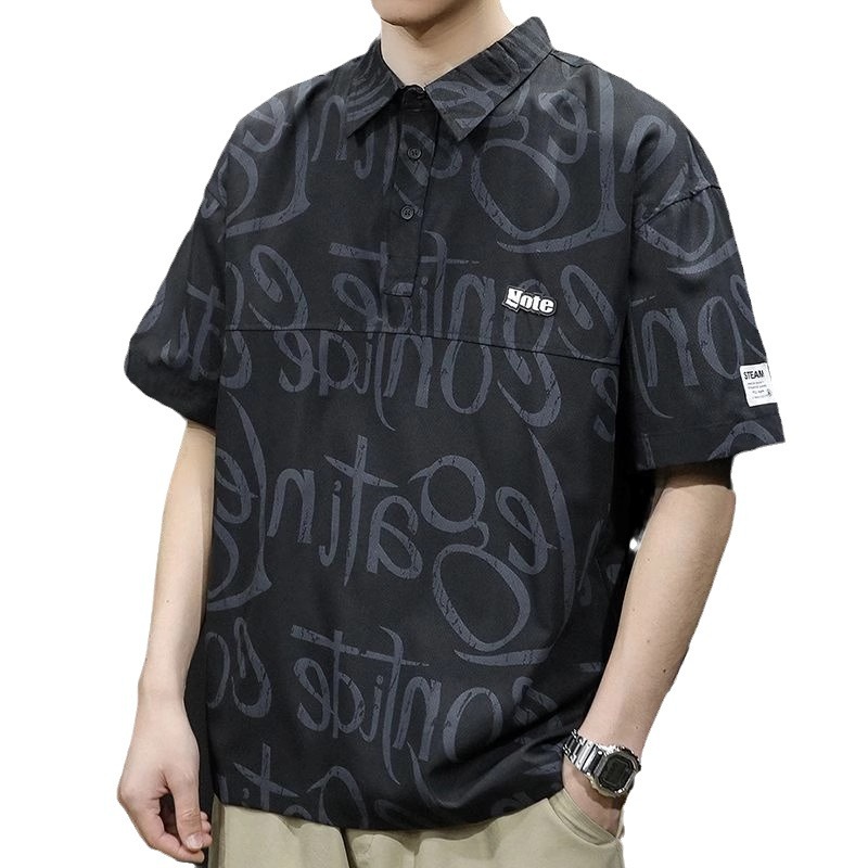 夏季短袖Polo衫男工装潮牌胖子大码宽松半袖冰丝薄款速干t恤衬衣