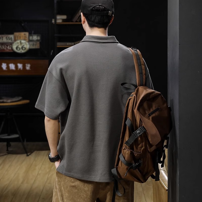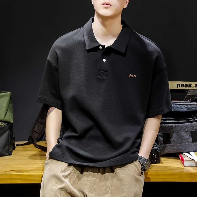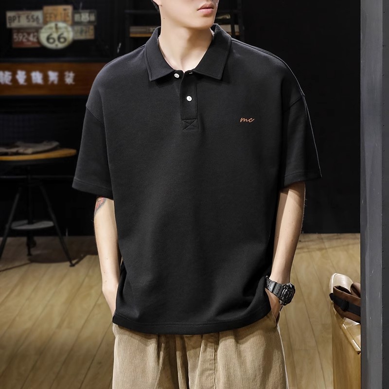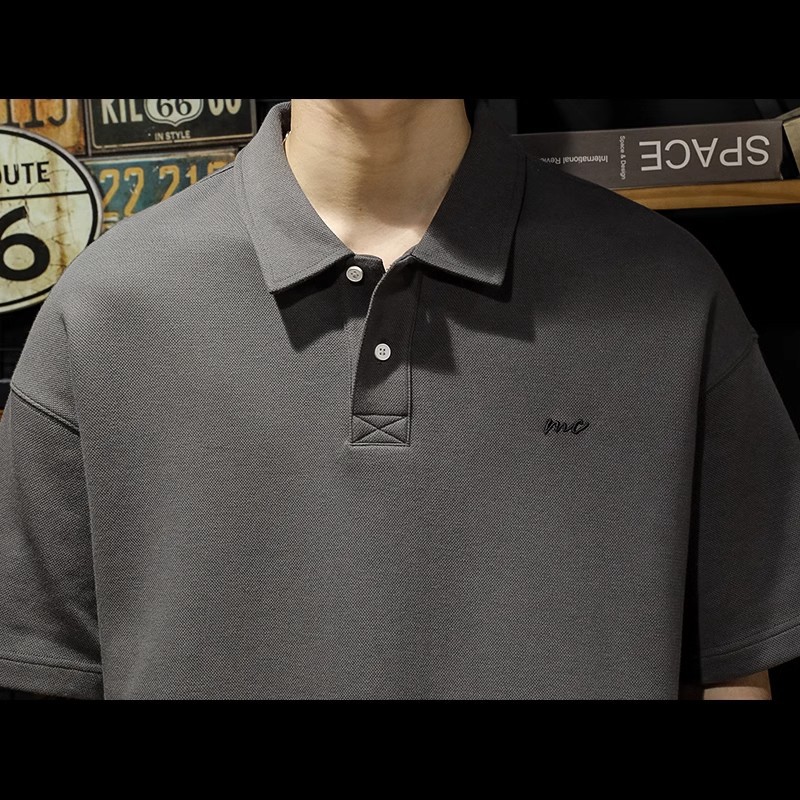 美式复古潮牌短袖POLO衫男夏季胖子宽松大码翻领T恤休闲商务上衣