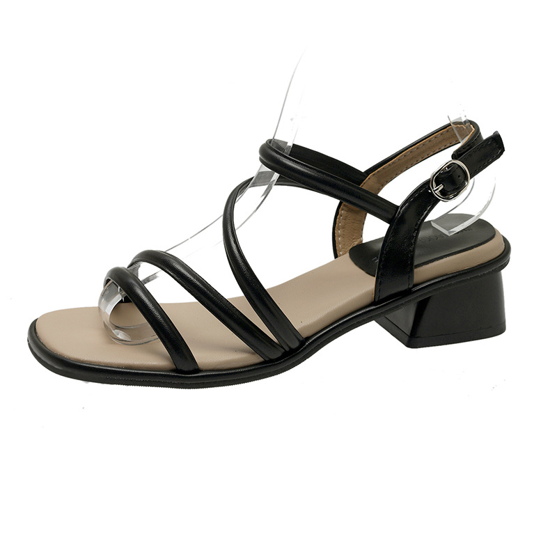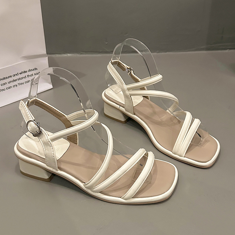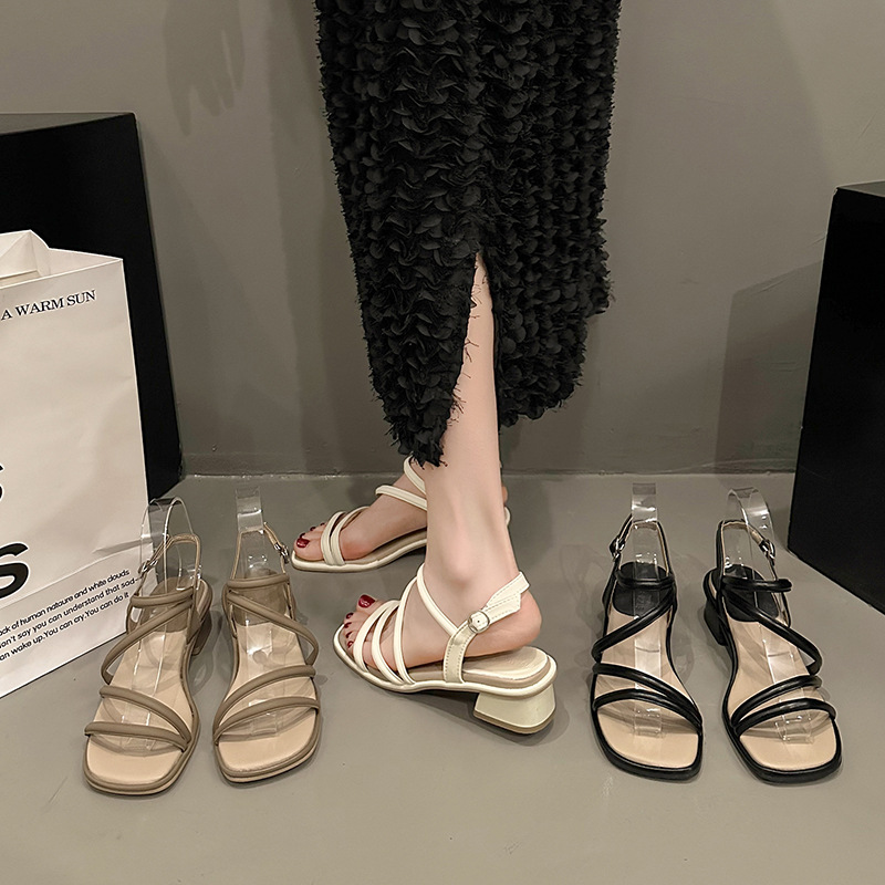 法式仙女风凉鞋女夏季时尚配裙子新款粗跟拖鞋细带镂空高跟鞋