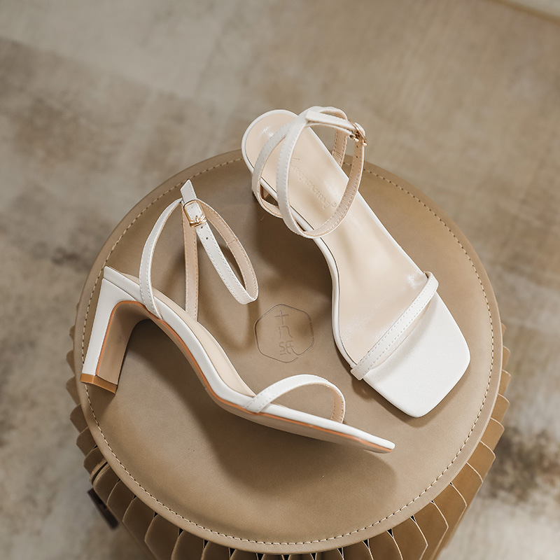 新款粗跟凉鞋女夏季方头女鞋 罗马鞋潮露趾高跟鞋女