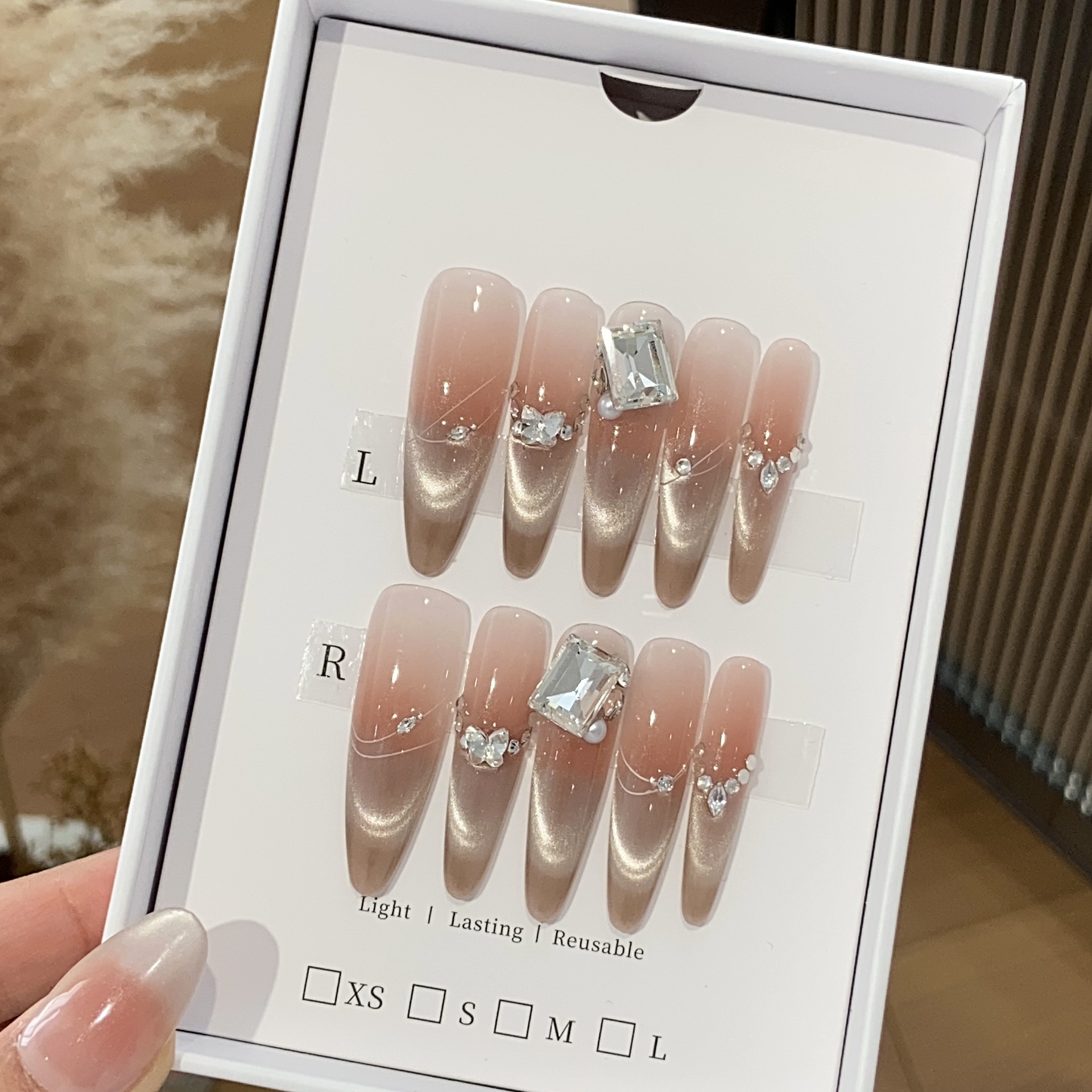 猫眼纯手工美甲贴片春夏显白爆闪假指甲贴片可拆卸美甲贴片批发