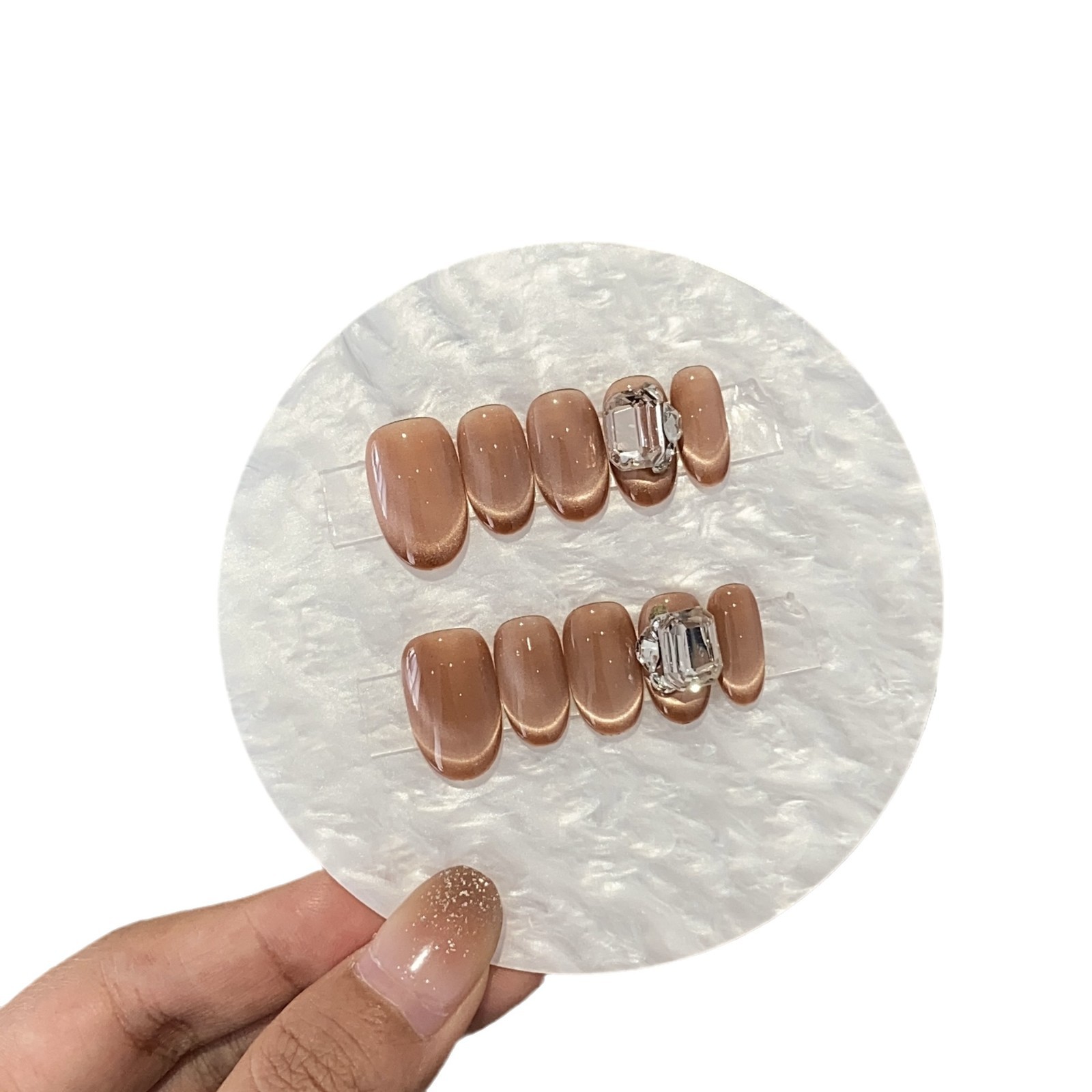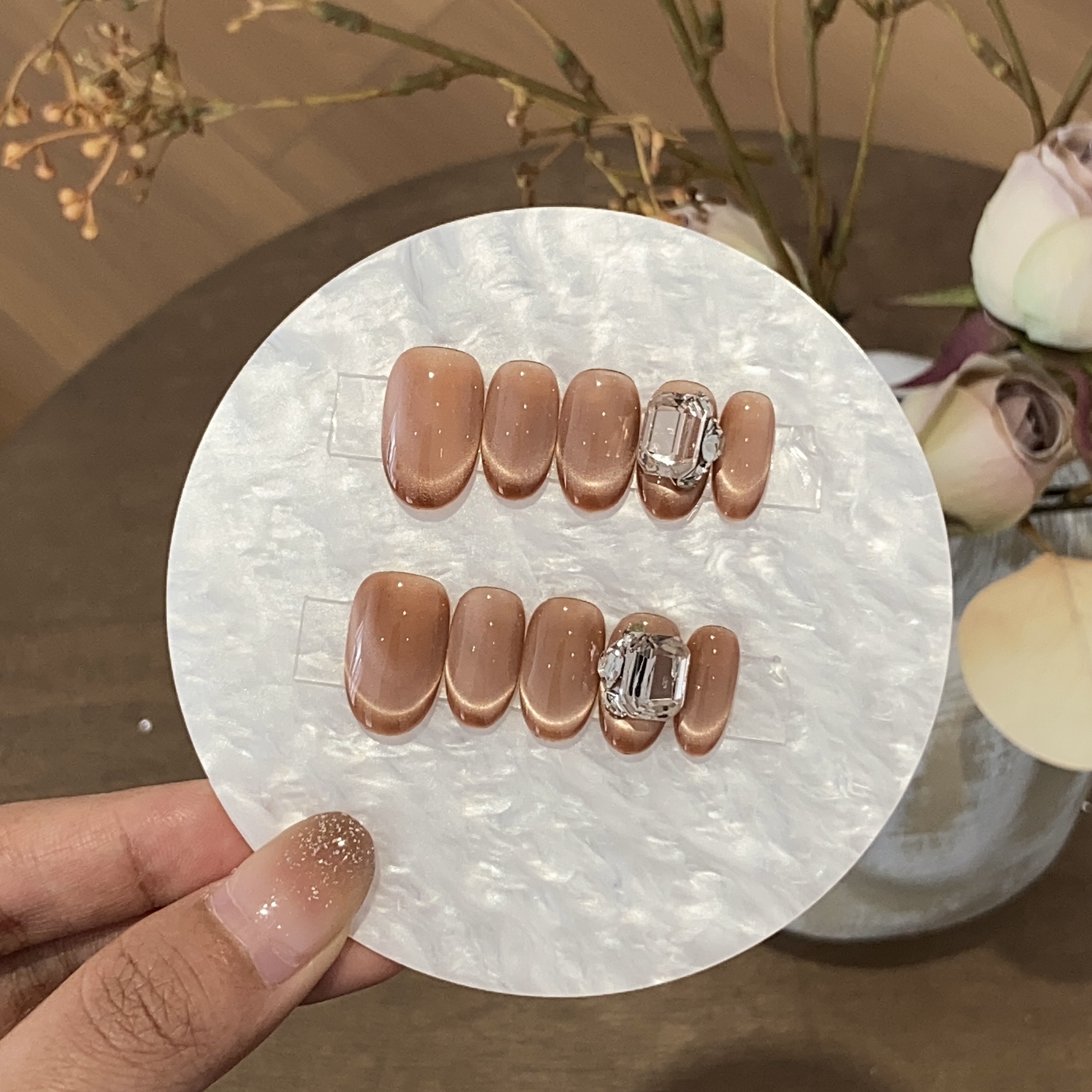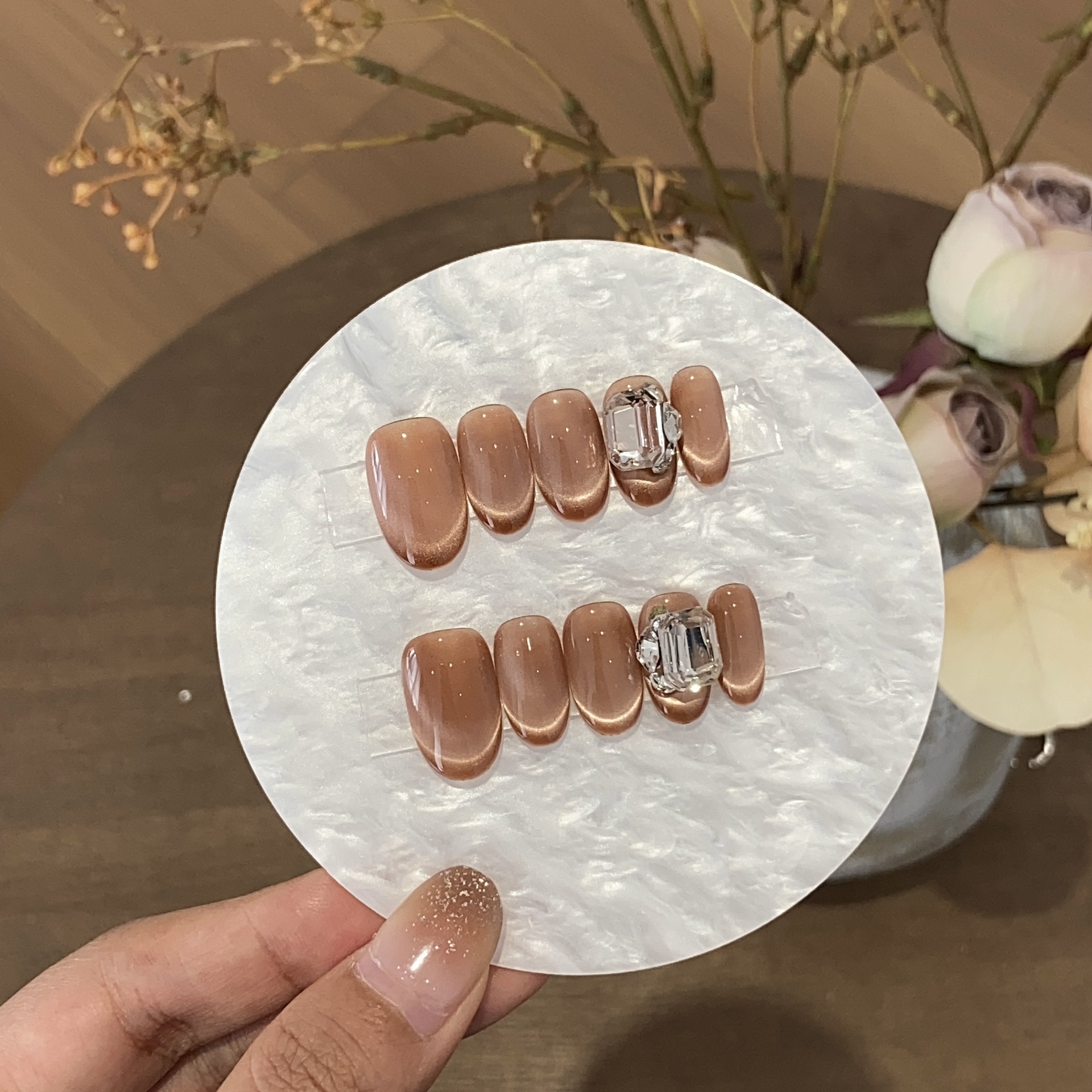 一只顾美甲 【Y】复古日常百搭微笑法式猫眼堆堆方钻复古鎏金穿