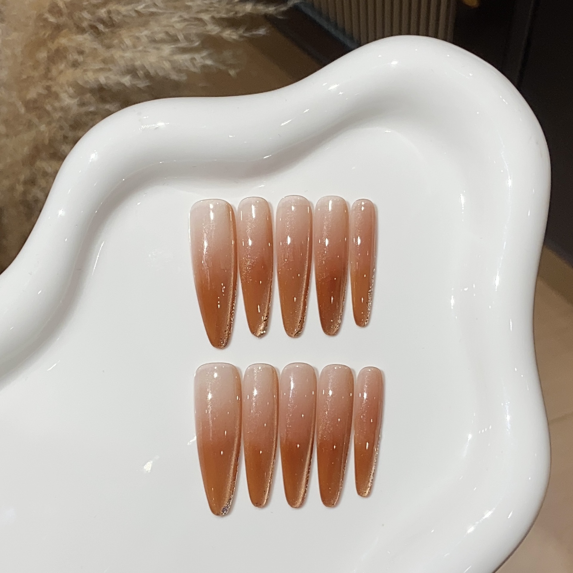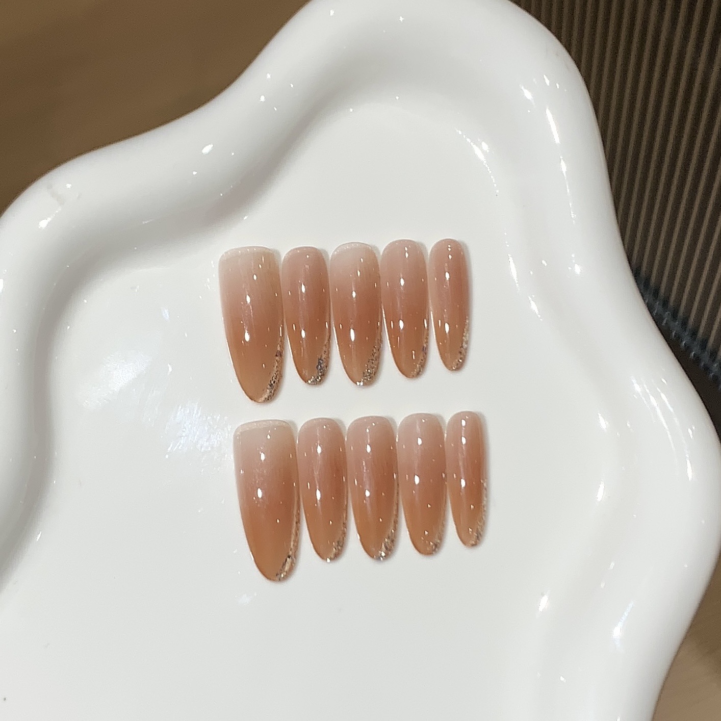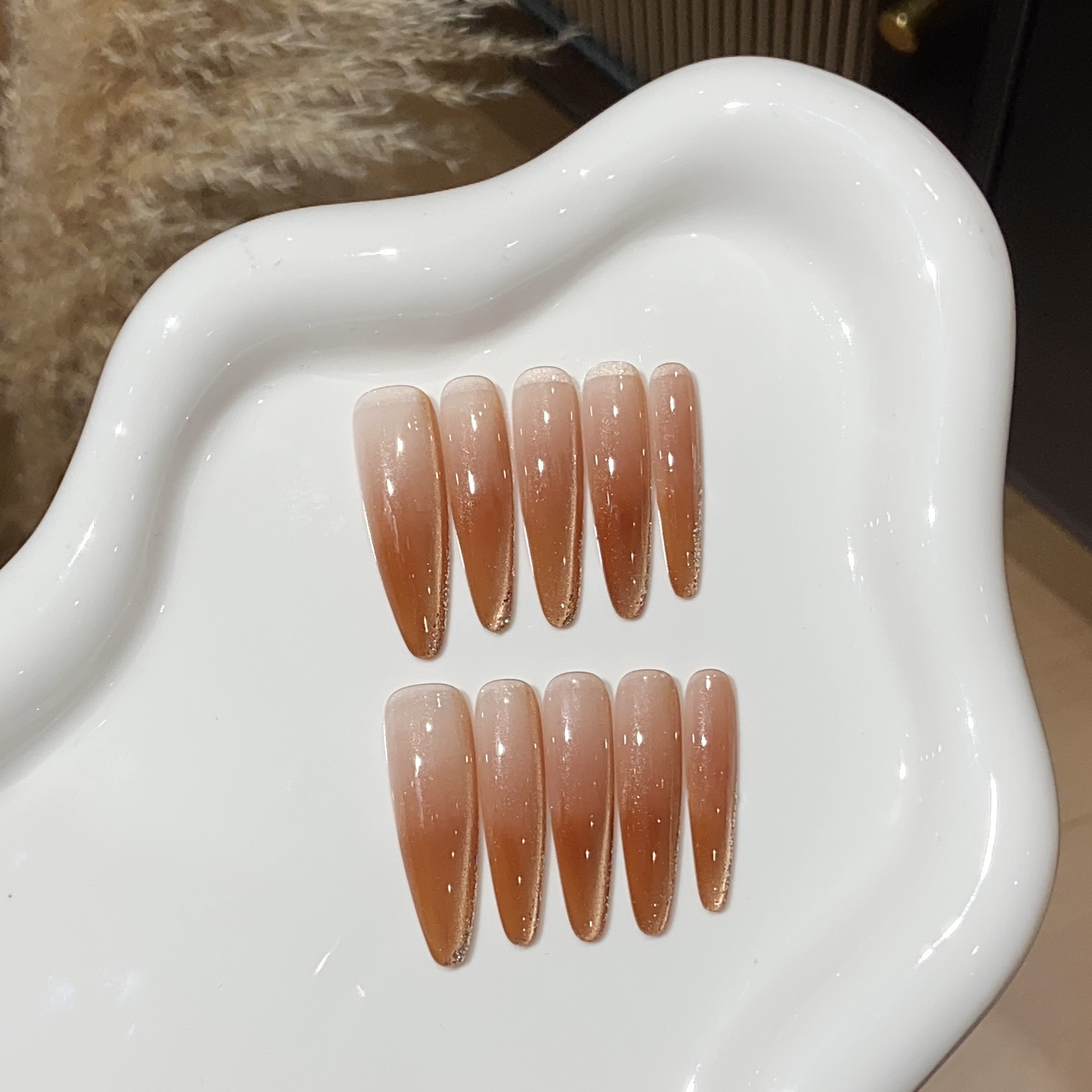 一只顾美甲 简约日常冰透赤橙侧光猫眼亮片纯欲可拆卸贴片穿戴甲