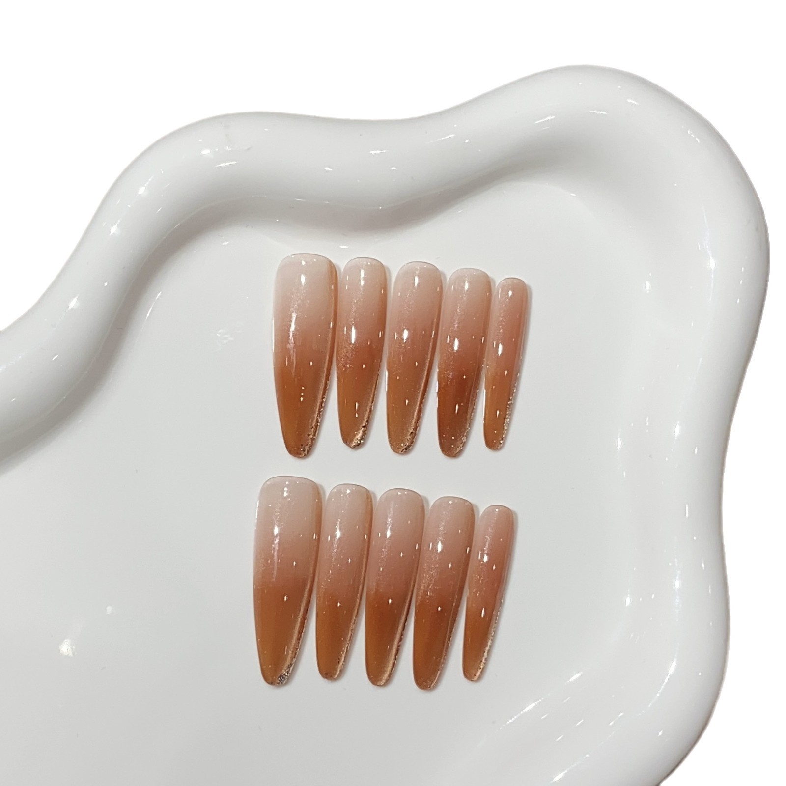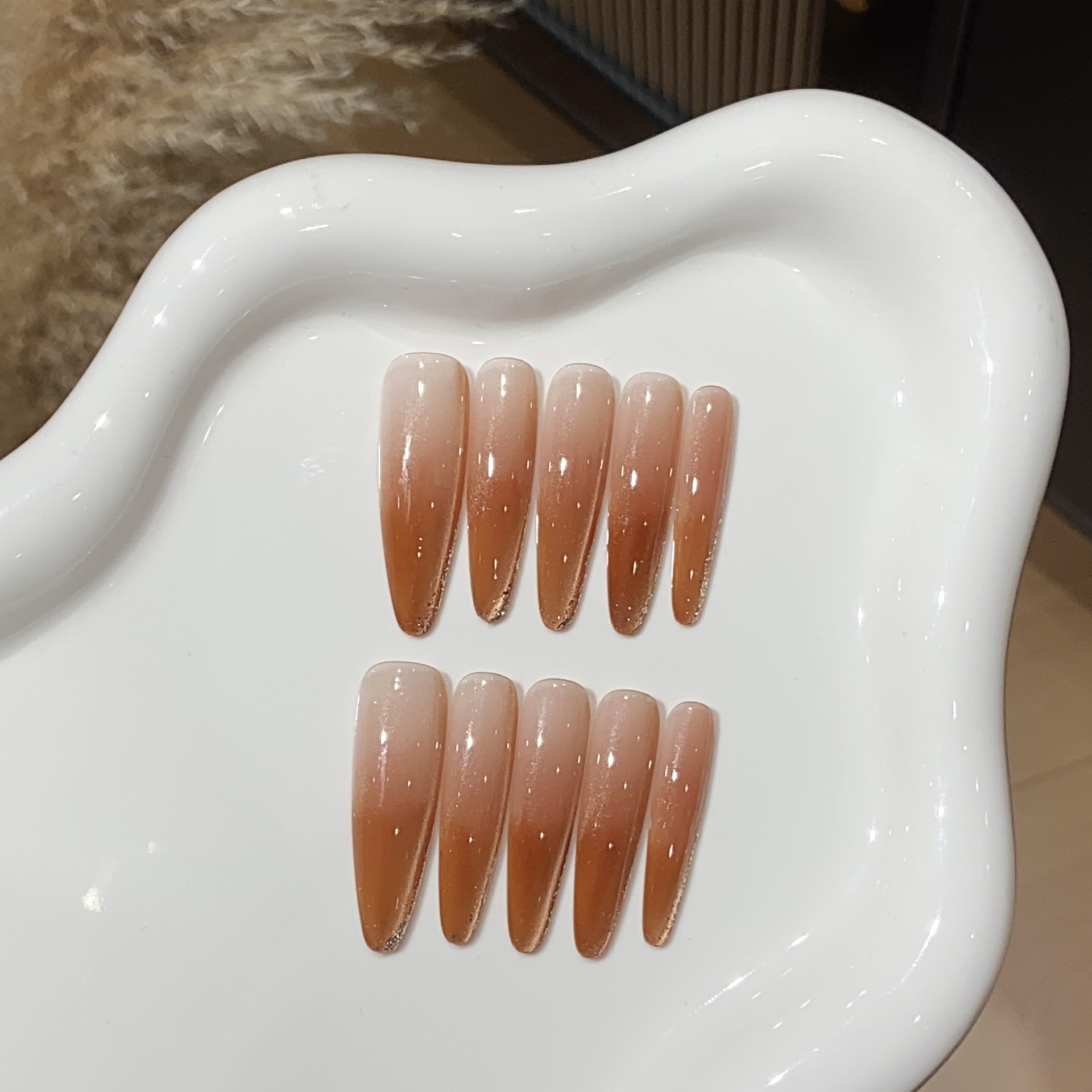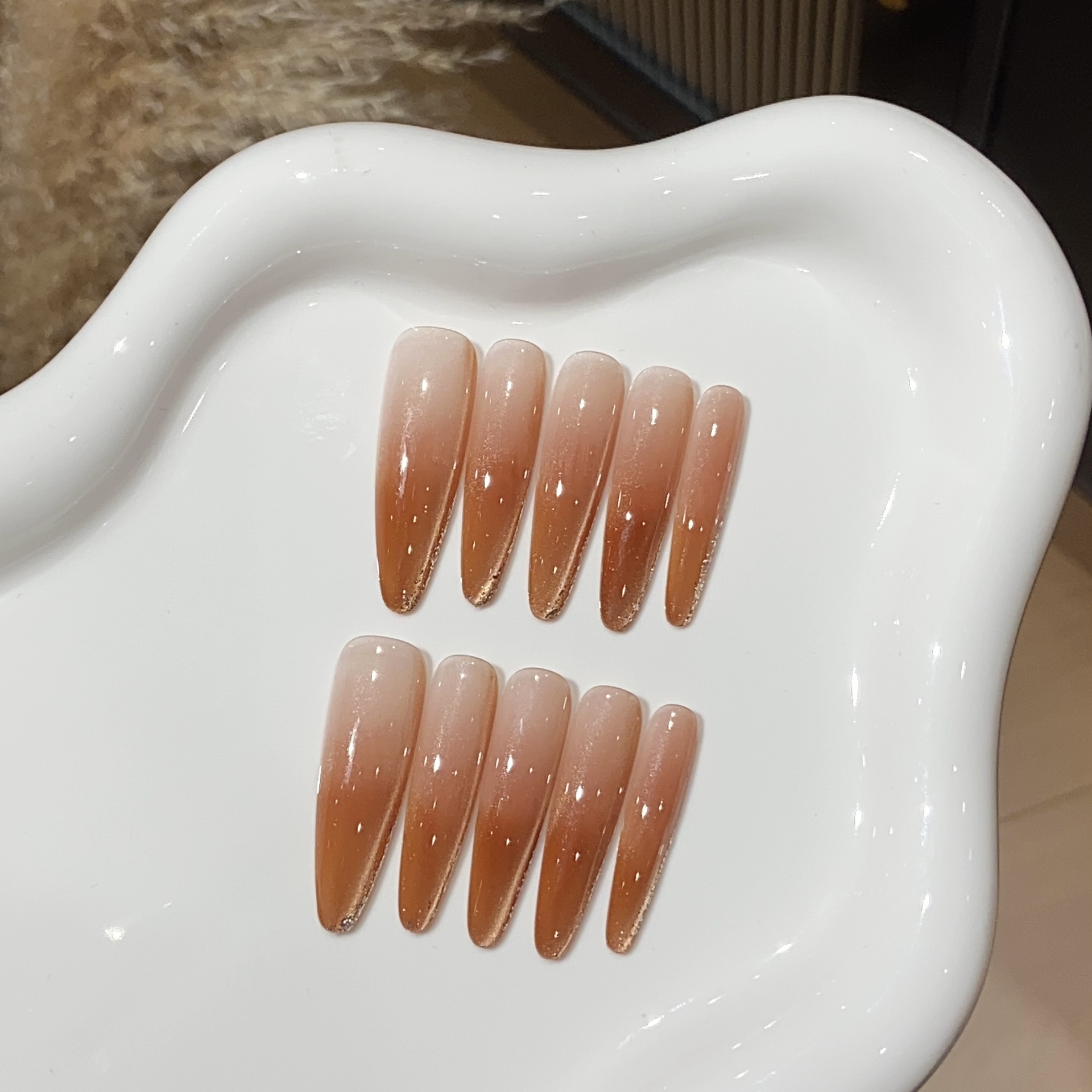 一只顾美甲 简约日常冰透赤橙侧光猫眼亮片纯欲可拆卸贴片穿戴甲