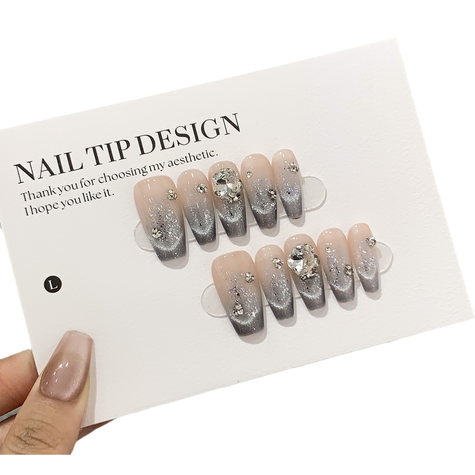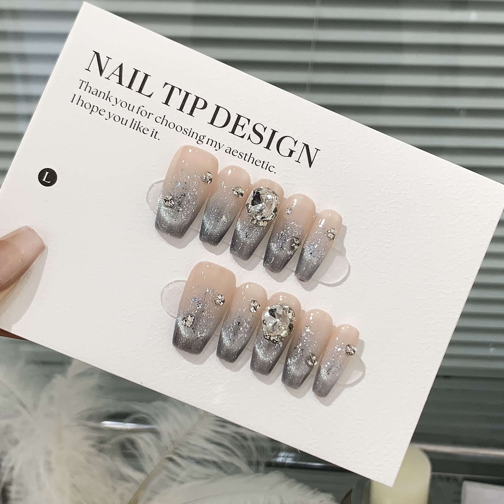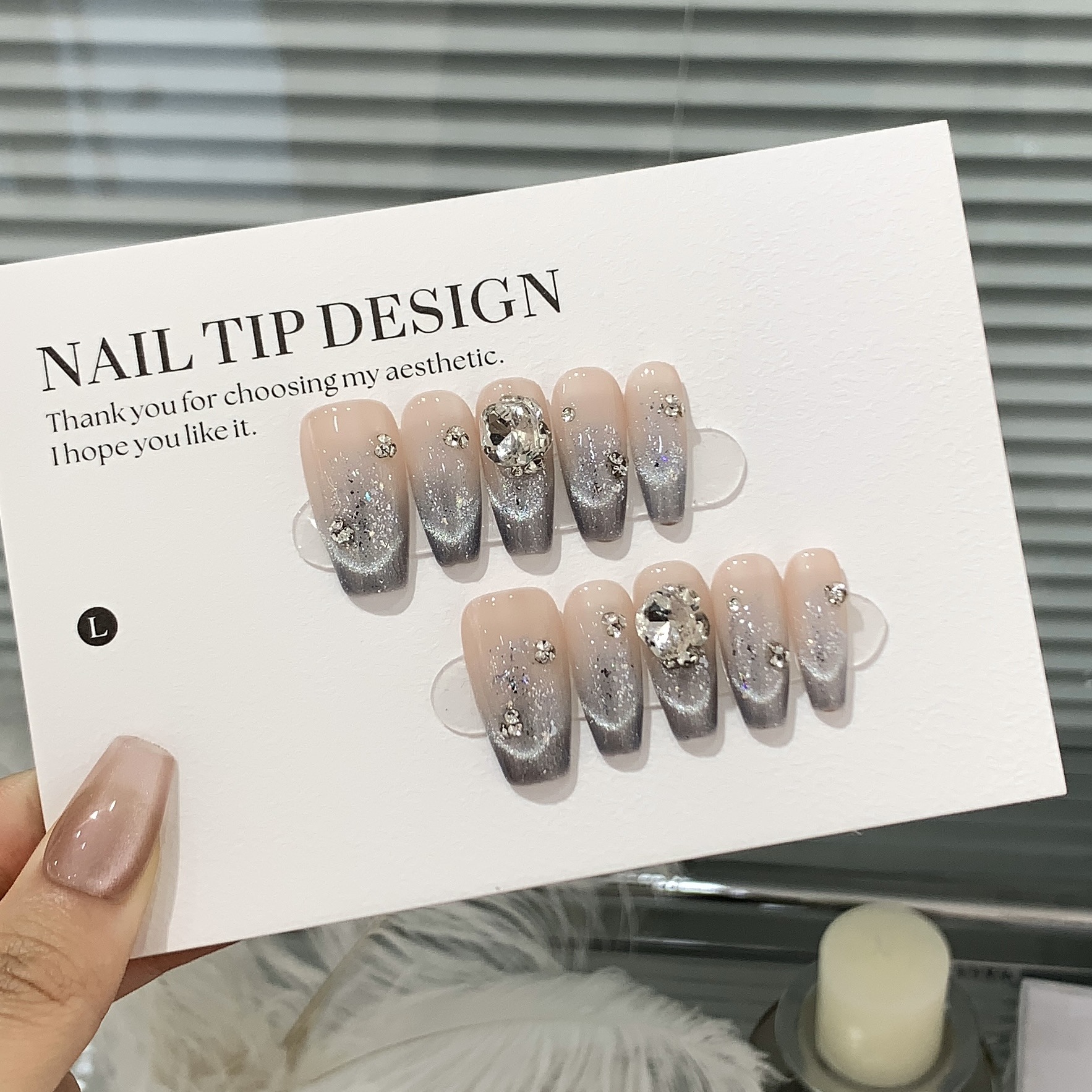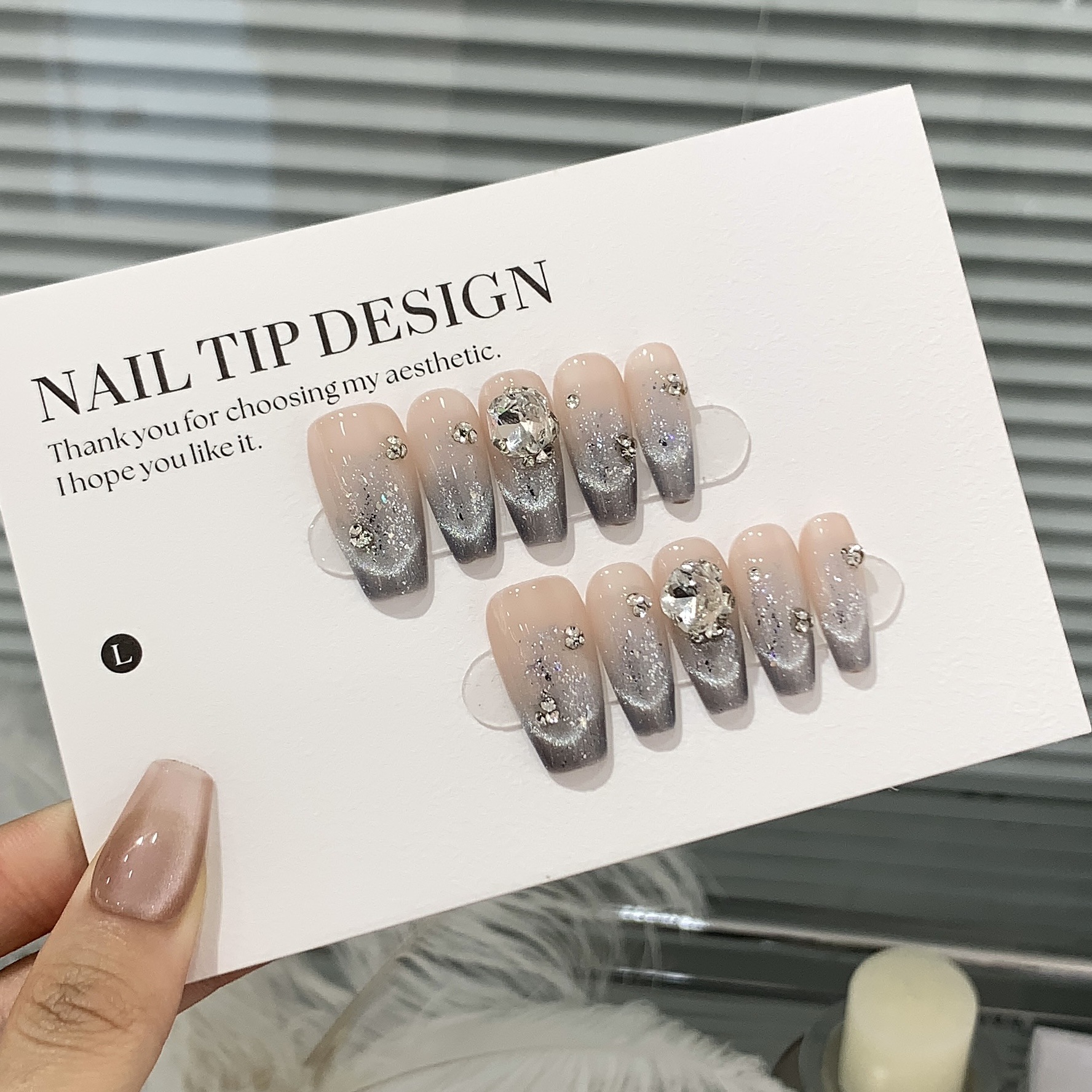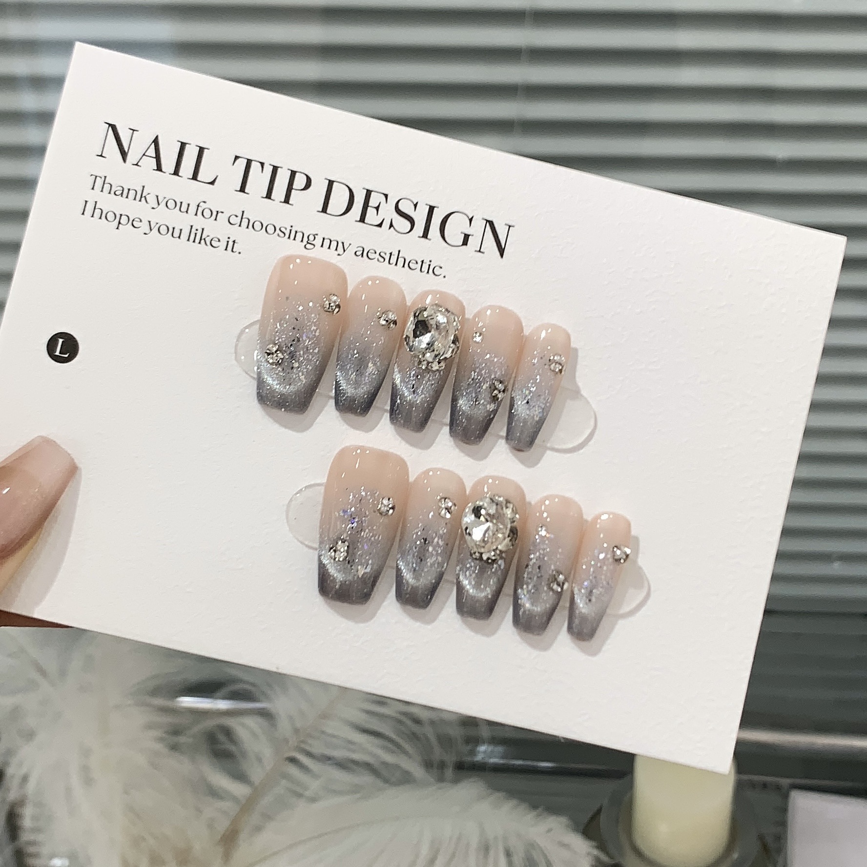 一只顾美甲 冰透渐变银碎细闪猫眼清新堆堆钻魔法蓝可拆卸穿戴甲