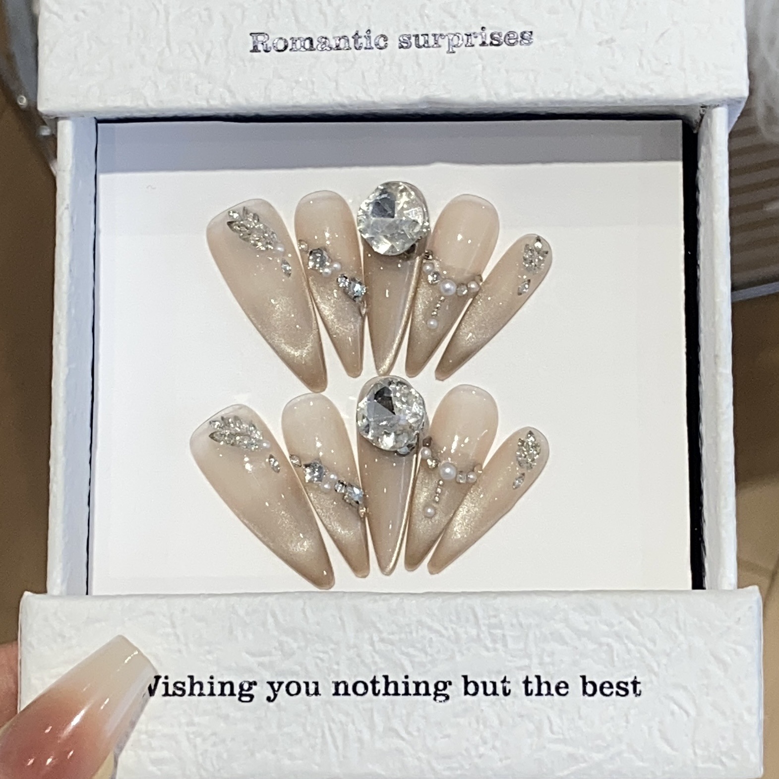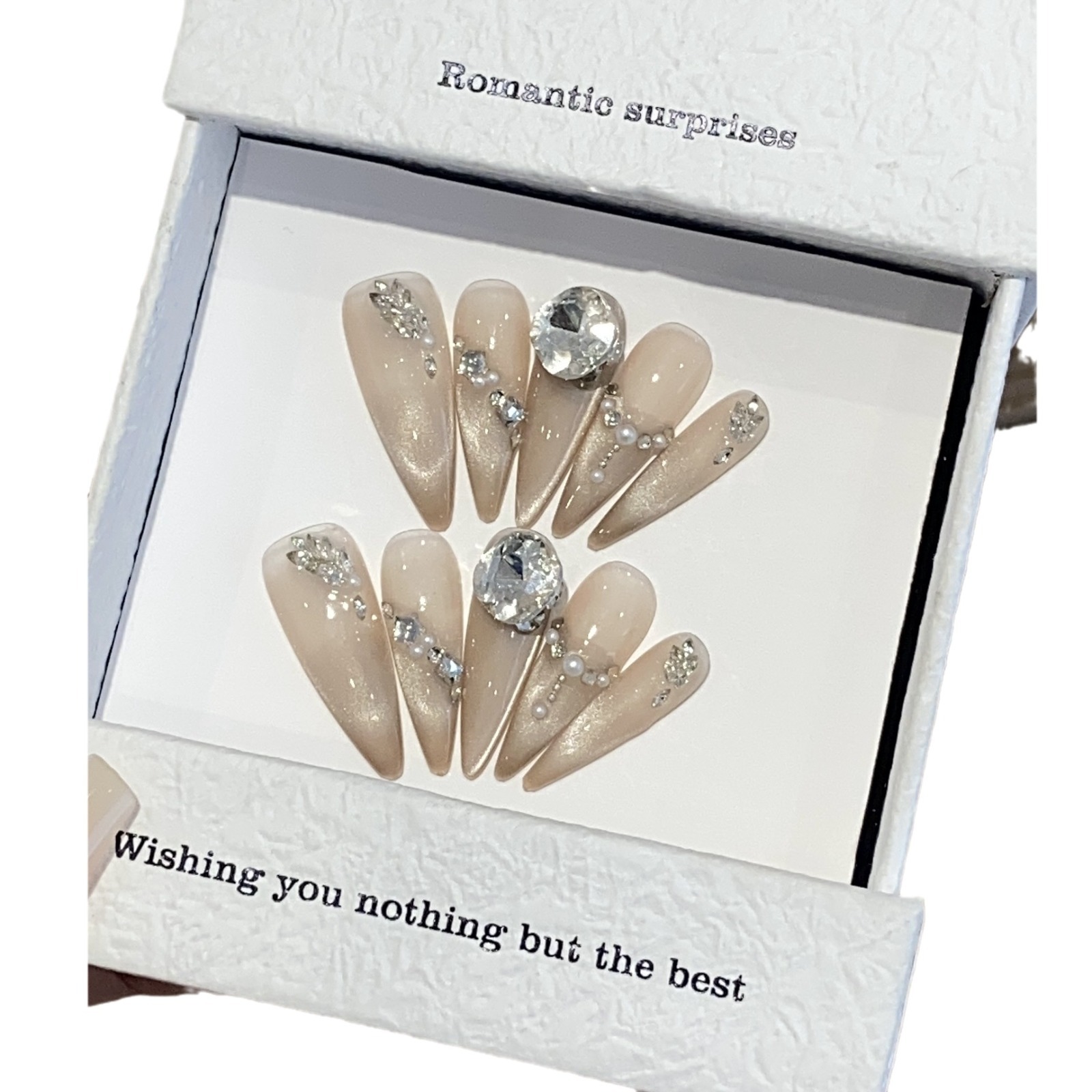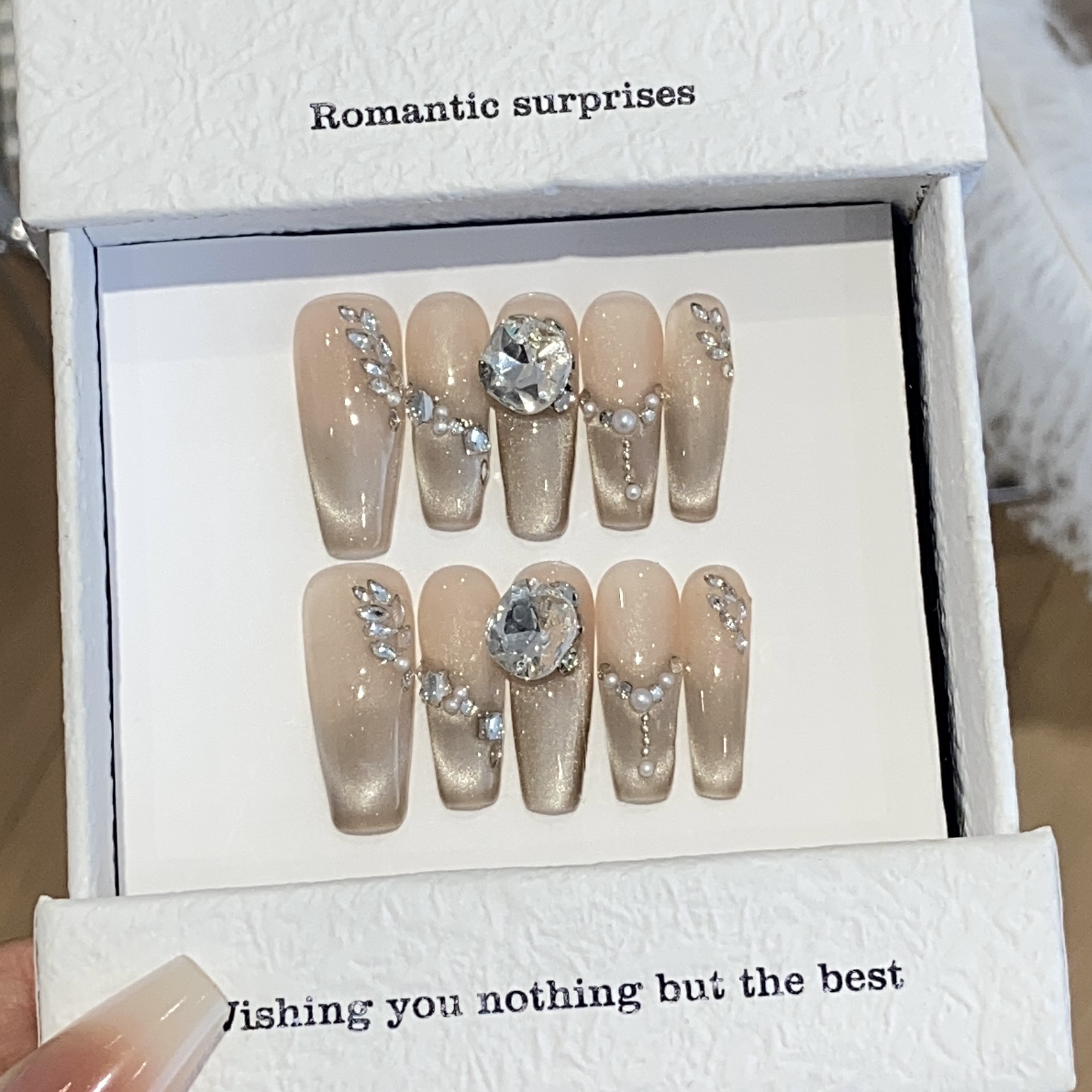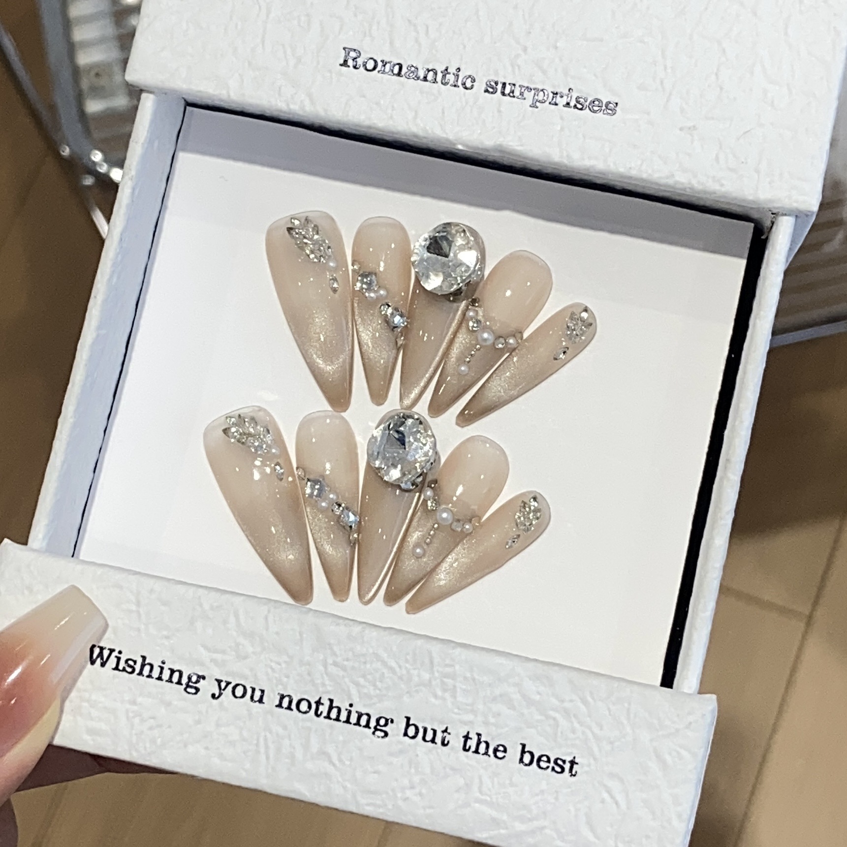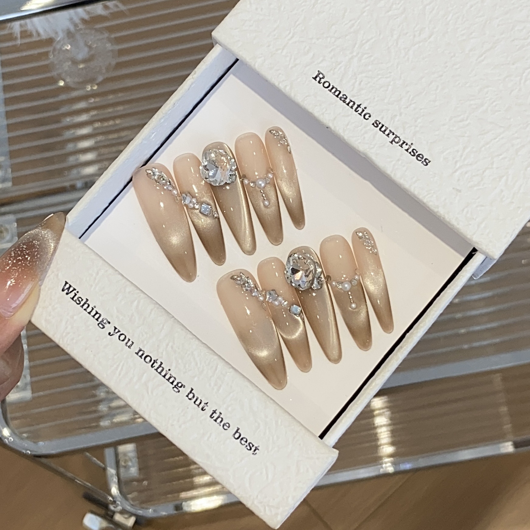 一只顾【琉光 】高级氛围感 重工法式渐变猫眼马眼小碎钻穿戴甲