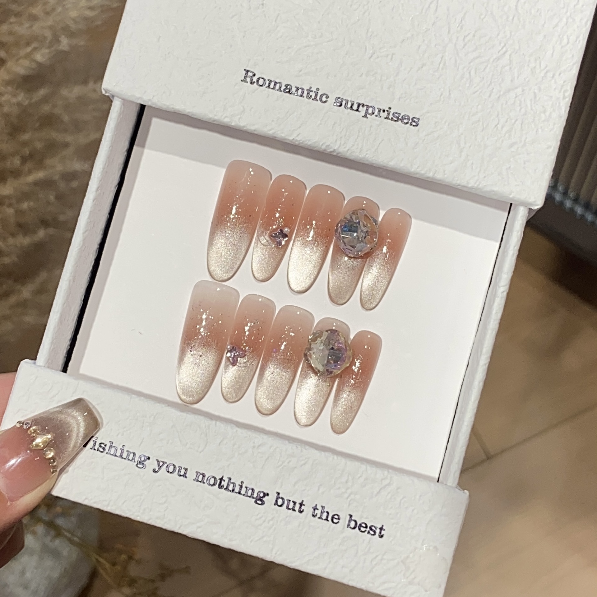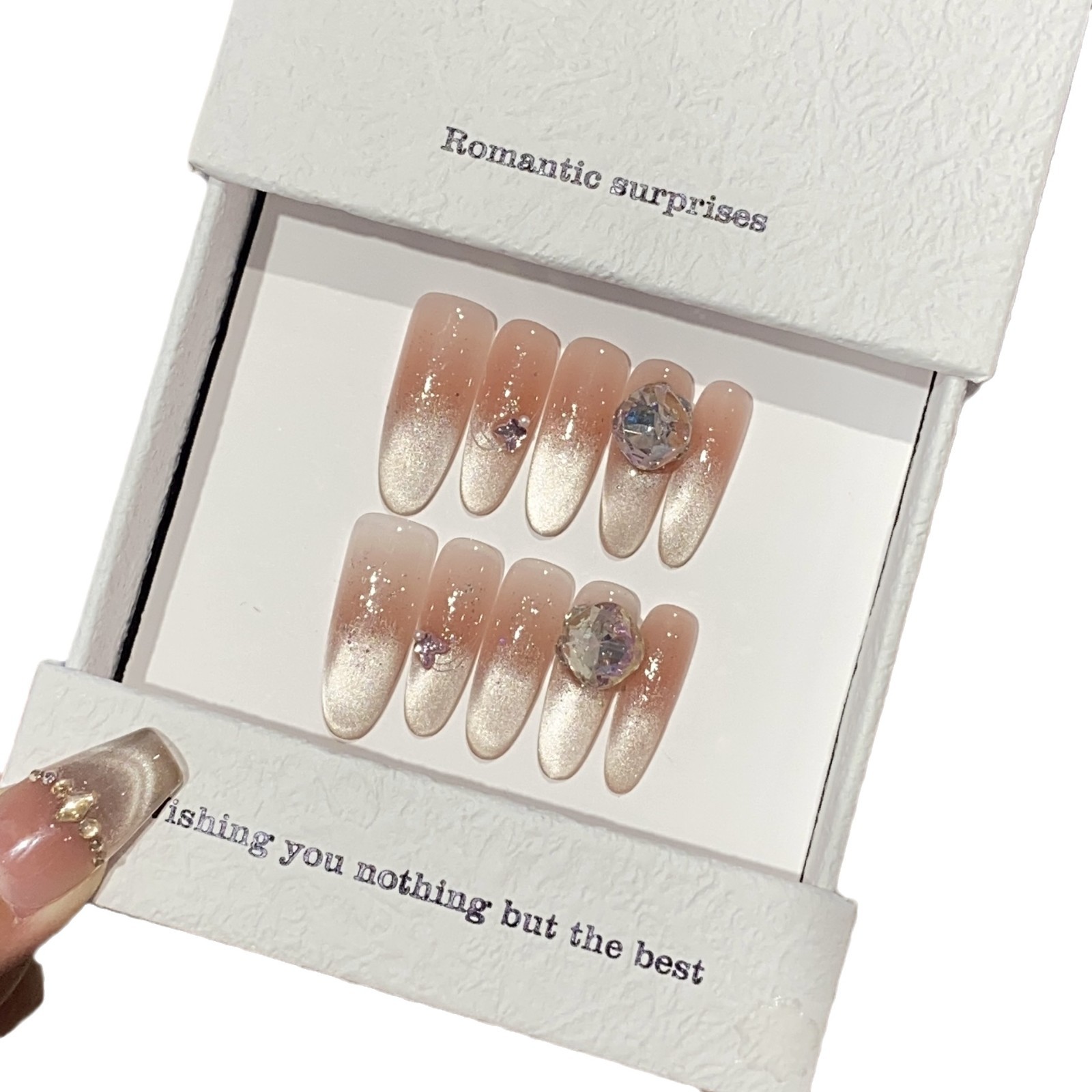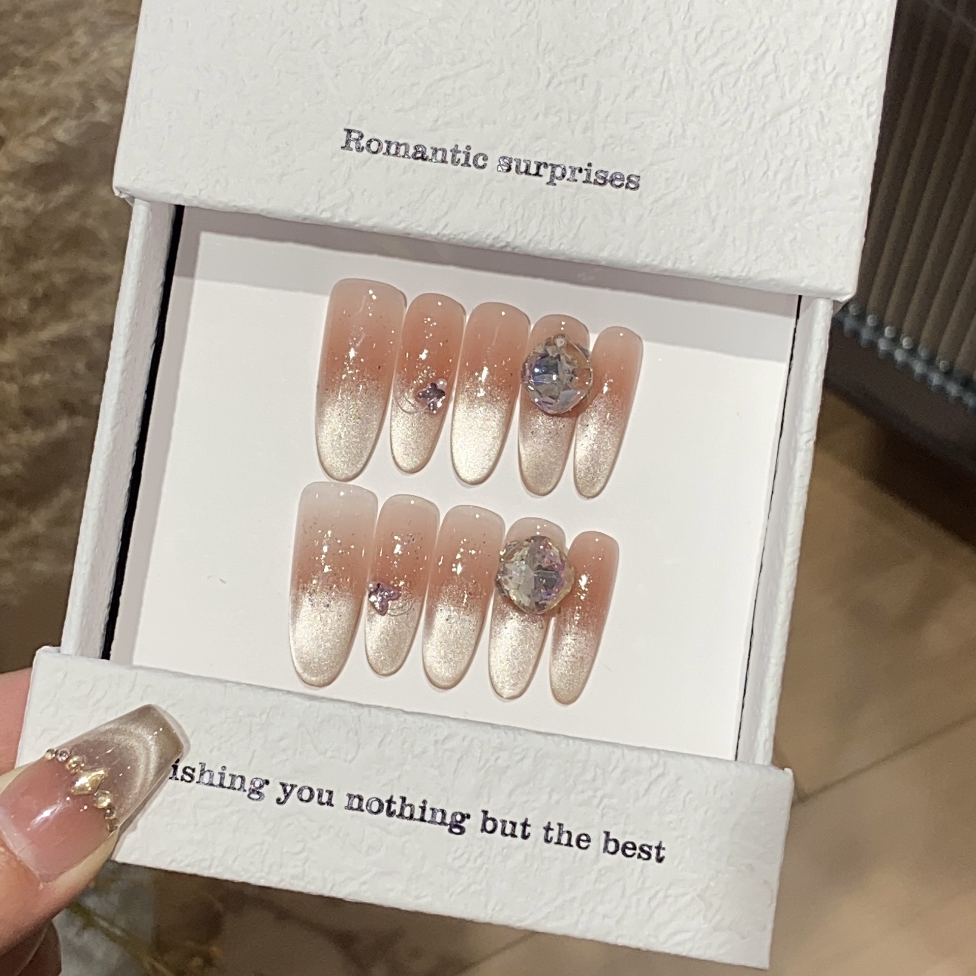 一只顾美甲 日常百搭冰透渐变猫眼堆堆方钻可可香颂可拆卸穿戴甲