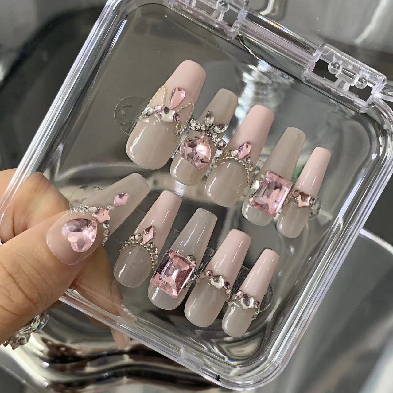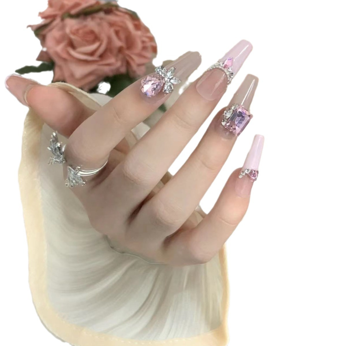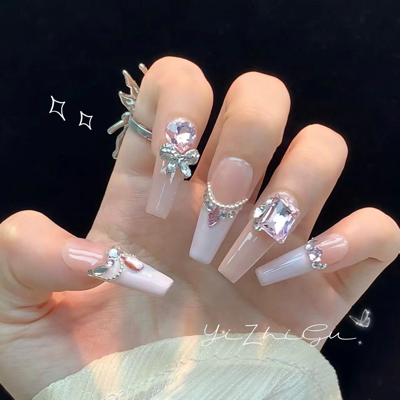 一只顾美甲厂【原创实拍】爱心泡泡法式合金钢珠链条天使嫁衣指甲