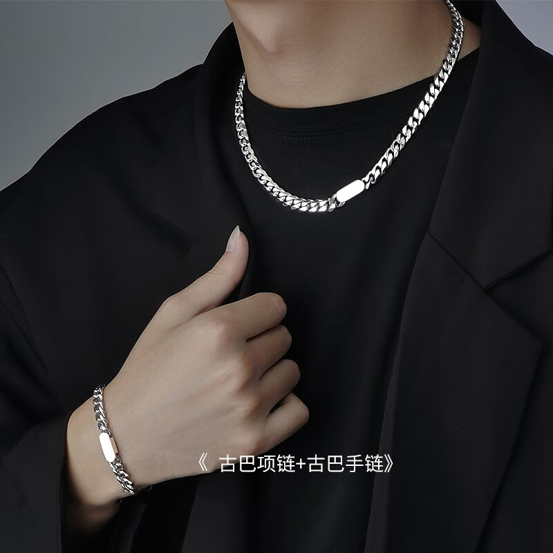 项链男潮小众设计钛钢简约男款轻奢嘻哈男士潮牌古巴吊坠毛衣链女