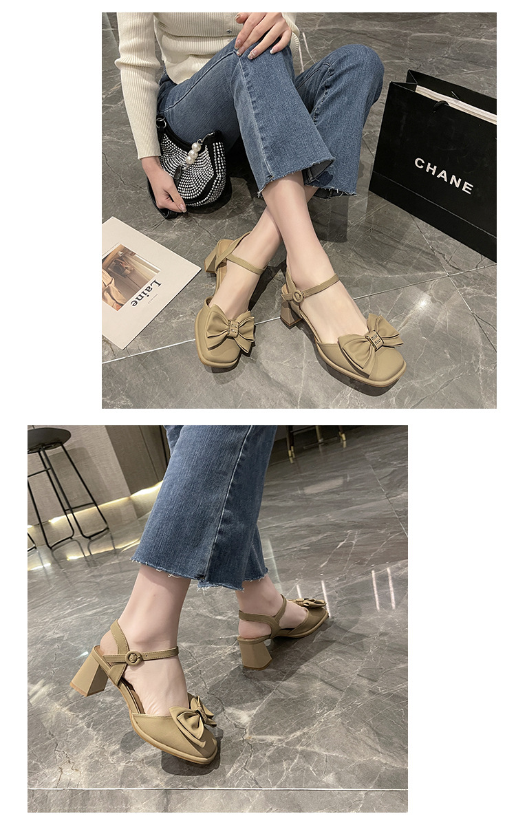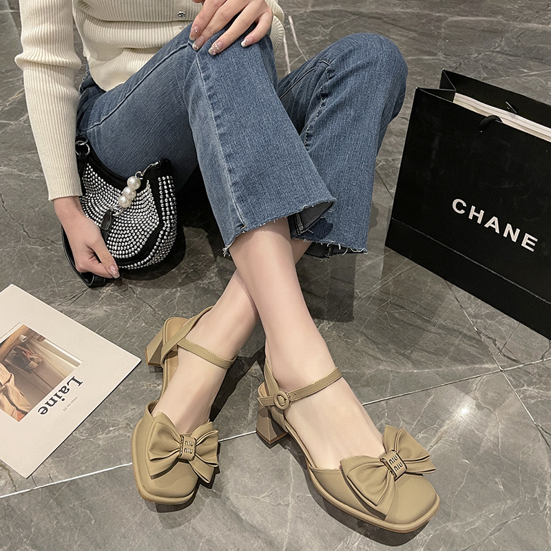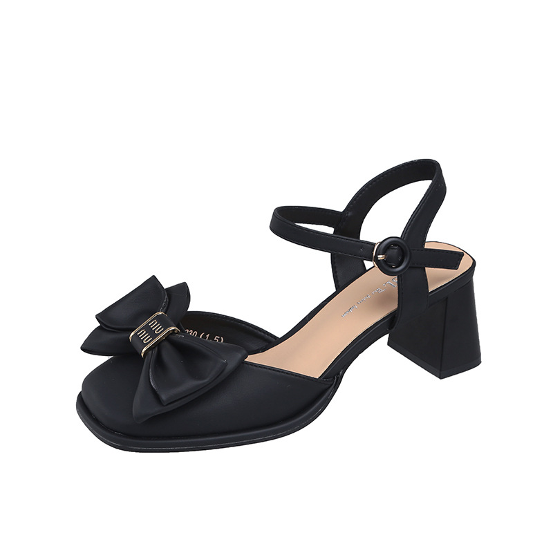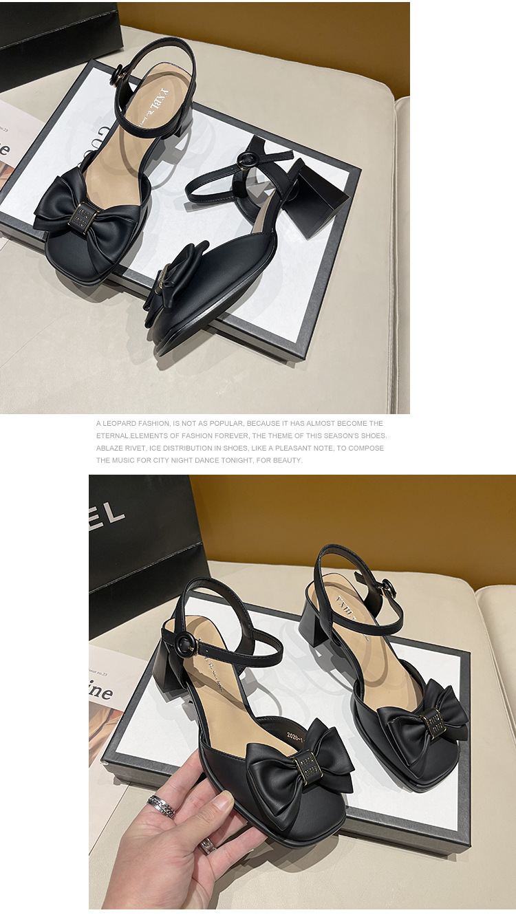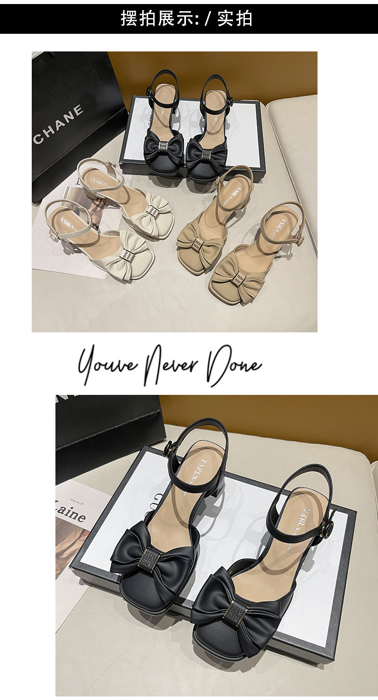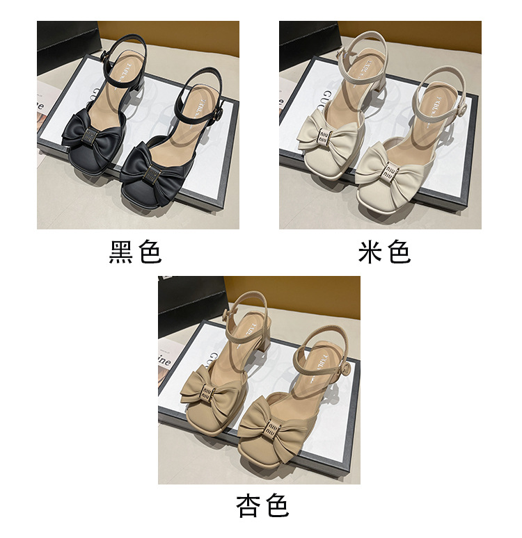 洋气时装凉鞋女夏季新款仙女风蝴蝶结网红粗跟一字带高跟鞋女