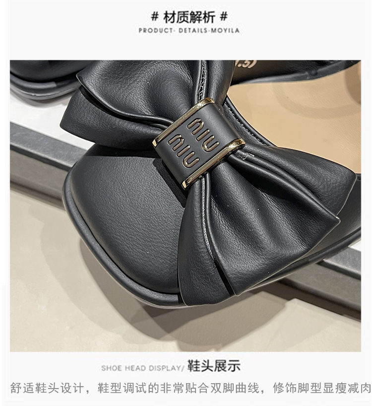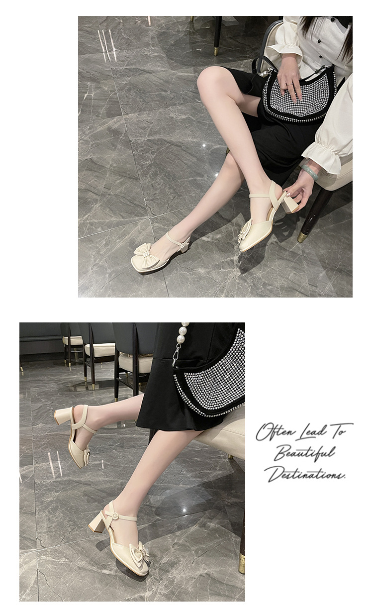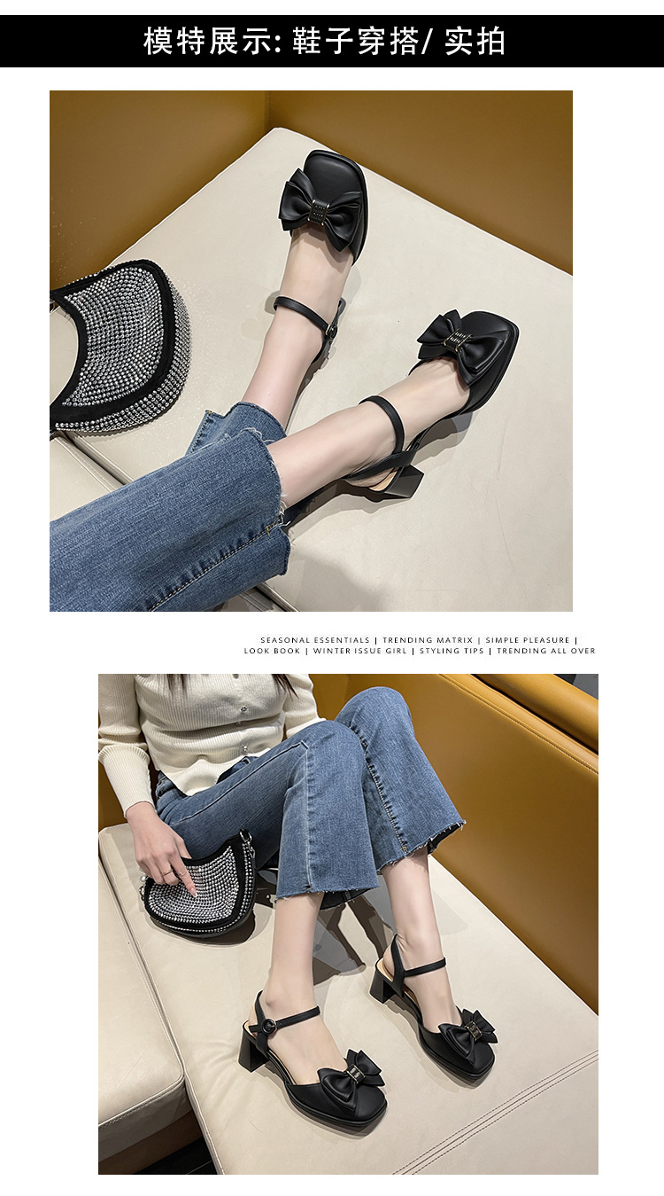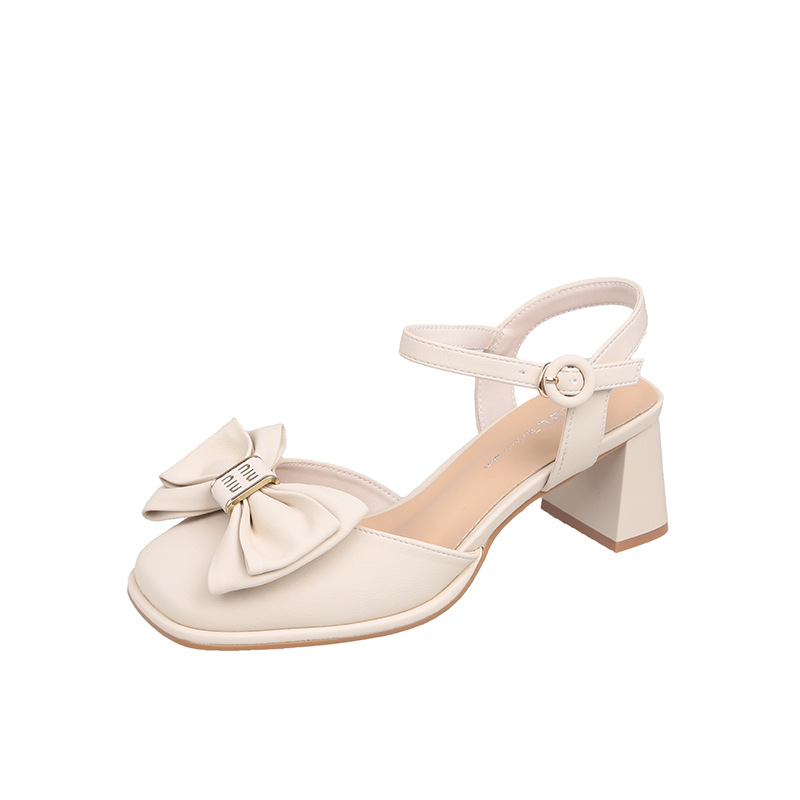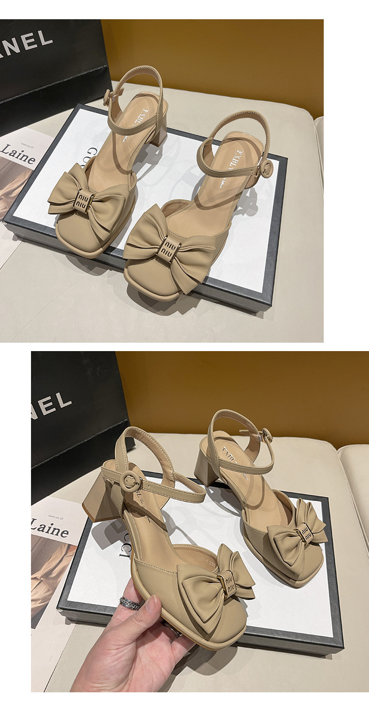 洋气时装凉鞋女夏季新款仙女风蝴蝶结网红粗跟一字带高跟鞋女