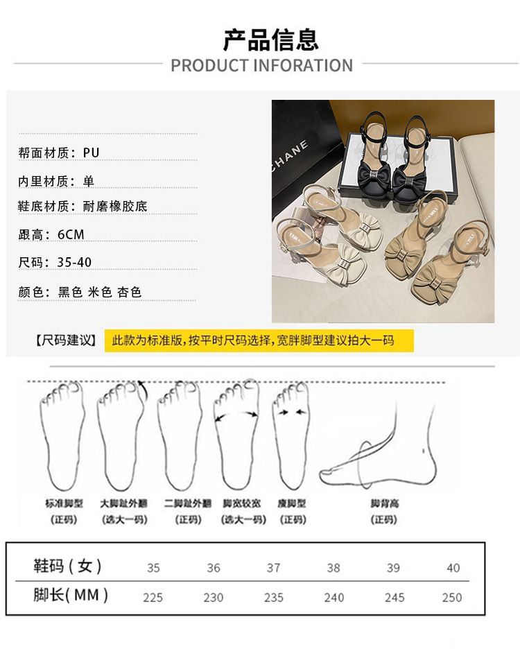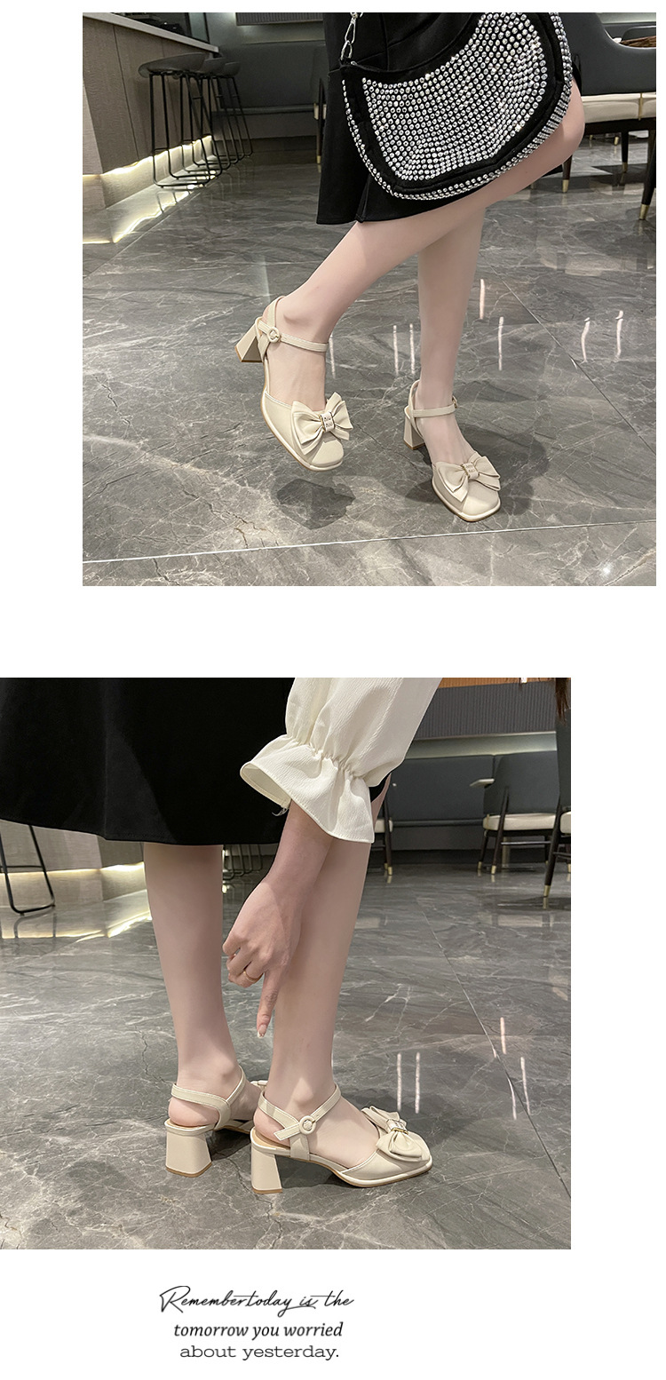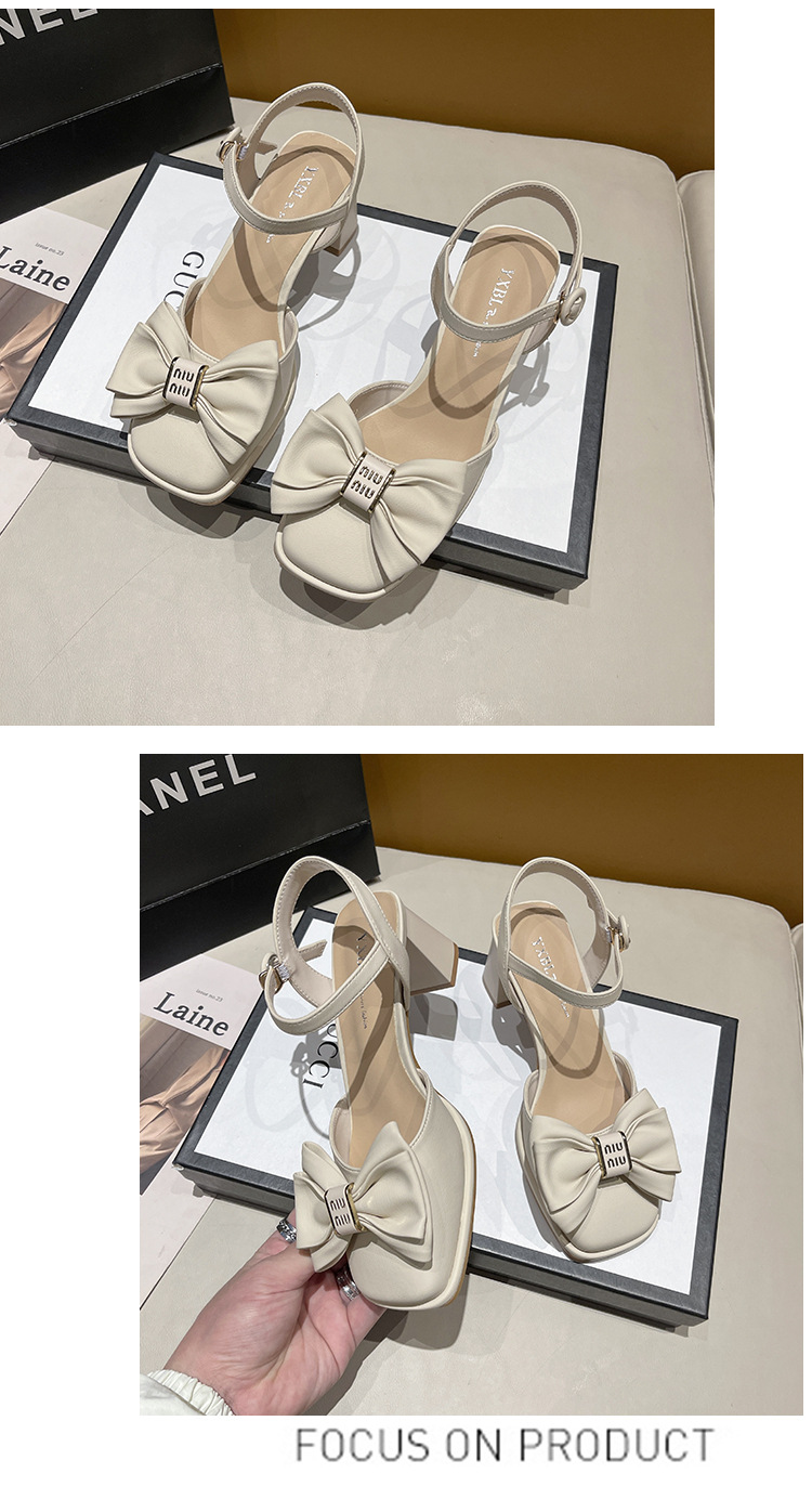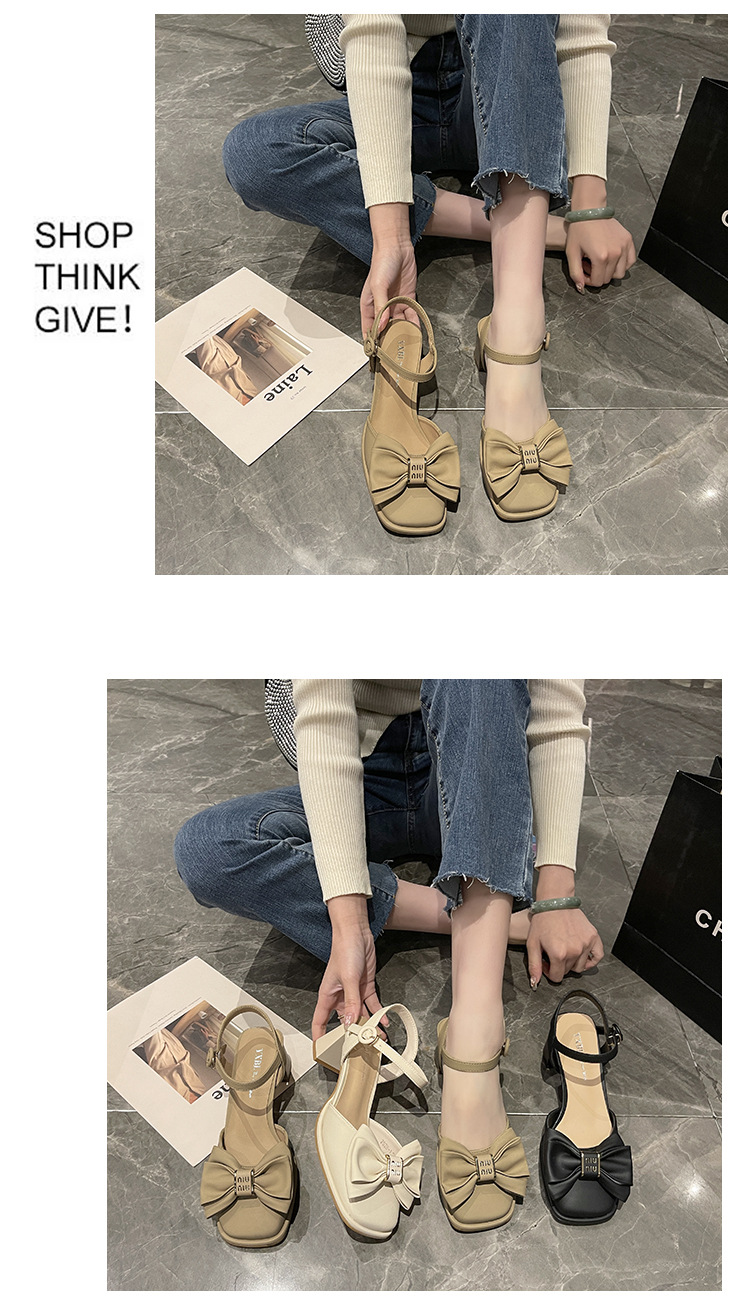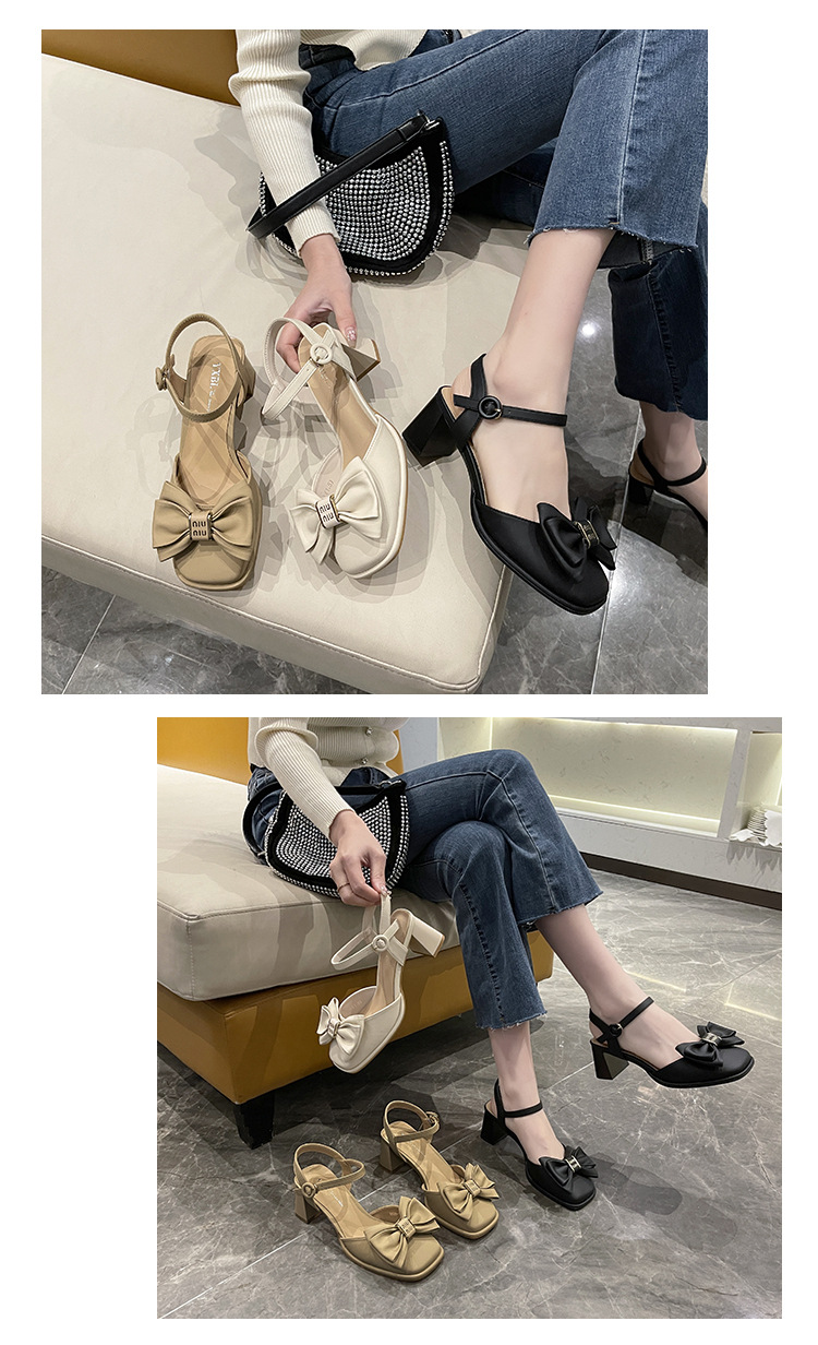 洋气时装凉鞋女夏季新款仙女风蝴蝶结网红粗跟一字带高跟鞋女