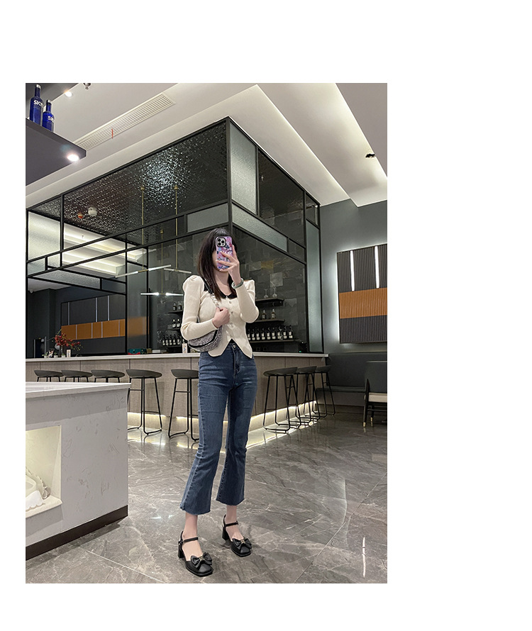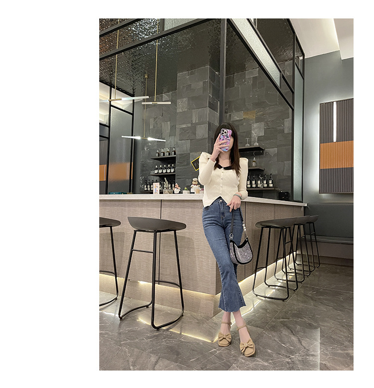 黑色弹力窄版直筒牛仔裤女春秋新款高腰显瘦百搭烟管堆堆裤子