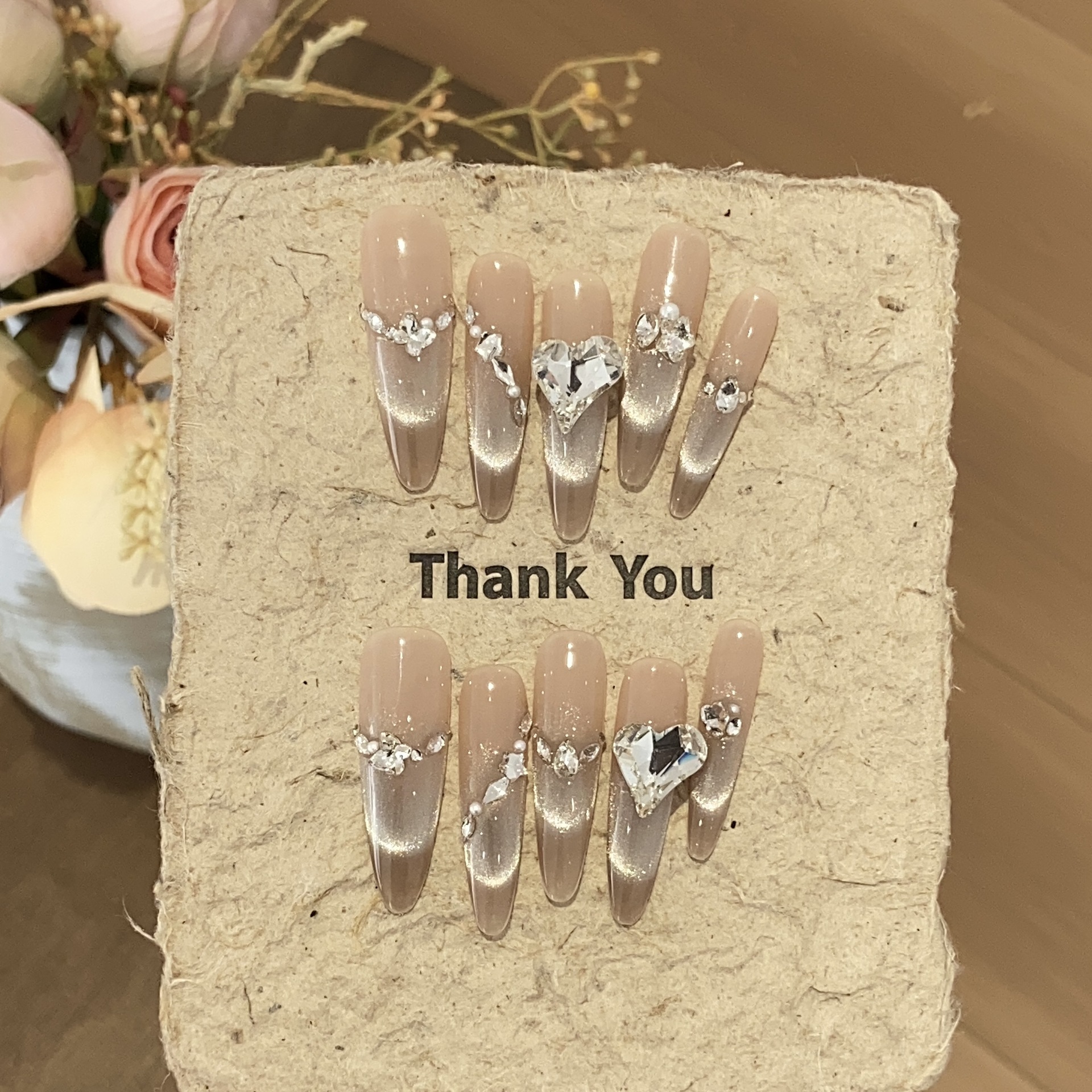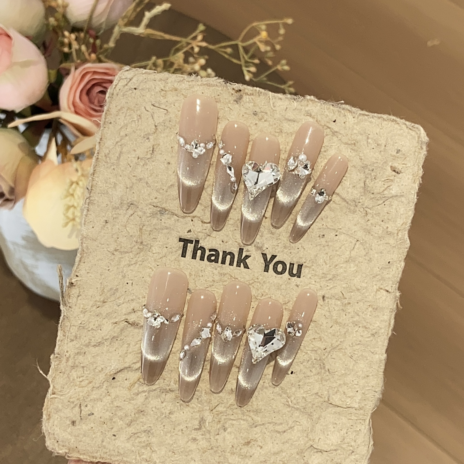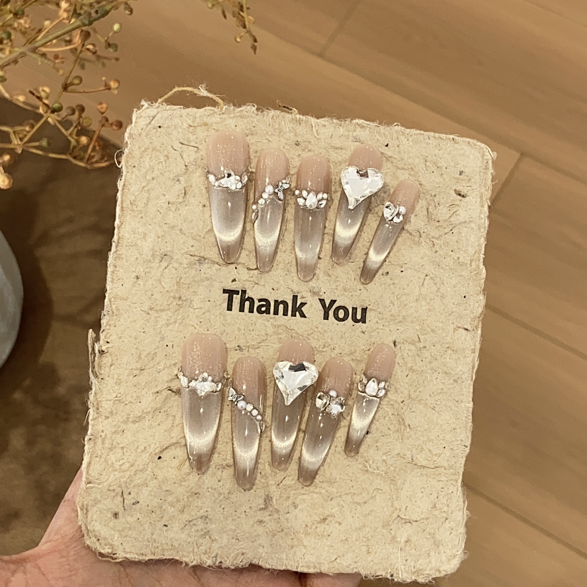 穿戴甲纯手工美甲成品假指甲贴片ins可爱卡通手绘奶灰系哈巴小狗