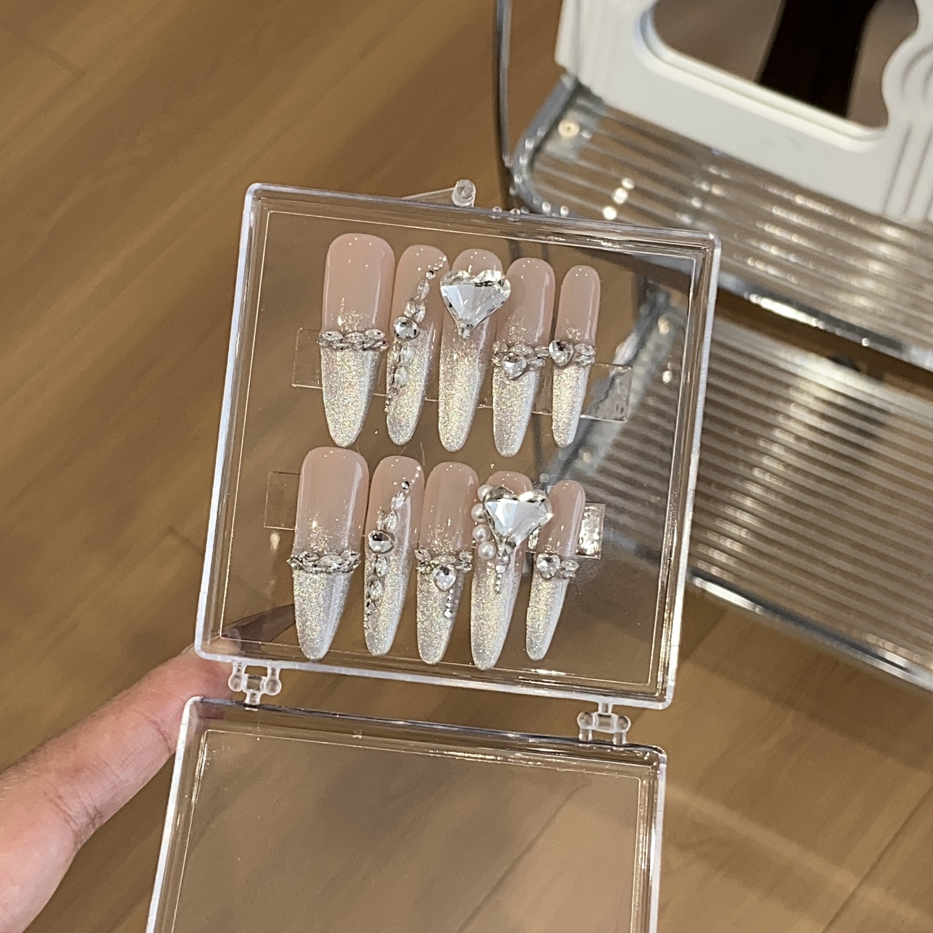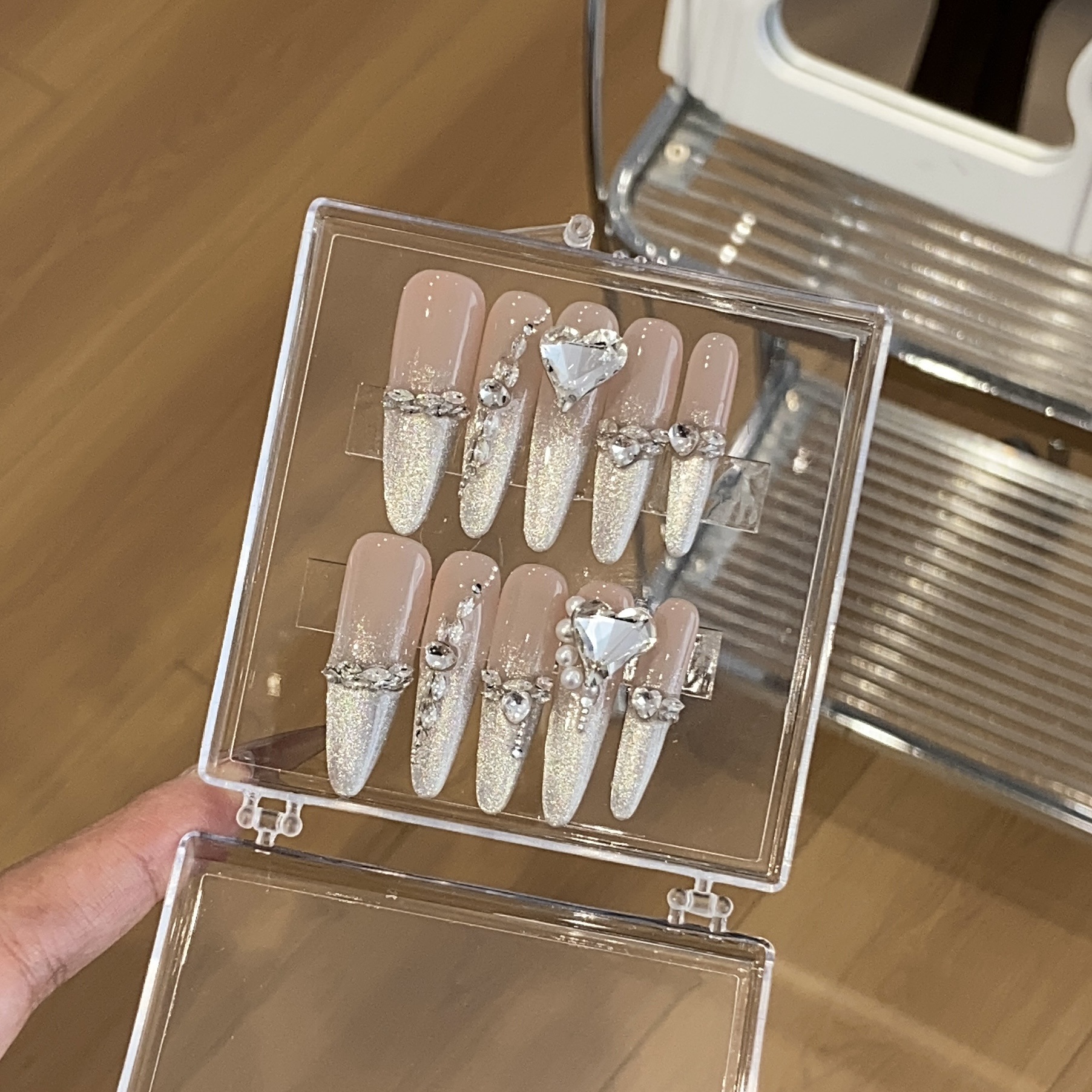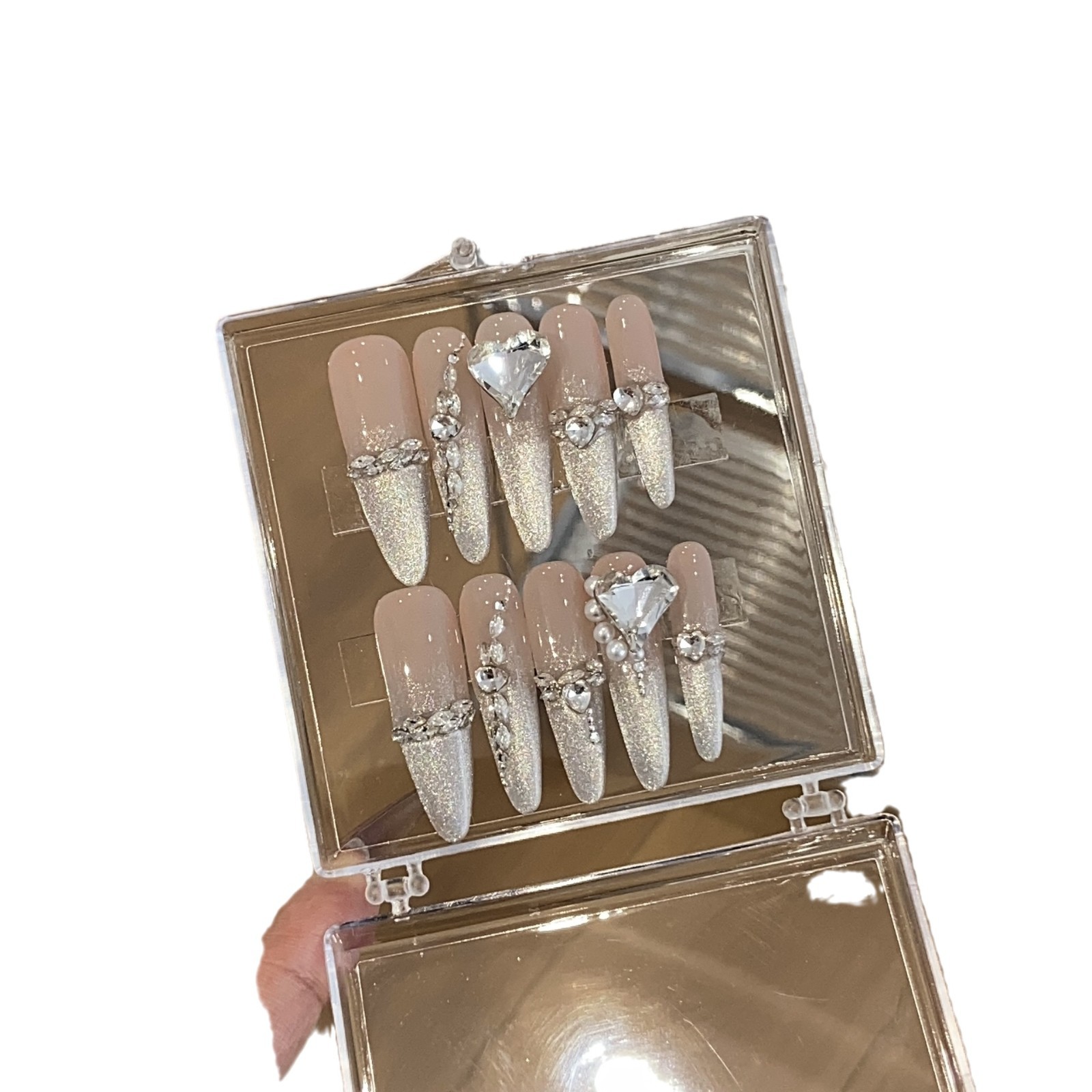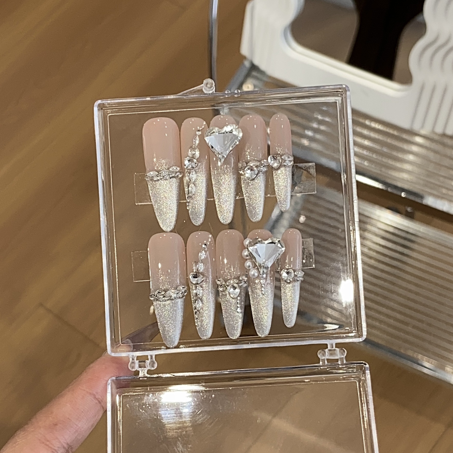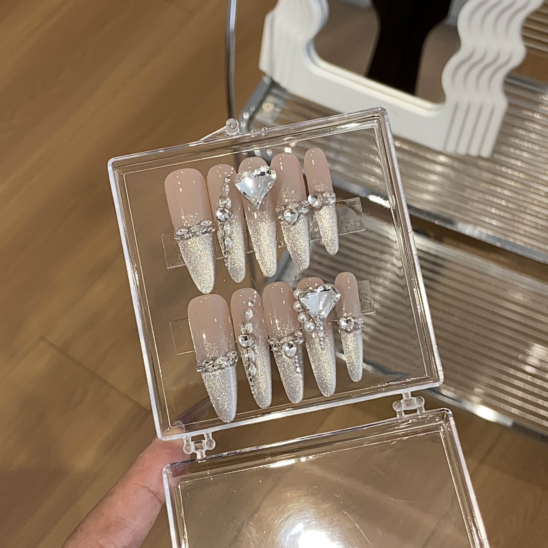 一只顾美甲 细闪渐变斜边碎钻珍珠堆堆钻冰川猫眼可拆卸穿戴甲片