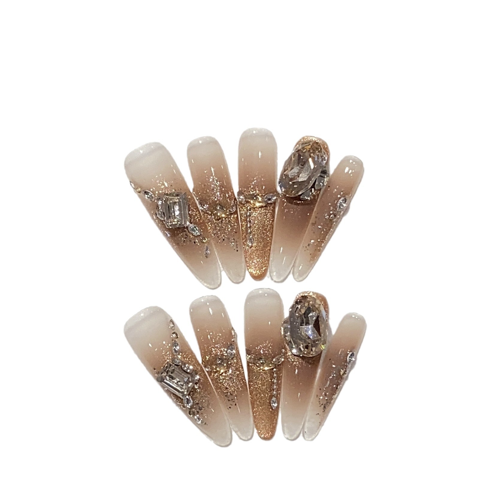 一只顾美甲 腮红金色爆闪合金链条小碎钻堆堆椭圆钻洛神赋穿戴甲