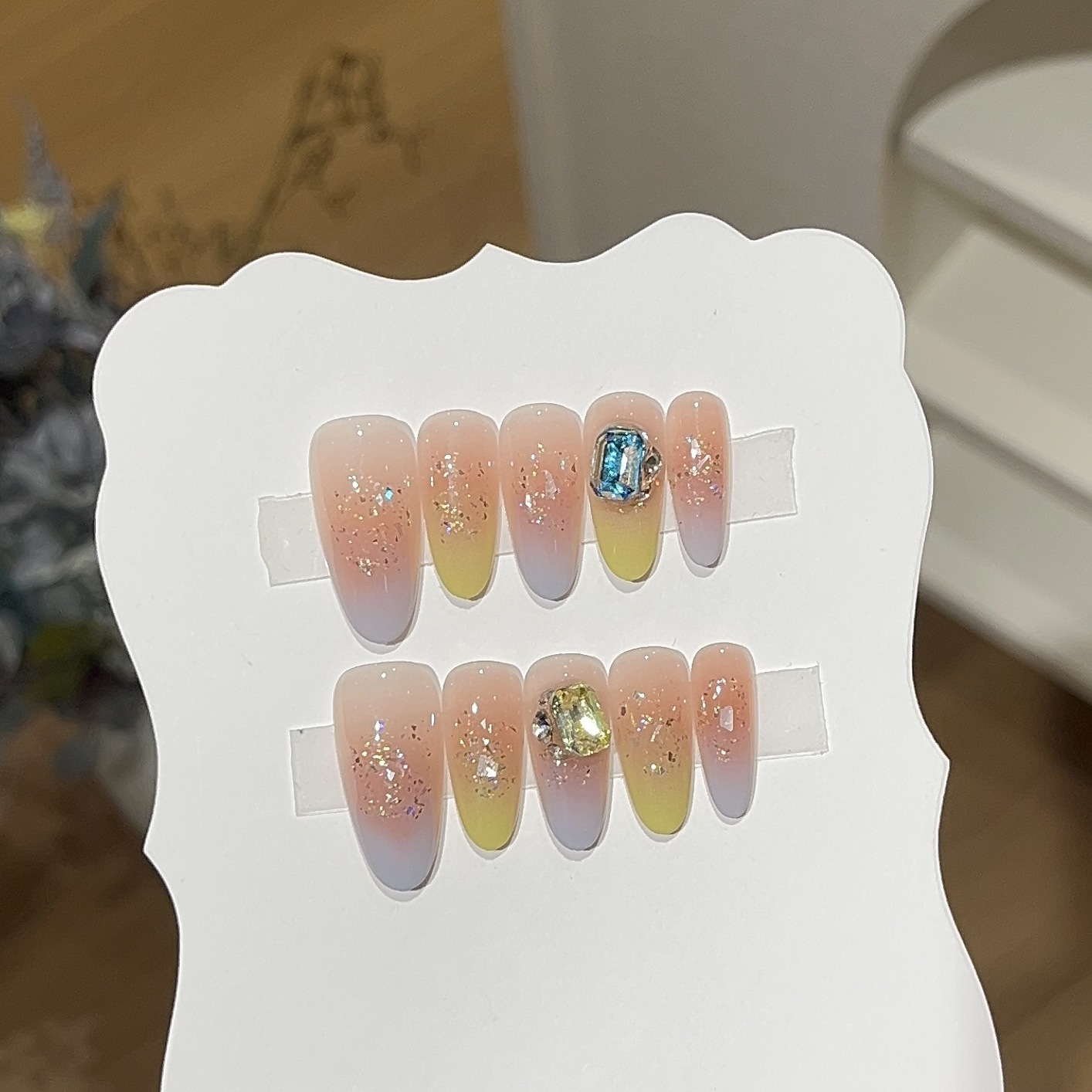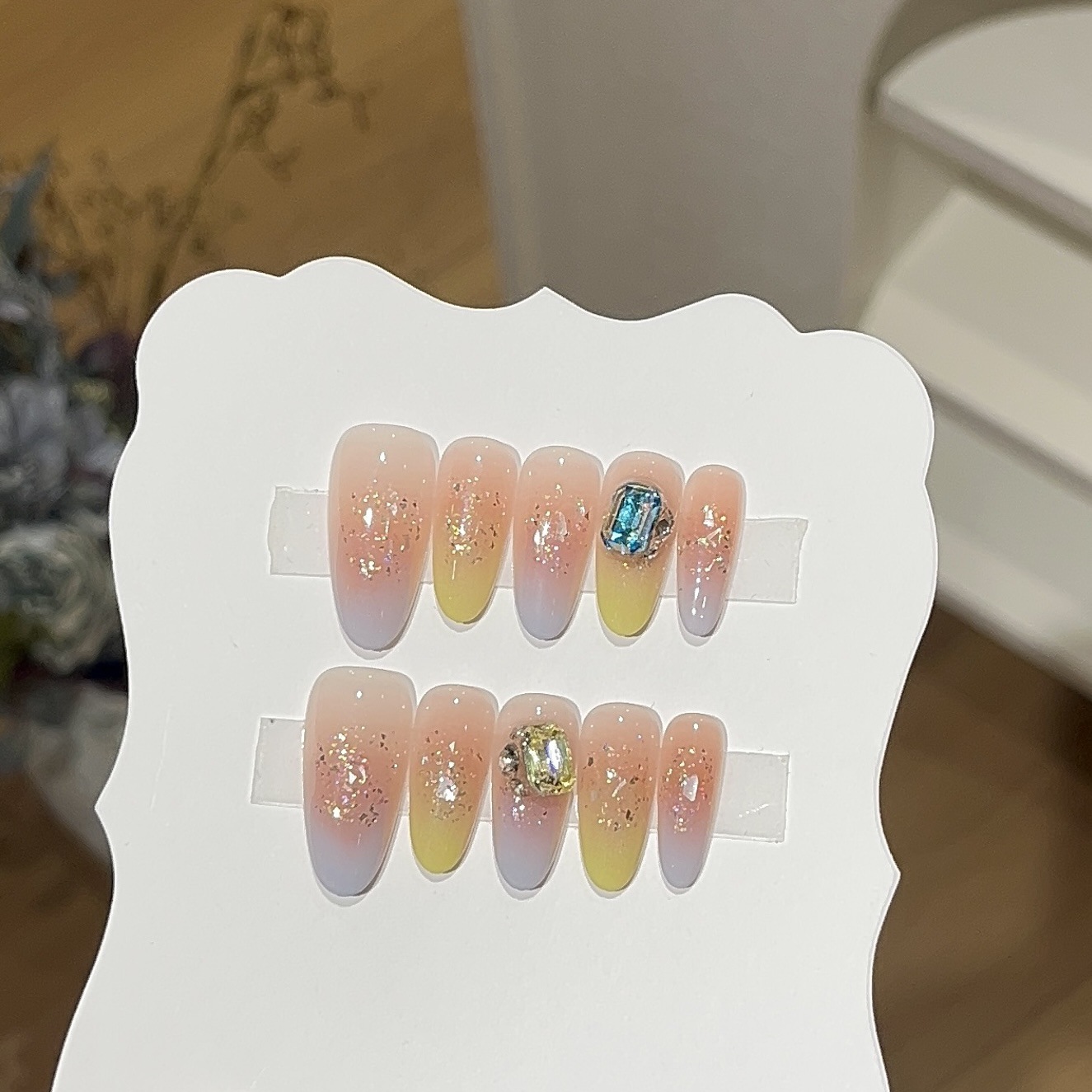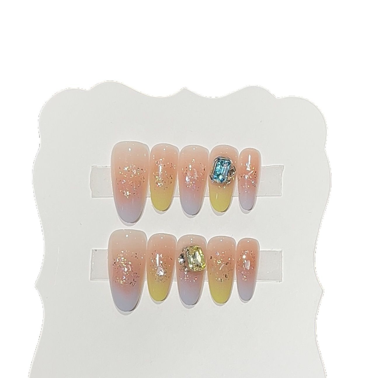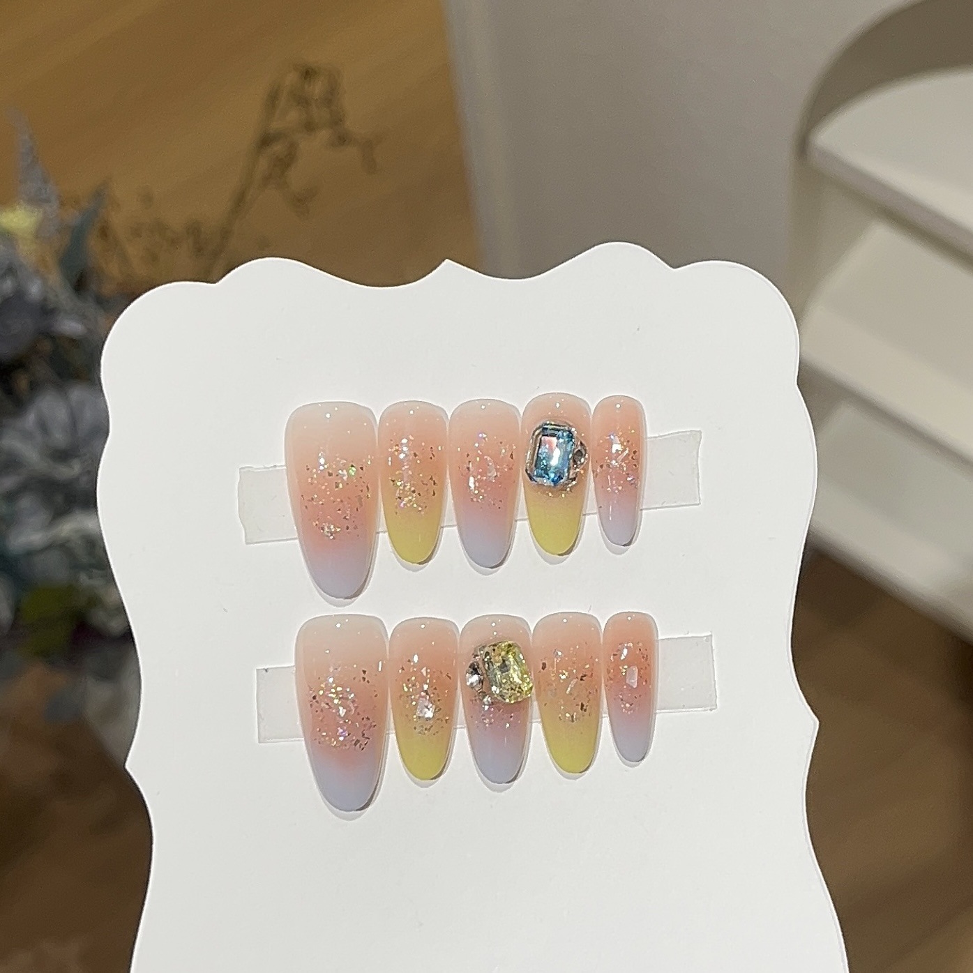 一只顾【奶油糖果】 春日靓色可爱短甲腮红箔金银紫黄色渐变美甲